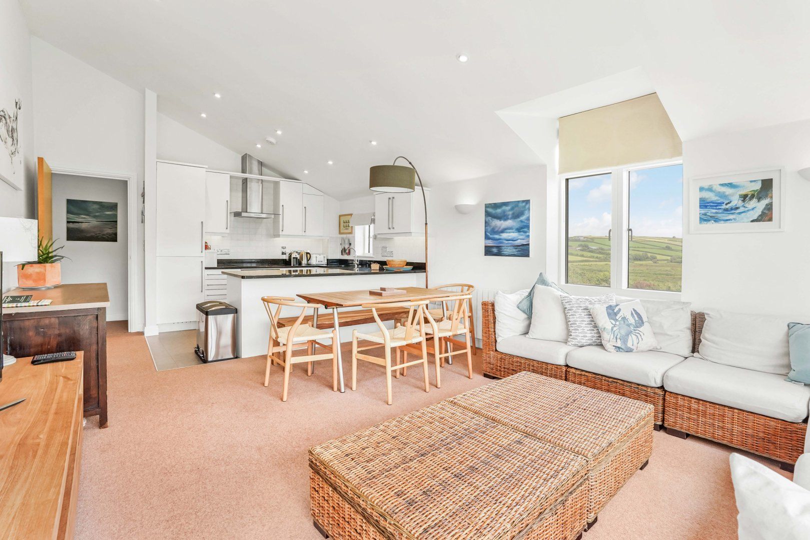 Holiday home The living areas in the property consist of an open-plan living space with a kitchen providing double electric ovens and hob, microwave, fridge/freezer, dishwasher, a dining area with seating for up to eight people and a sitting area with a TV, as well as a balcony. The bedrooms consist of a super-king-size with a TV, balcony and en-suite shower room, another super-king-size that is zip/linked with an en-suite shower room and a bunk room, along with a bathroom. Outside, there is parking available. Within 2.3 miles, you will find a shop, within 2.1 miles, a pub, and within 0.2 miles, a beach. Please note that this is a pet-free and non-smoking property. WiFi, fuel, power, bed linen and towels are all included in the price. For a memorable break in this lovely part of Devon, choose 6 Ocean's Edge.