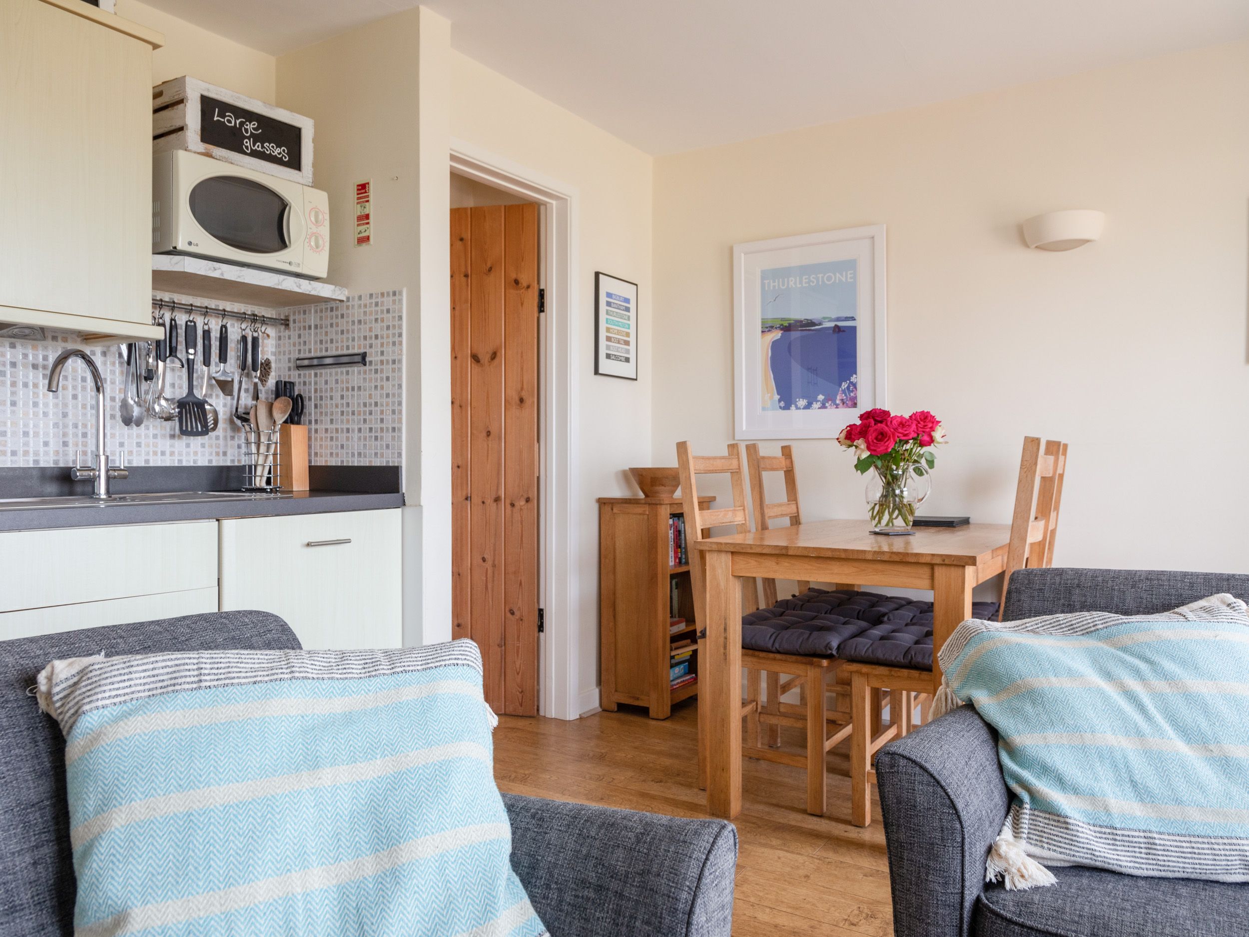 Holiday home Sea Campion is a terraced apartment located in Thurlestone, Devon. All rooms are on the ground floor, boasting two bedrooms; one king-size and one twin, with a separate family shower room. Downstairs has an open-plan living room with a fitted kitchen and dining area. Outside has a front private patio area with furniture and access to shared lawned garden and on-site facilities. Sea Campion is the ultimate choice for a relaxing holiday break.