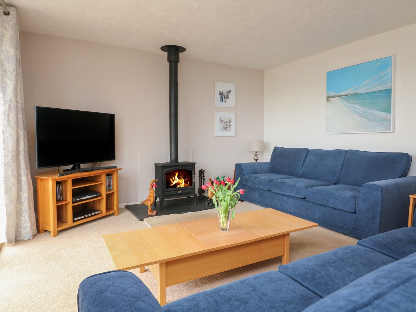 Amenities Electric heating. Electric double oven, gas hob, microwave, fridge, freezer, washing machine, tumble dryer, dishwasher, coffee machine. Smart TV, DVD player, WiFi. Fuel, power, and starter pack for woodburning stove inc. in rent. Bed linen and towels inc. in rent. Private driveway for 2 cars. Front garden with lawn, patio and furniture, and rear courtyard with furniture. One well-behaved dog welcome. Sorry, no smoking. Shop and pub 0.6 miles, beach 0.9 miles. Note: Neither of the gardens are fully enclosed; please be aware. Note: There are steps to the exterior; please take care