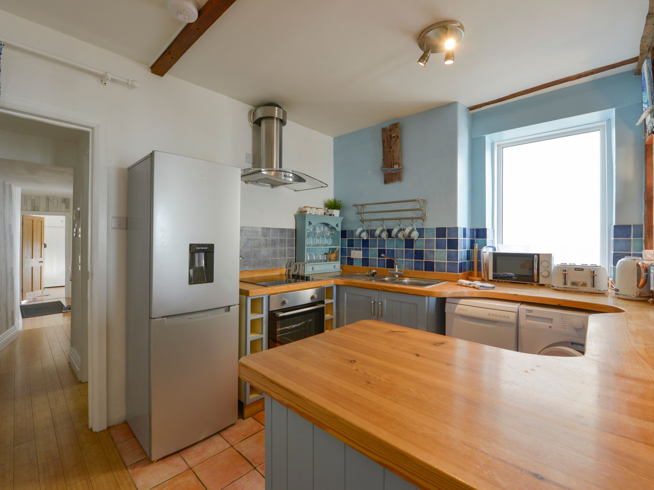 Central heating. Oven and hob, microwave, fridge/freezer, washing machine, dishwasher. TV and WiFi. Fuel and power inc. in rent. Bed linen and towels inc. in rent. Parking permit provided for 1 car. Enclosed courtyard garden. Two well-behaved dogs welcome (additional charge). Sorry no smoking. Shop 2.2 miles, pub and beach 0.1 miles. Note: This is an adult-only property