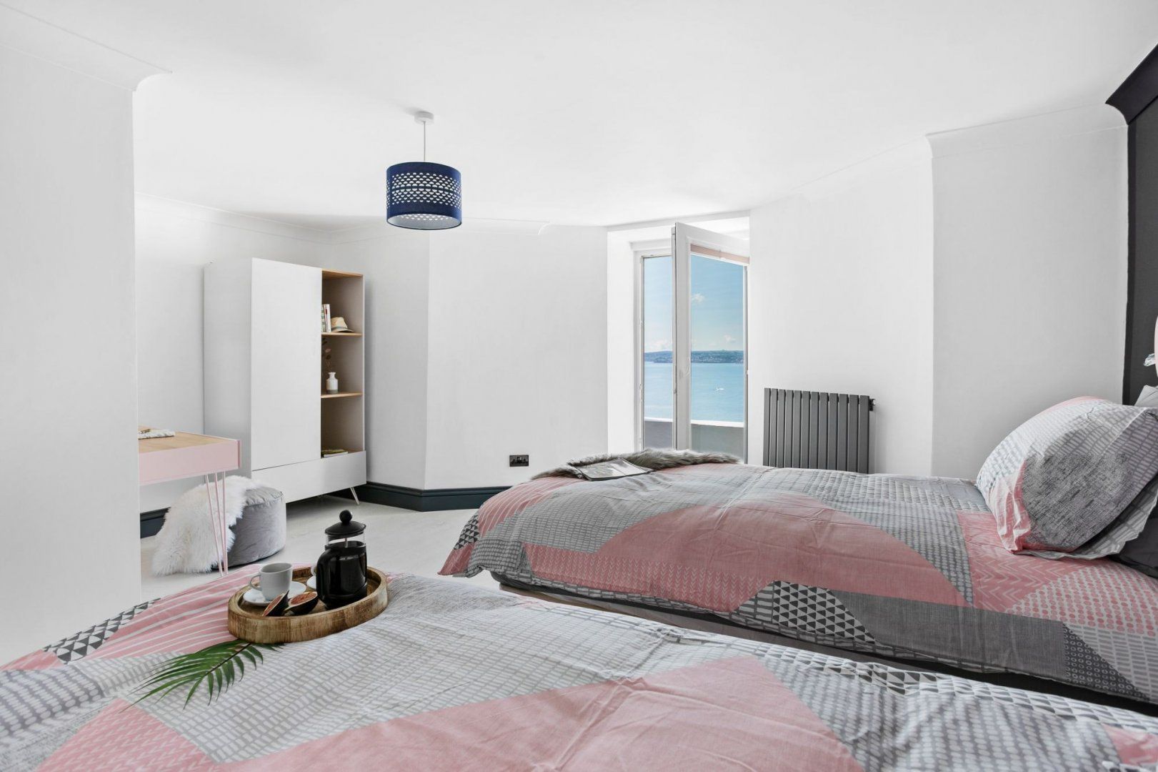 This chic apartment not only boasts tranquil views of the English Channel, but it’s also within 250 metres of Torquay Beach. Inside, the place is fresh and funky – we loved the pastel pink furnishings and bold accent walls. After a restful sleep in the comfortable beds, rustle up a full English in the sleek kitchen or pick up some freshly baked pastries from the coffee shop opposite your building. Soak up the warm sunshine on the terrace before slipping on your sandals and strolling along the South West Coast Path.