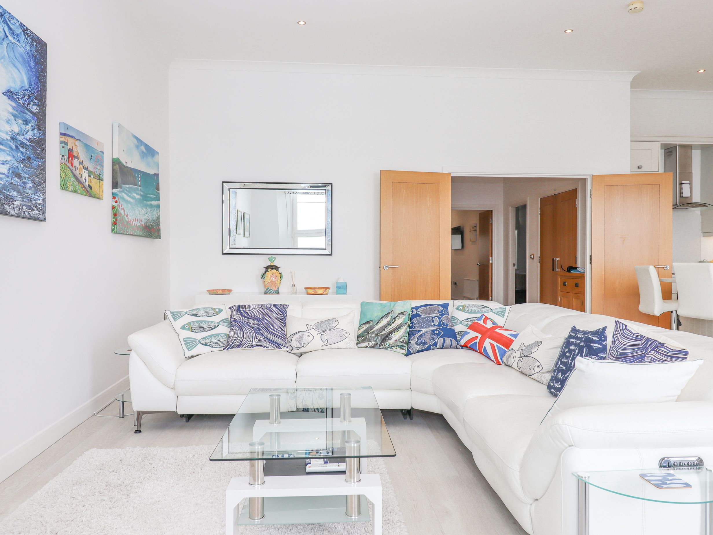 Accomodation Details First-floor apartment. Two bedrooms: 1 x king-size with Smart TV and en-suite bath, shower over, basin, heated towel rail and WC, 1 x double with Smart TV. Shower room with walk-in shower, basin, heated towel rail and WC. Open-plan living space with kitchen, dining and sitting area with balcony