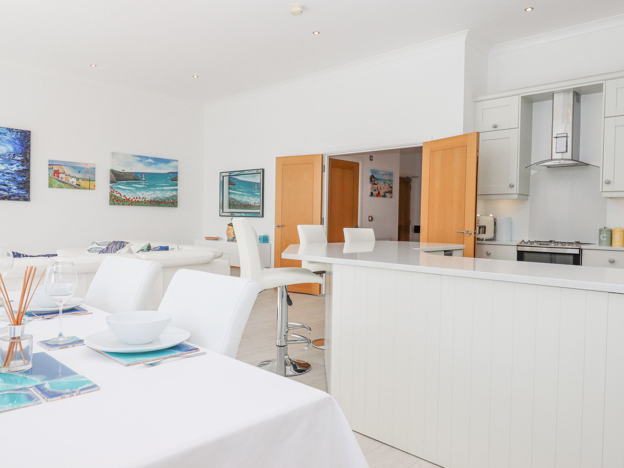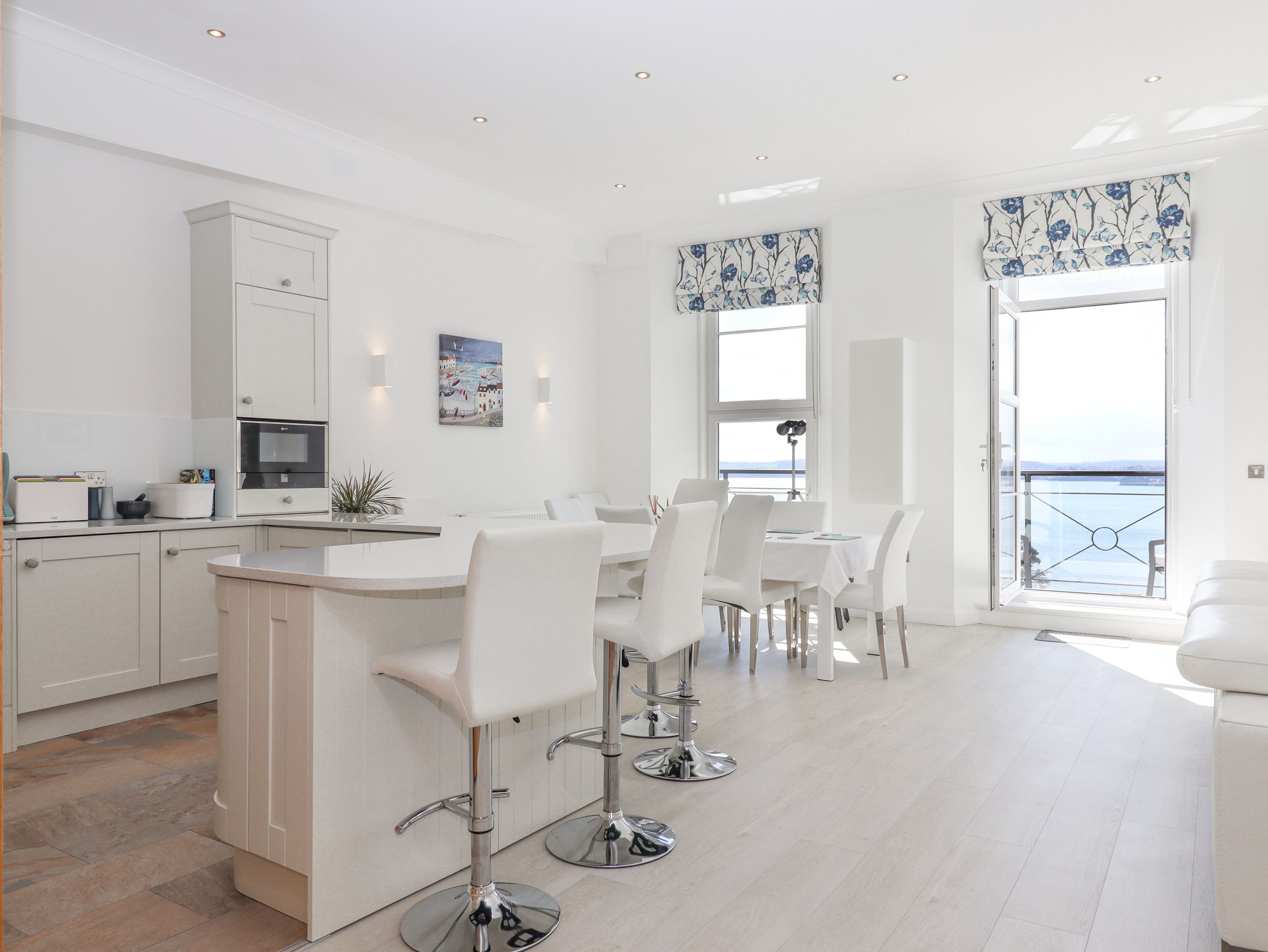 Holiday home The living areas in the property consist of an open-plan living area with a kitchen with electric oven, induction hob, microwave, fridge with ice box, fridge, washing machine, dishwasher, wine fridge, breakfast bar seating, dining seating for eight and a sitting area, with Smart TV with FreeSat. The bedrooms consist of a king-size with en-suite bathroom, and a double, both with Smart TV, along with a shower room. Outside, there is a balcony with furniture and off-road allocated parking for one car. Within 0.7 miles, you will find a shop and a pub, and please note that this is a non-smoking property. WiFi, fuel, power, bed linen and towels are all included in the price. For a luxury escape to Devon, look no further than Apartment 14.