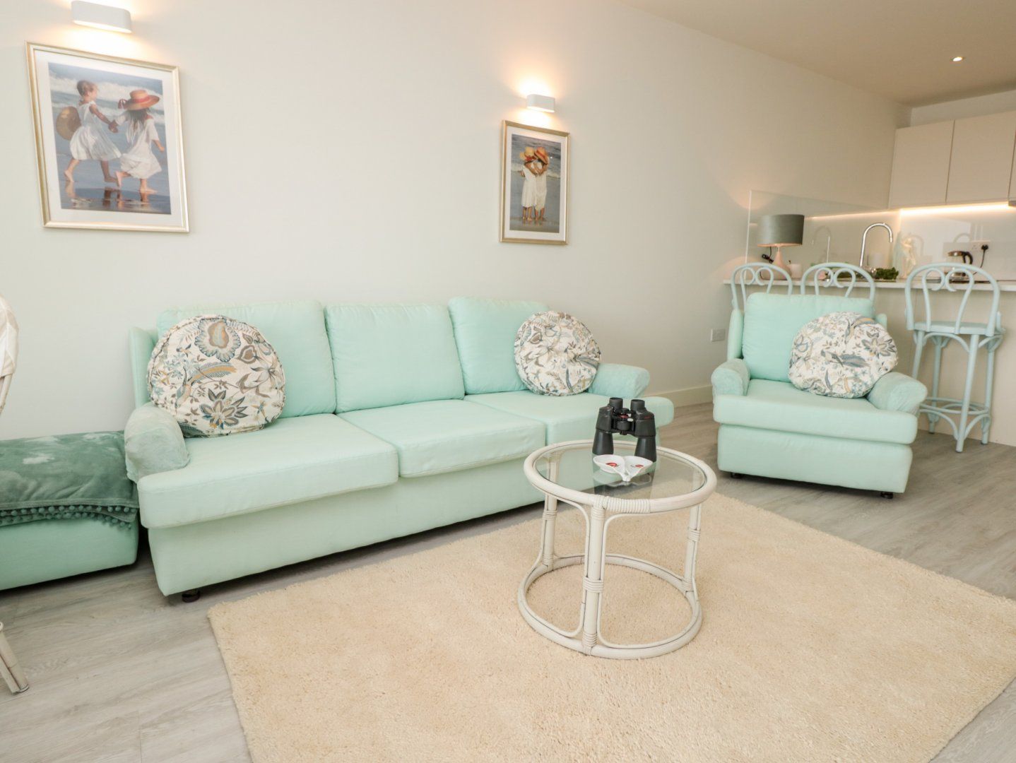 Gas central heating. Electric oven and hob, microwave, fridge/freezer, washing machine, dishwasher, coffee machine. 3 x Smart TVs, WiFi, selection of books. Fuel and power inc. in rent. Bed linen and towels inc. in rent. Allocated parking for 1 car. Private balcony with furniture. Sorry, no smoking. Shop 0.5 miles, pub 0.1 miles, beach 0.1 miles.