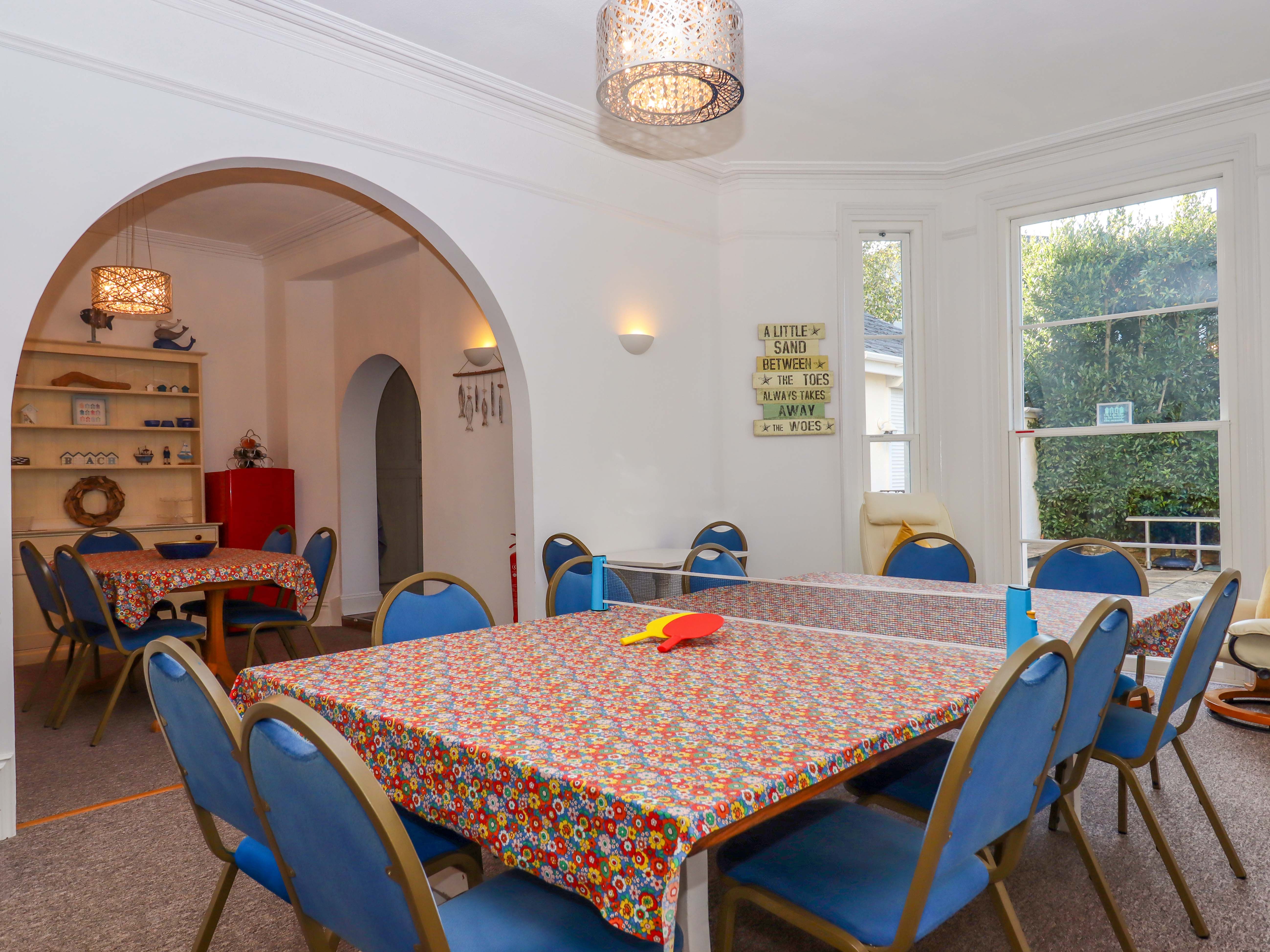Holiday home Babbacombe Hall is a detached Victorian Villa resting in Babbacombe. The house can sleep 16 people in eight double or twin bedrooms each with its own ensuite. A comfortable sitting room, formal dining room and games room complete the accommodation. Outside you'll find a neat lawned garden and patio and ample parking. Perfect for fun family gatherings and get togethers, Babbacombe Hall is exceptional. Electric cars must not be charged at this property.