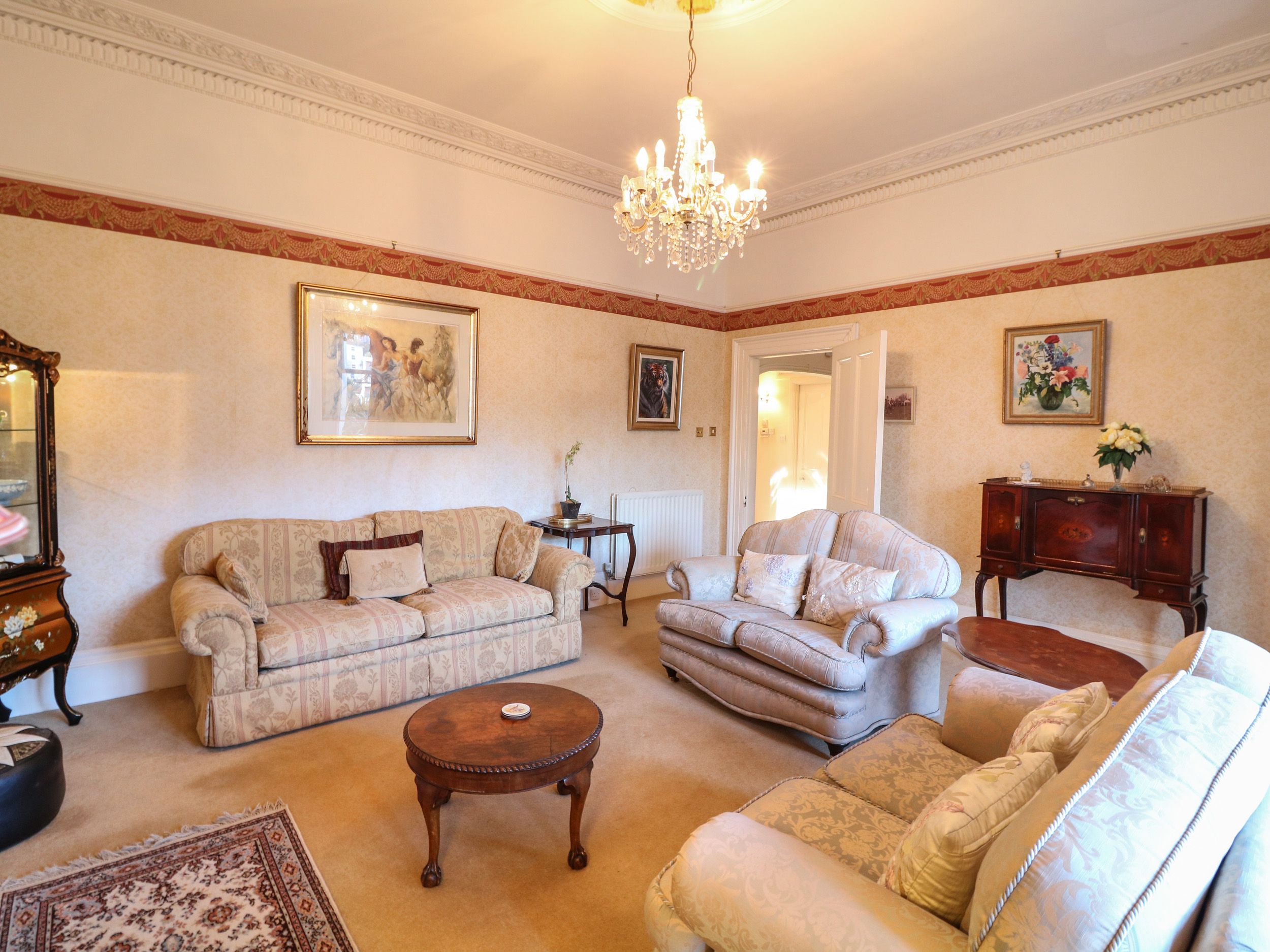 Accomodation Details Four bedrooms: 1 x super-king-size, 2 king -size, and 1 x twin with en-suite walk-in shower, basin and WC. Bathroom with bath, basin and WC. Ground-floor shower room/utility with walk-in shower. First-floor cloakroom with basin, heated towel rail and WC. Kitchen. Dining room. Sitting room. Entrance hall with dining area and open fire.