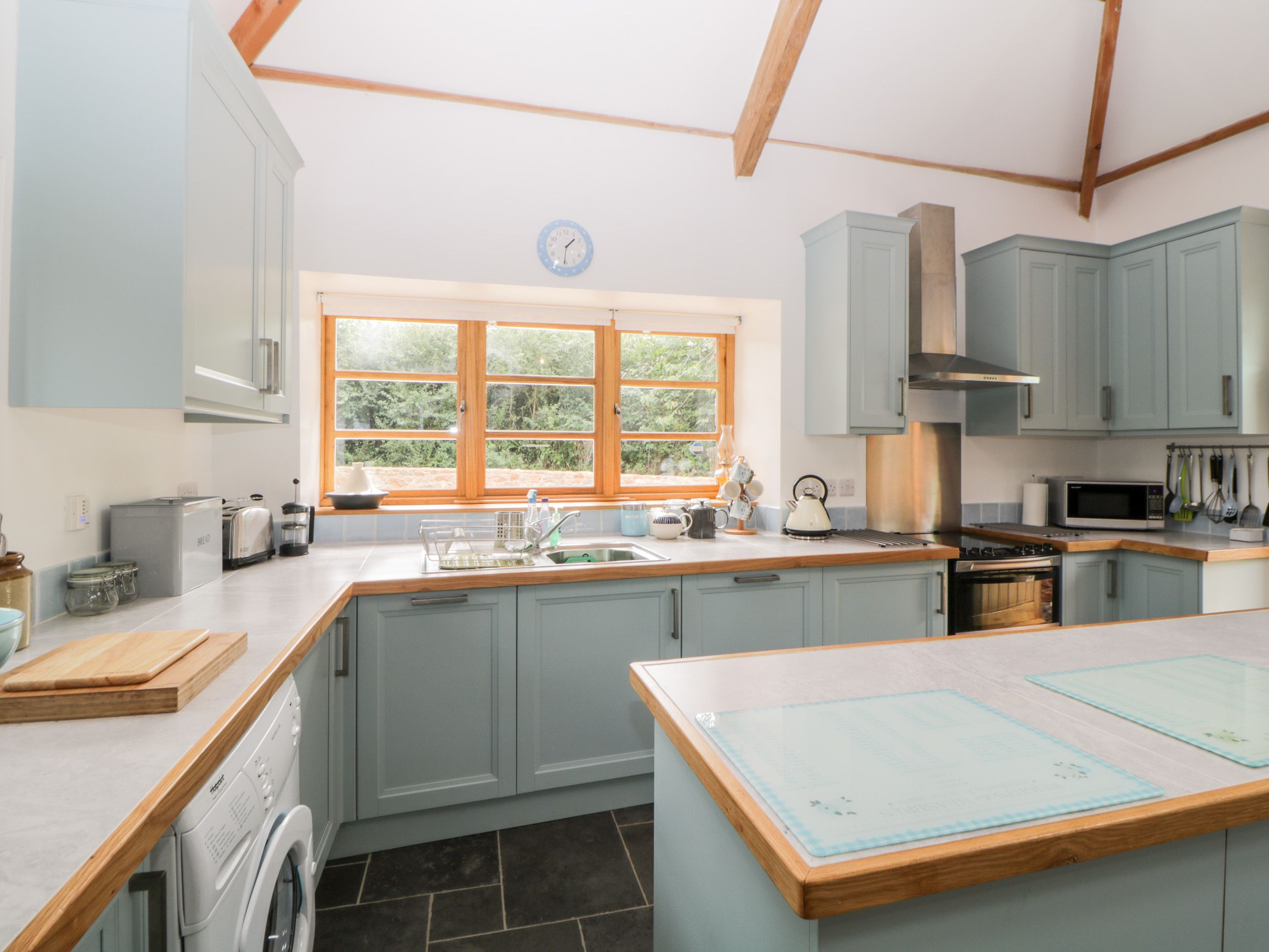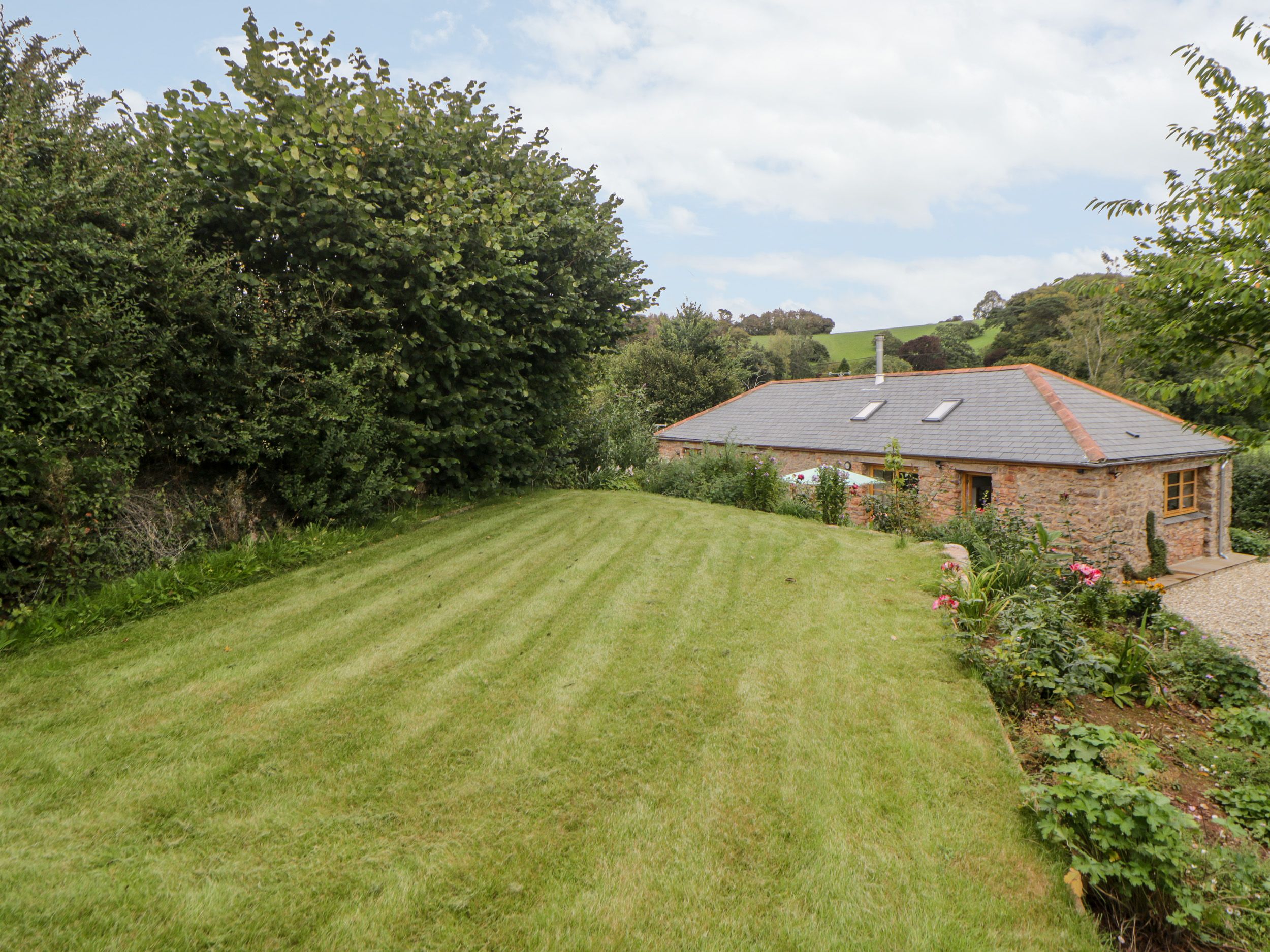 Holiday home The Old Haybarn is a lovely detached, stone barn conversion resting in a small hamlet, close to Ippleton, in Devon. Set all on the ground-floor, the property hosts two bedrooms: one king-size and one family room with a double and a single, together sleeping five guests. The property also has a family bathroom and cloakroom with a basin and WC. Completing the interior is an open-plan living room with a kitchen, dining area and sitting area with a woodburning stove. Outside there is an enclosed gravelled area with furniture and a raised lawned area, as well as off-road parking for 2-3 cars. The Old Haybarn is an excellent base for friends and families seeking a rural escape.