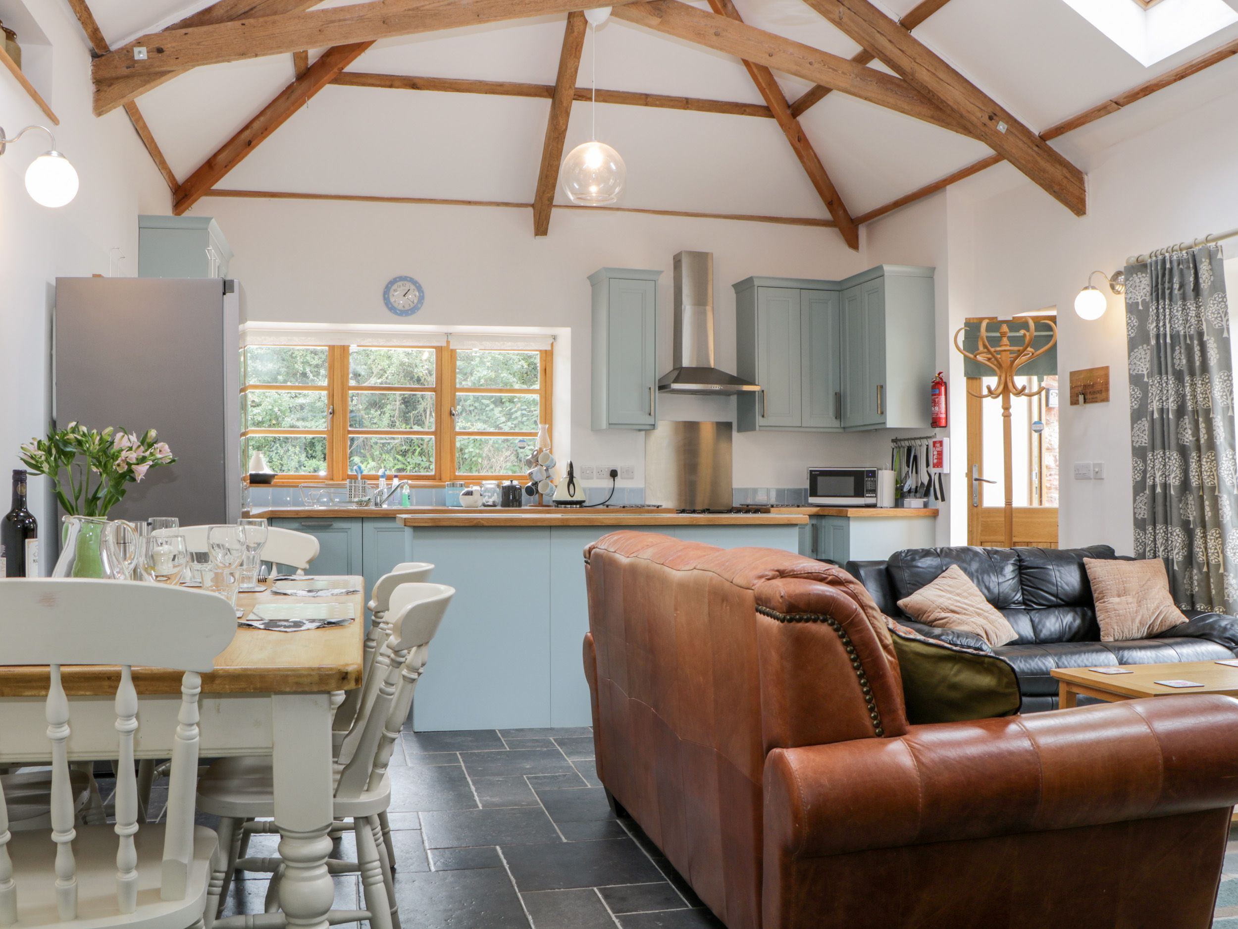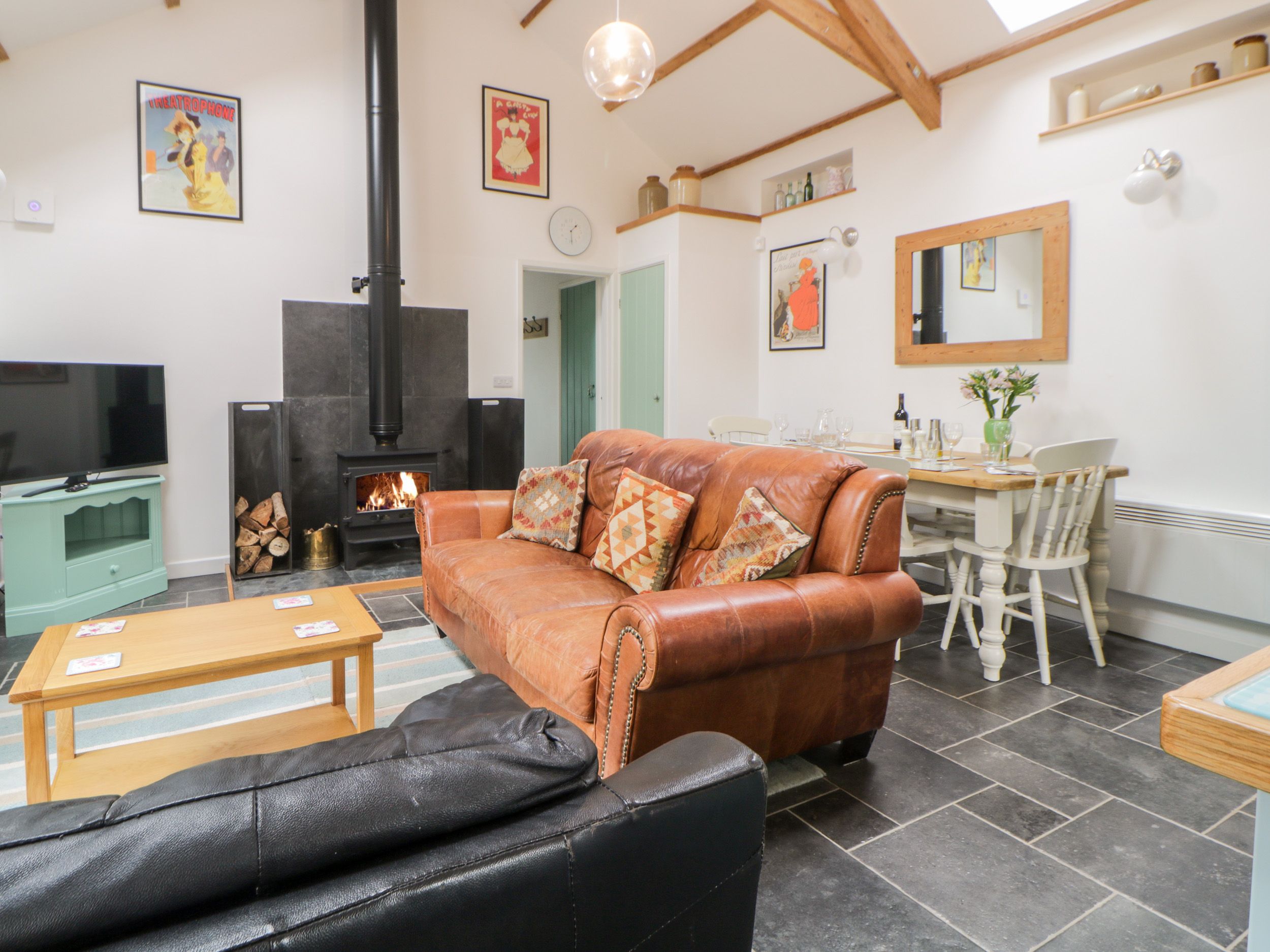 Accomodation Details All-ground-floor. Two bedrooms: 1 x king-size, 1 x family room double with single. Bathroom with bath, walk-in shower, basin and WC. Cloakroom with basin and WC. Open-plan living room with kitchen, dining area and sitting area with woodburning stove