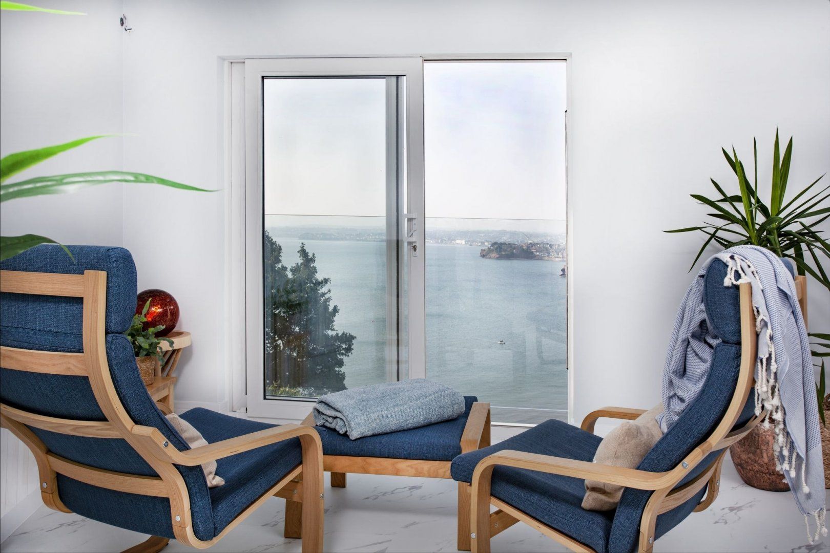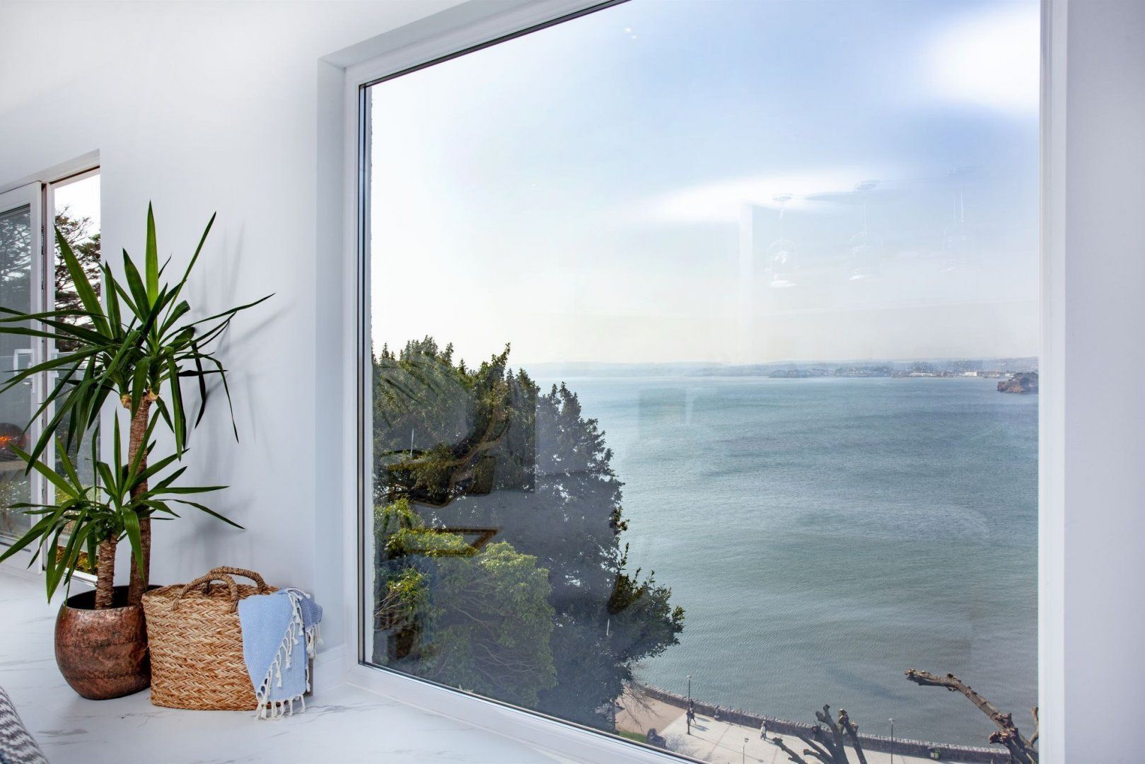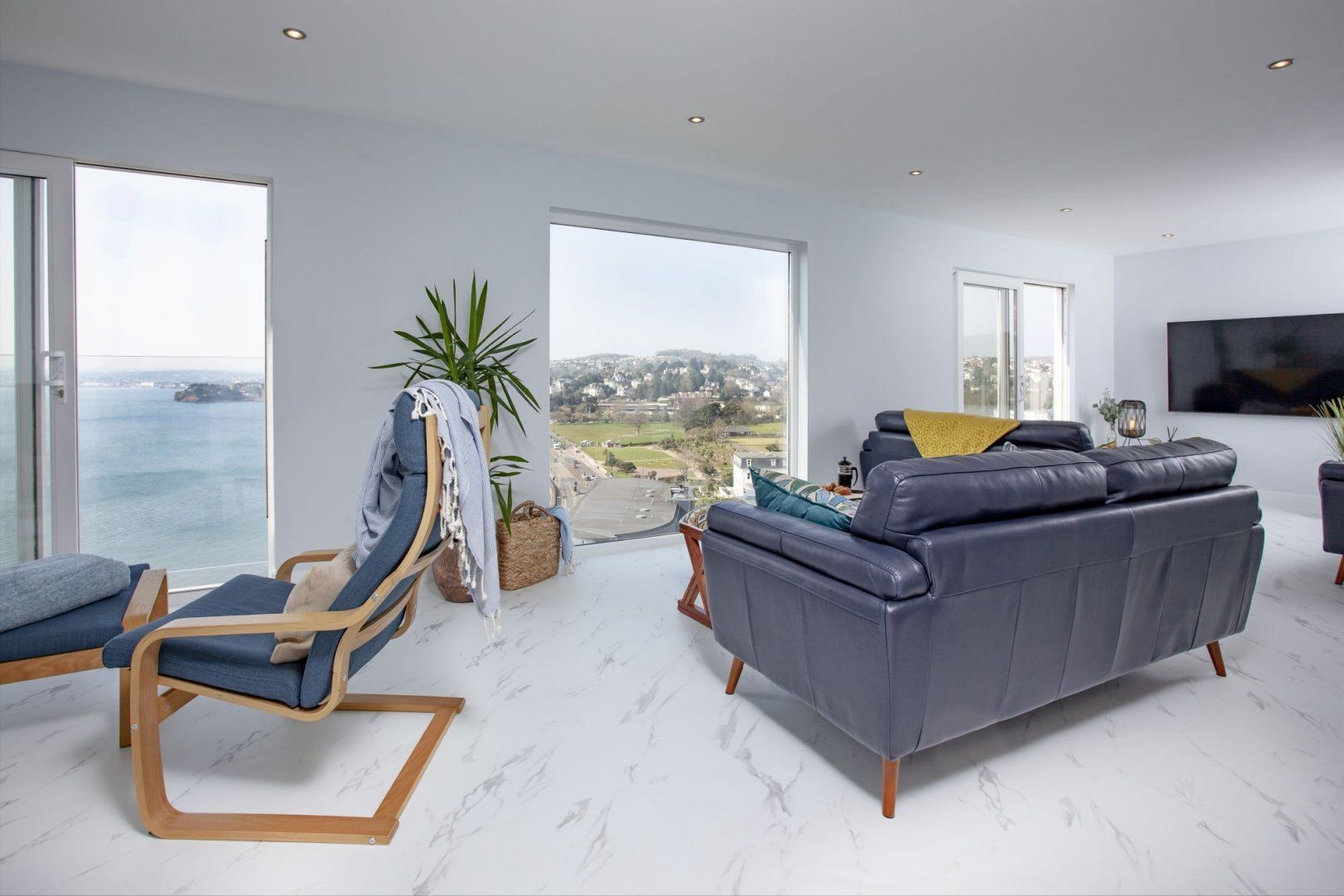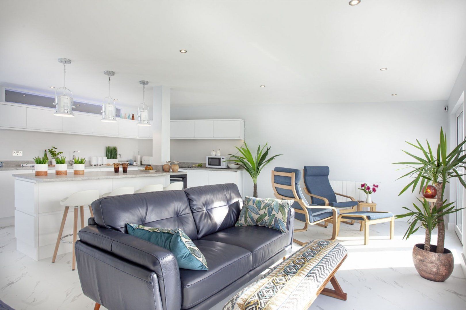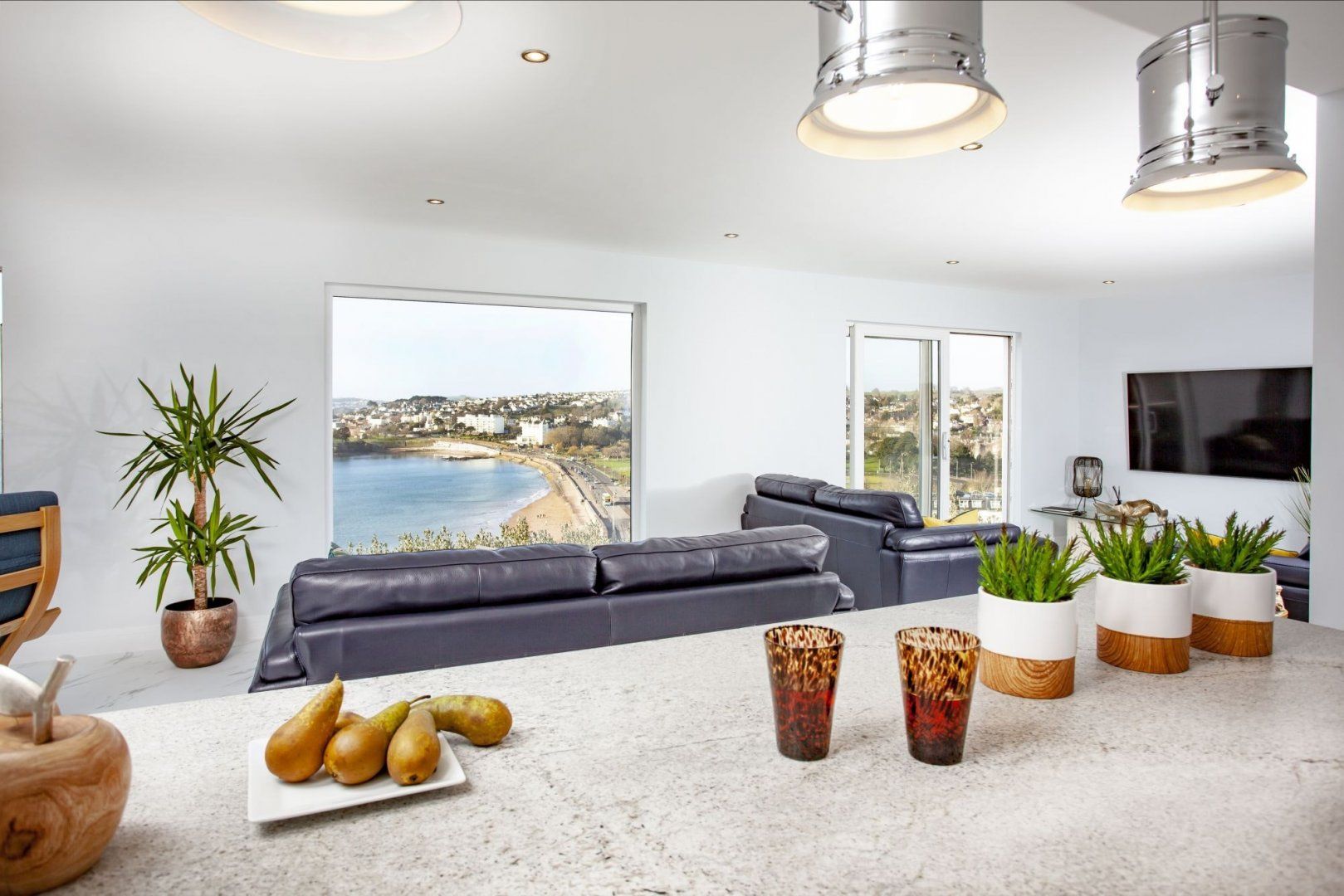 Nestled in the idyllic town of Torquay, this is a dream base for a coastal getaway, especially if you’re here on a romantic holiday. Inside, you’ll find a stunning living room, with those huge windows letting in streams of natural light and offering unmatched vistas. We love the sleek, modern décor and the plush furnishings, inviting you to make yourself right at home and relax after a day of coastal exploring.