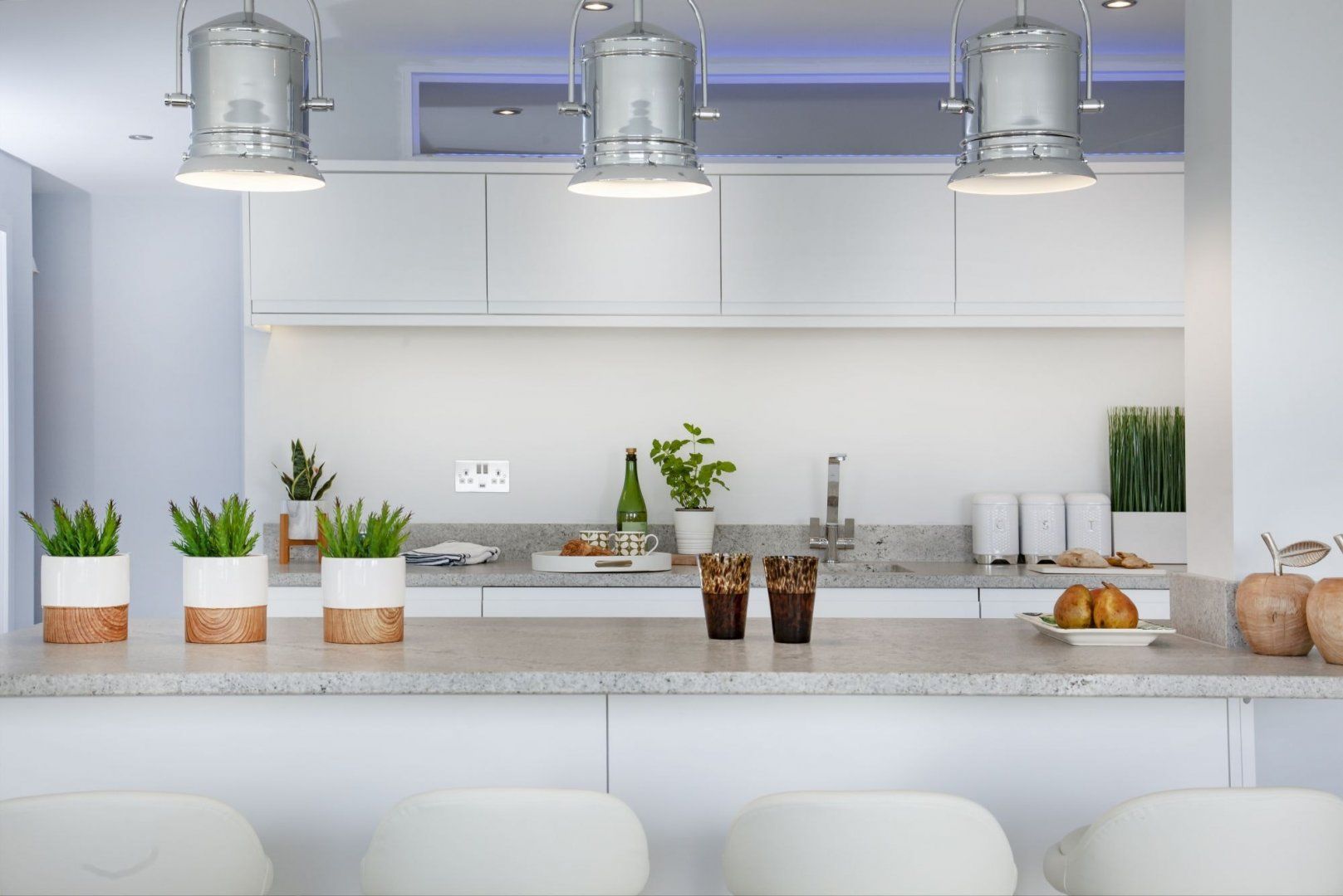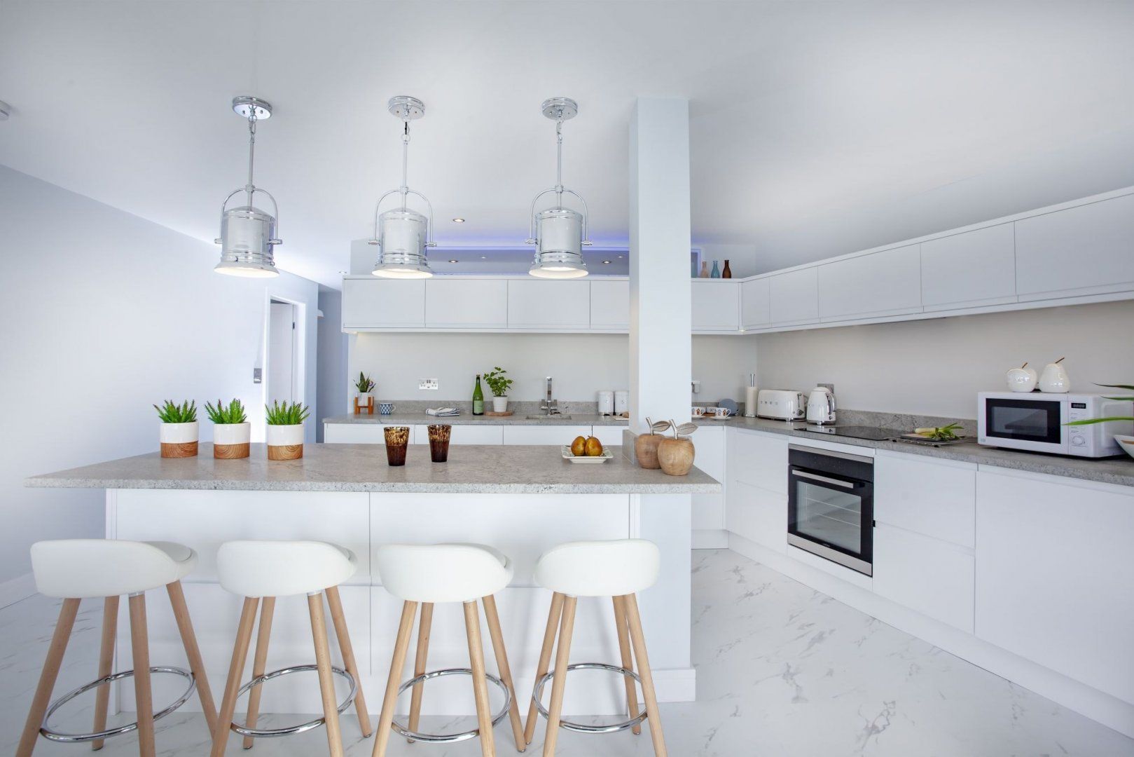 While there’s no shortage of excellent dining options in the area, you may also opt for rustling up something delicious in the well-equipped kitchen, in which case the stylish island and stools will provide the perfect setting for a romantic supper.