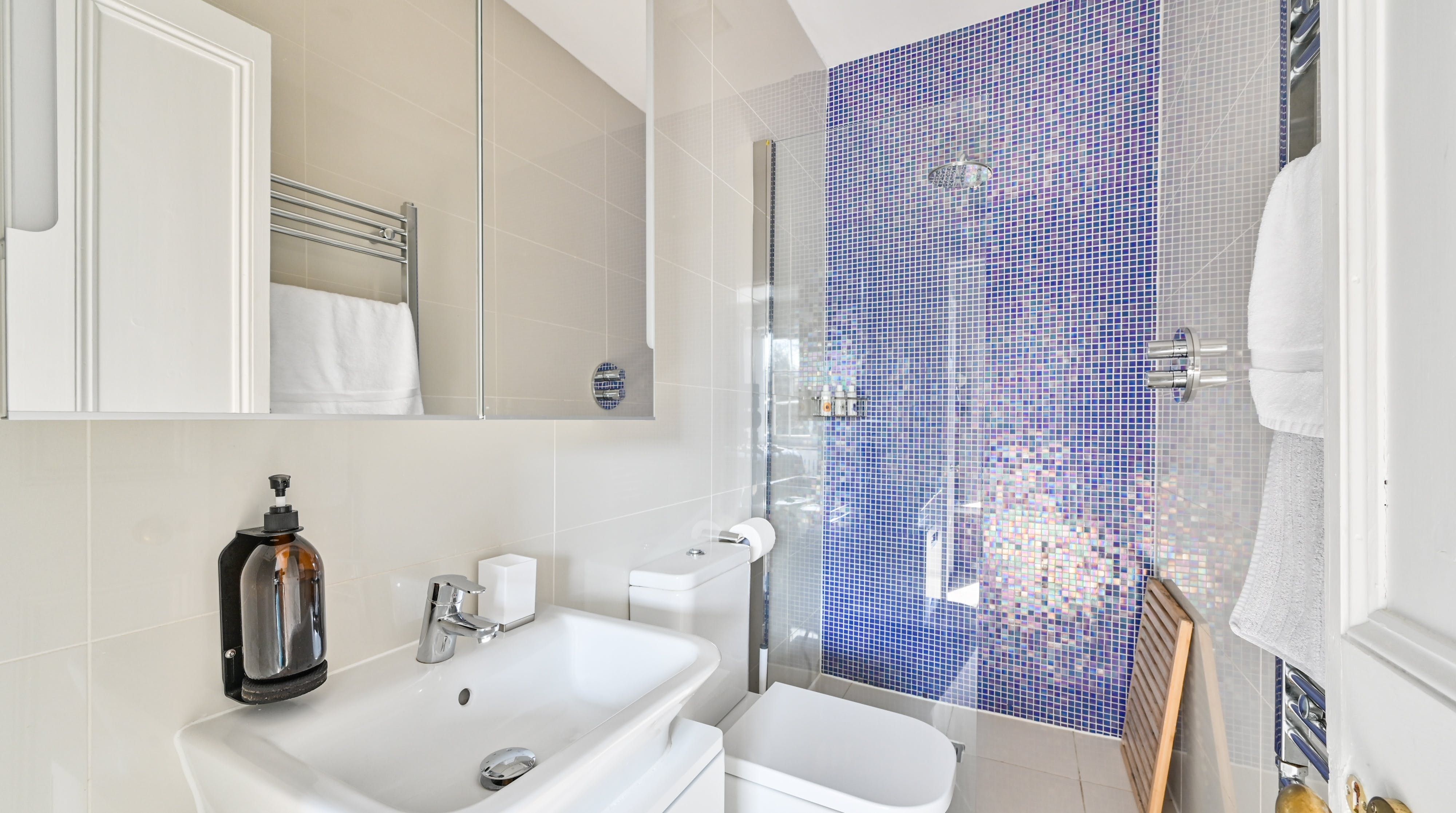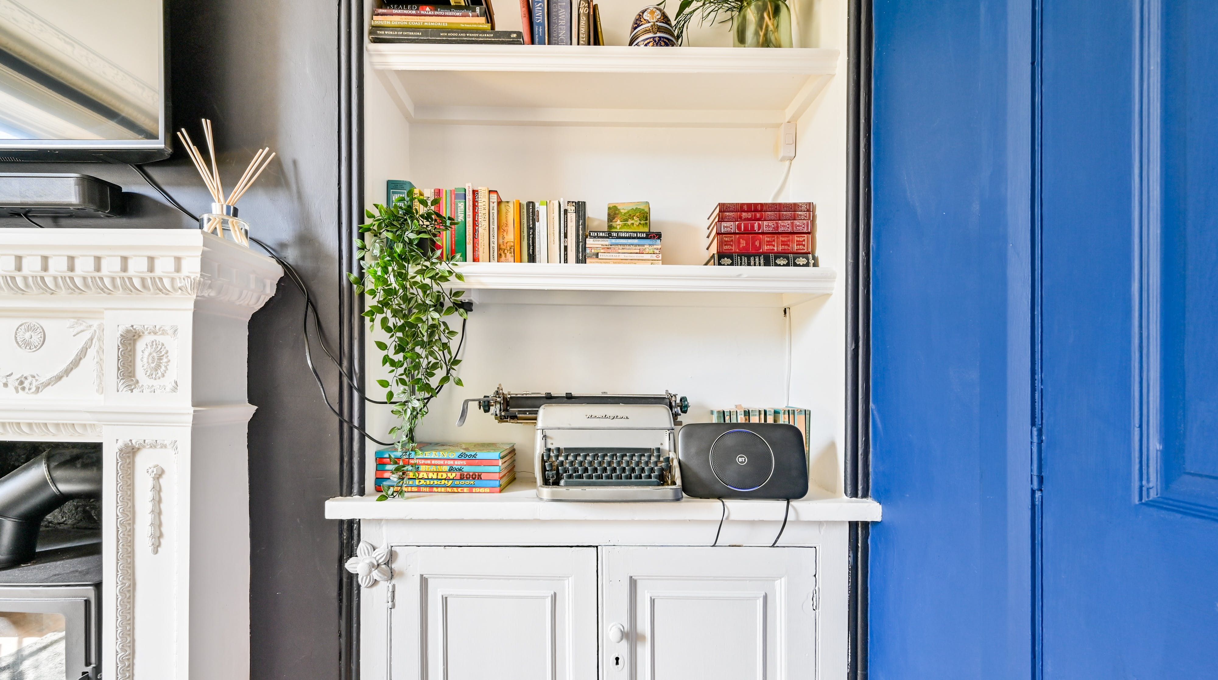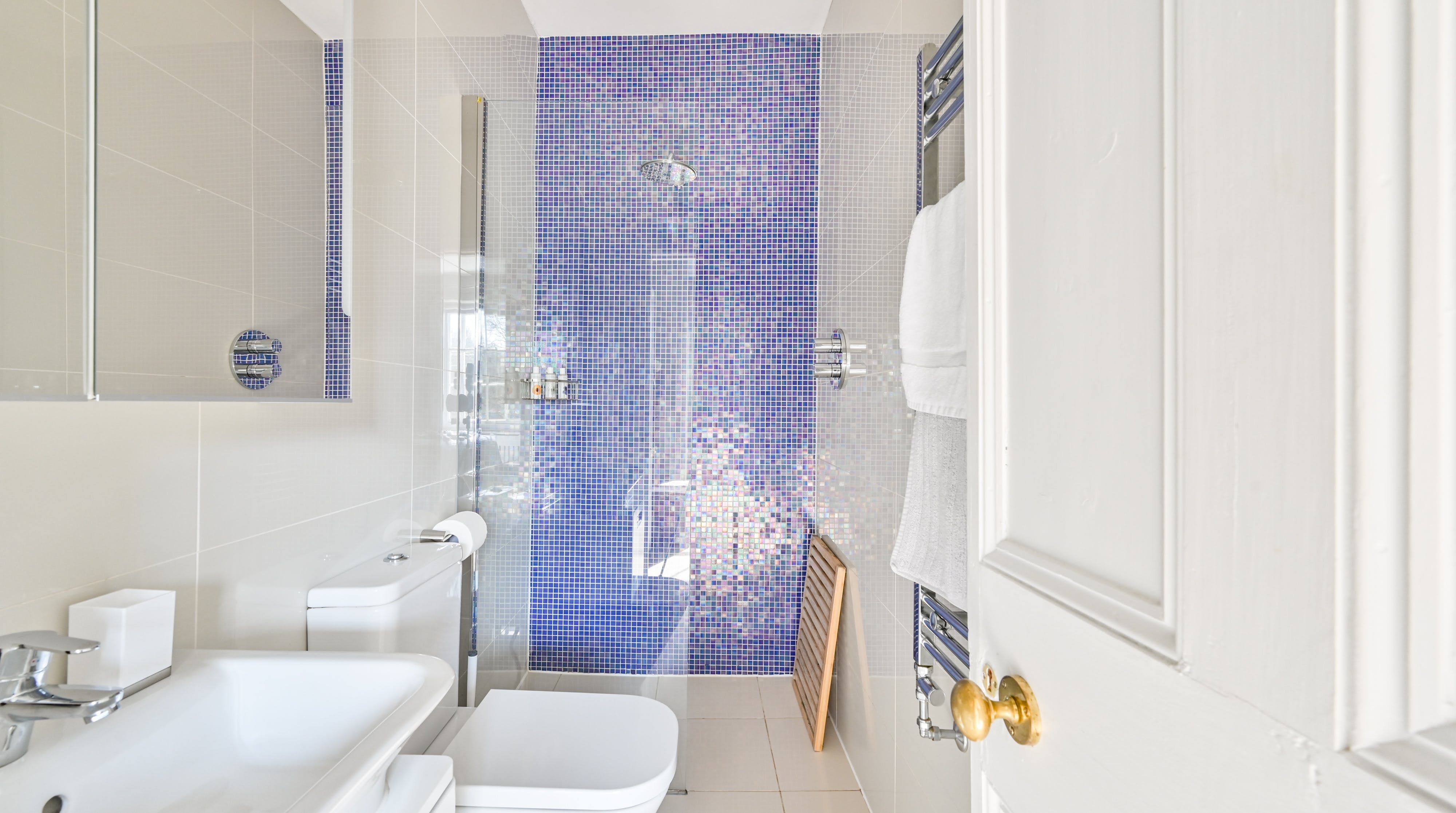 *There's a downstairs shower room, accessed via a hidden door that forms part of the bookcase, plus a shower outside