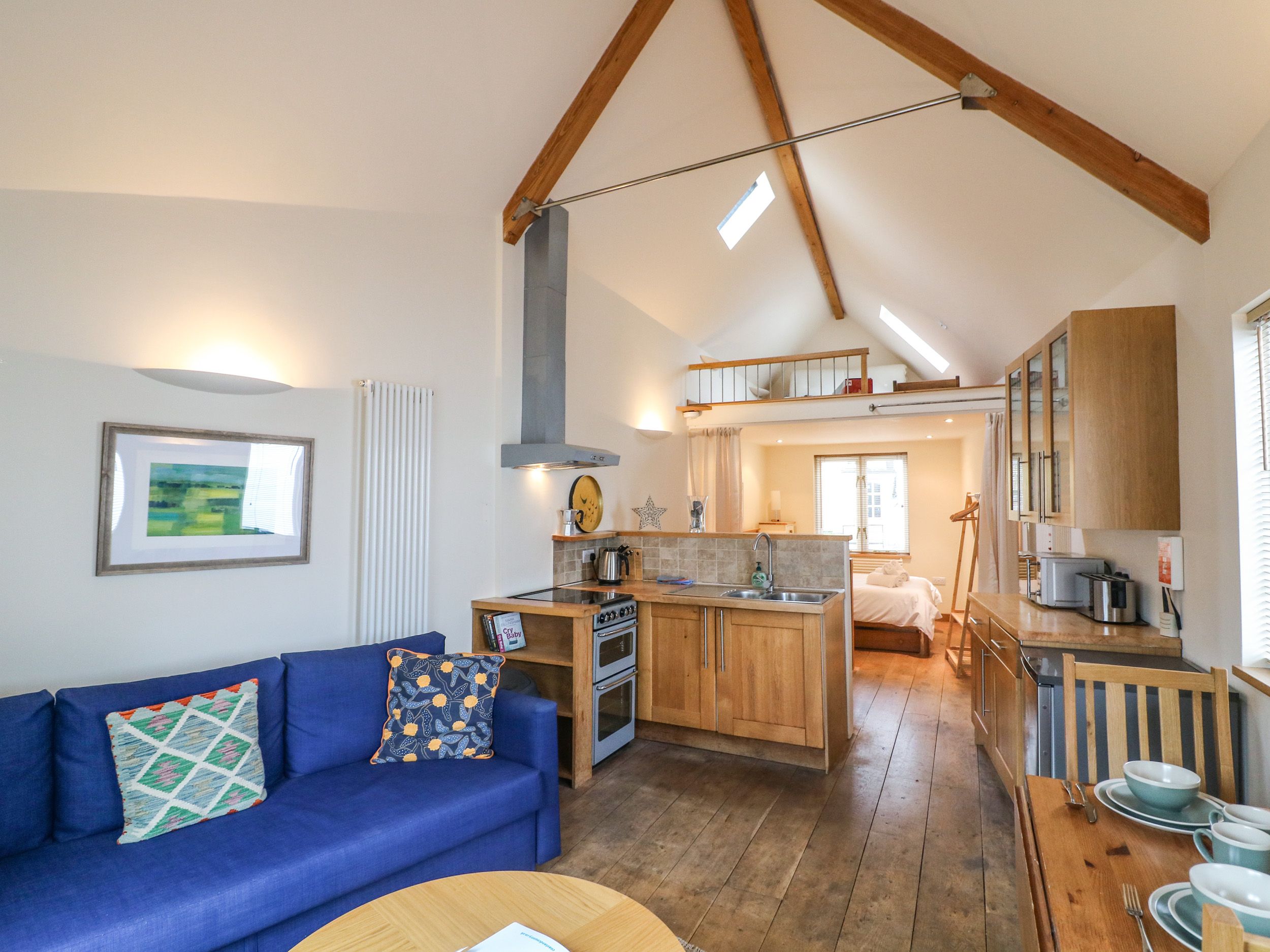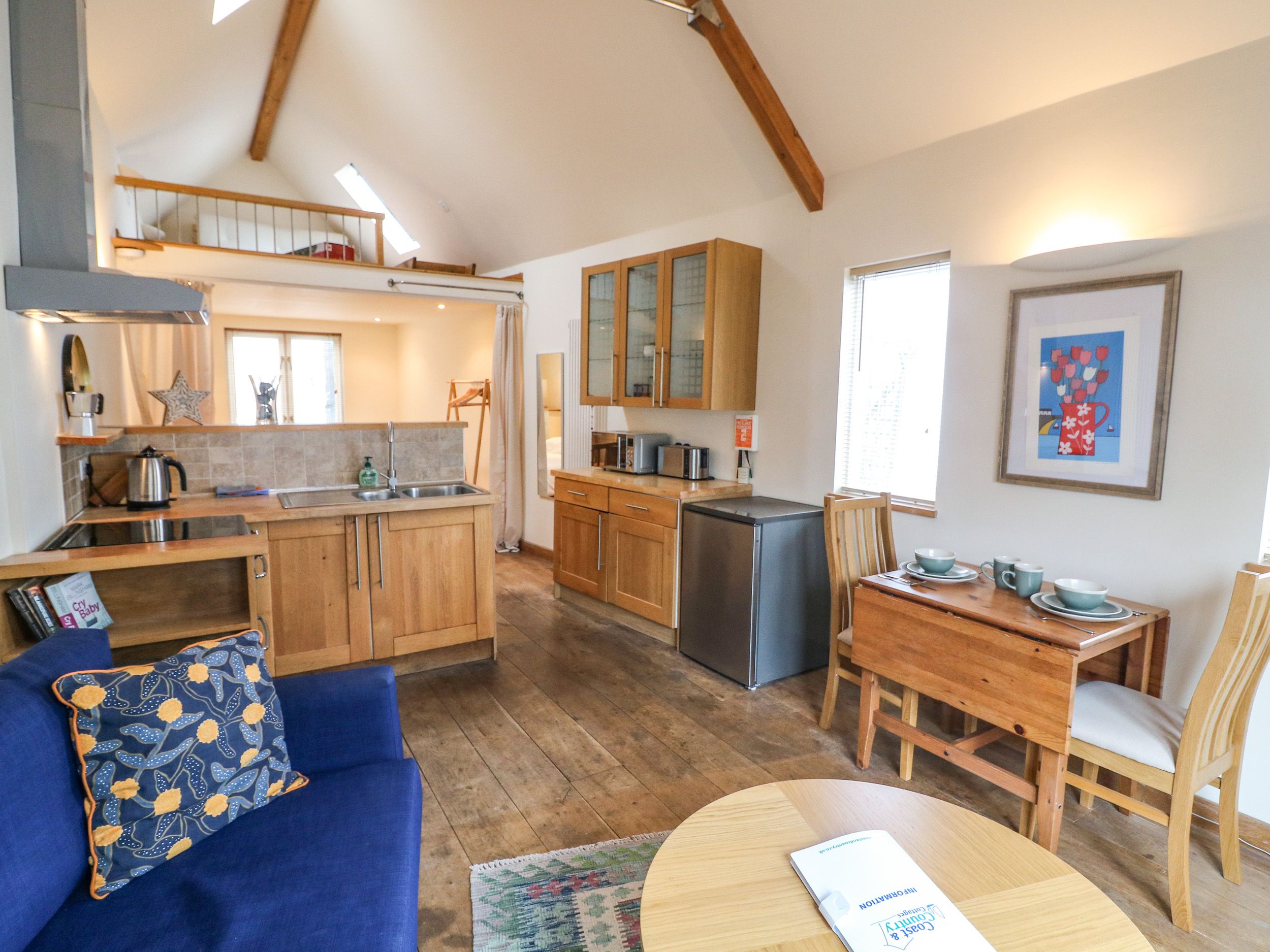 Holiday home The open-plan living space features a kitchen housing a gas oven and hob, microwave, fridge with ice box, dining seating and sitting area with TV and a double bed. On the ground-floor there is a shower room, washing machine and a garage with parking for one car. Within 0.1 miles there is a shop and pub, and please note that there is no smoking and pets are not allowed. WiFi, fuel, power, bed linen and towels are all included in the price. Choose The Loft Cottage for a delightful bolthole in Devon.