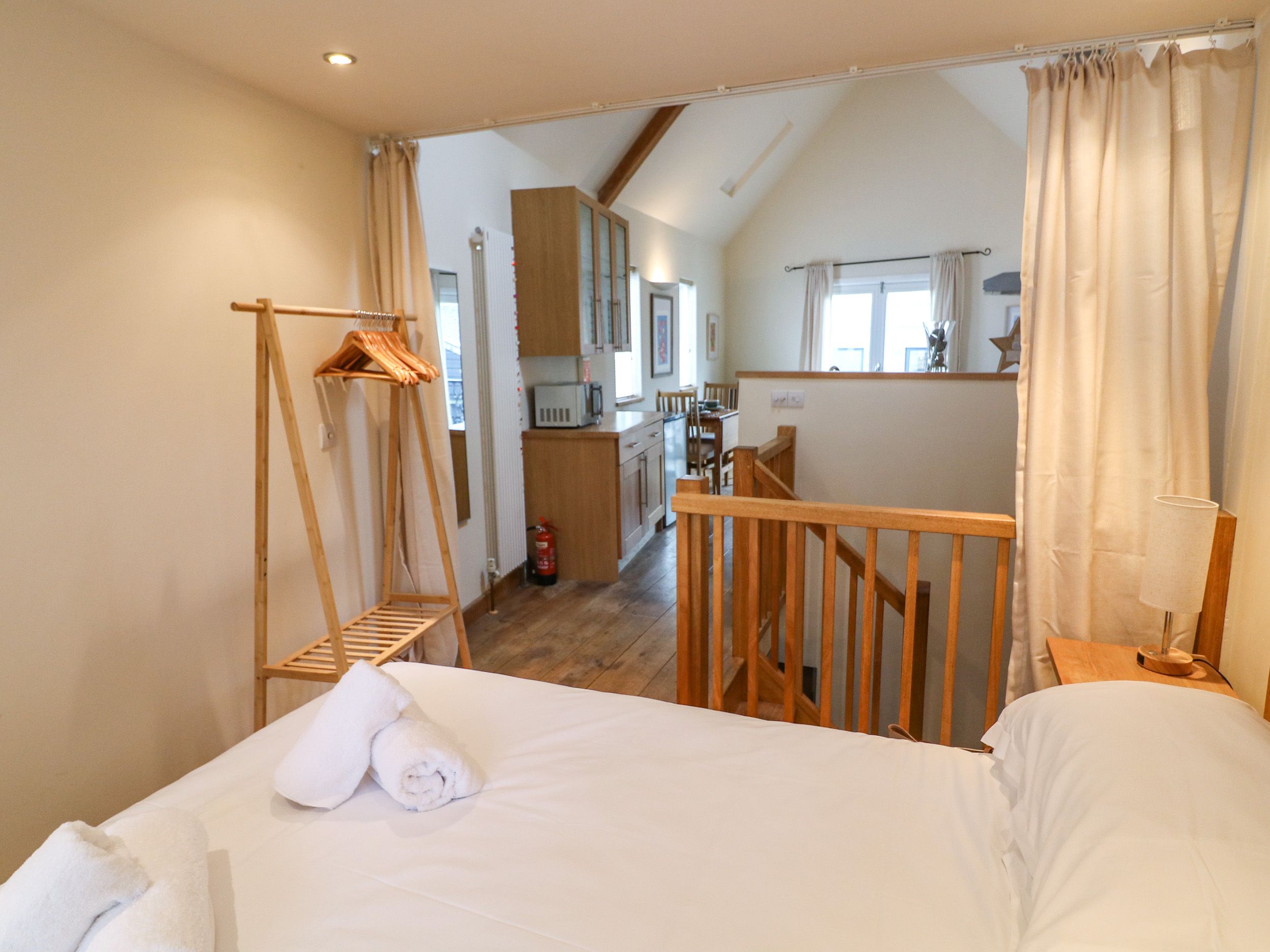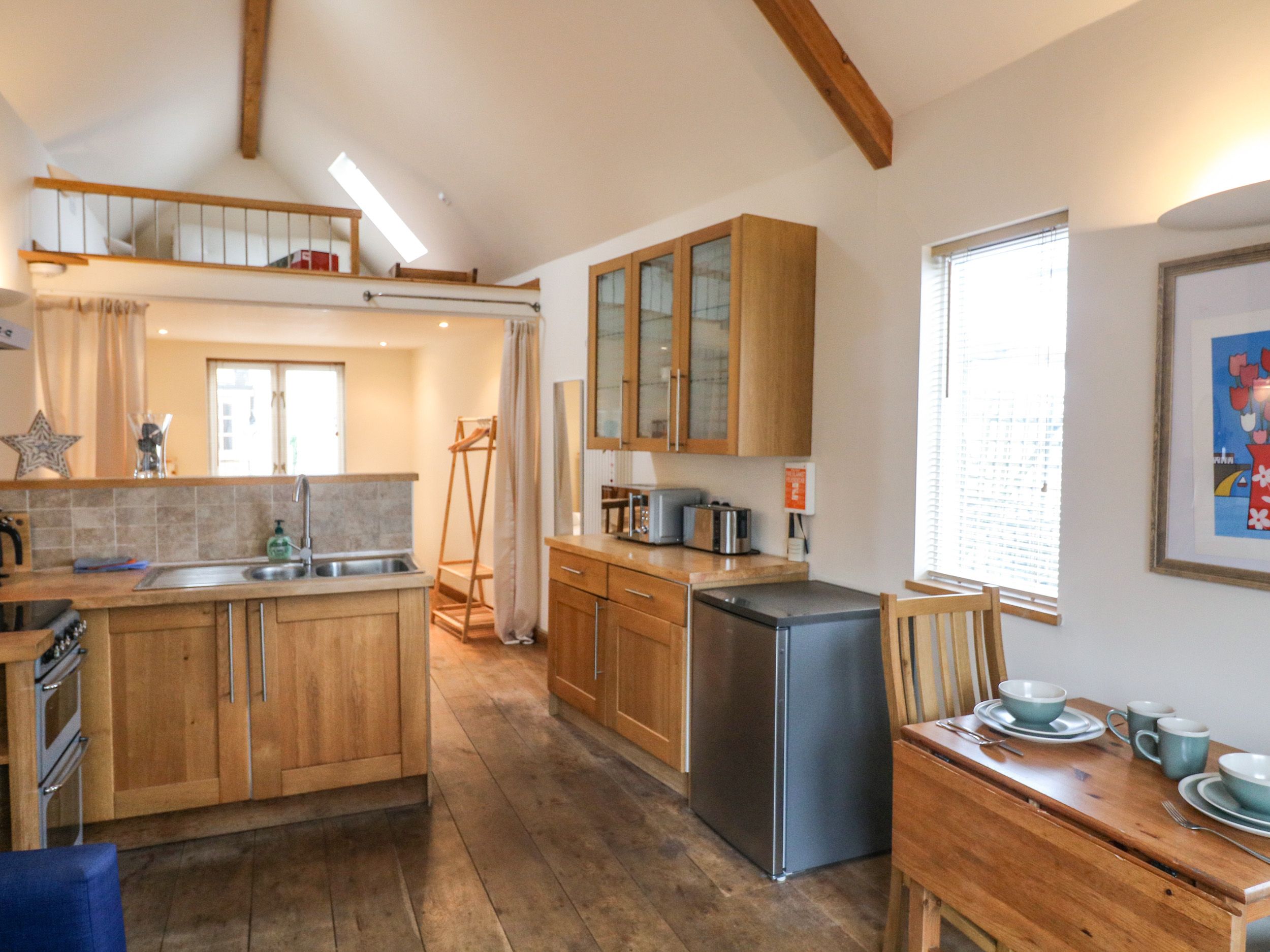 Accomodation Details First-floor studio style open-plan living space with kitchen, dining and sitting area with Juliette balcony and double bed. Ground-floor bathroom with bath, shower over, basin and WC