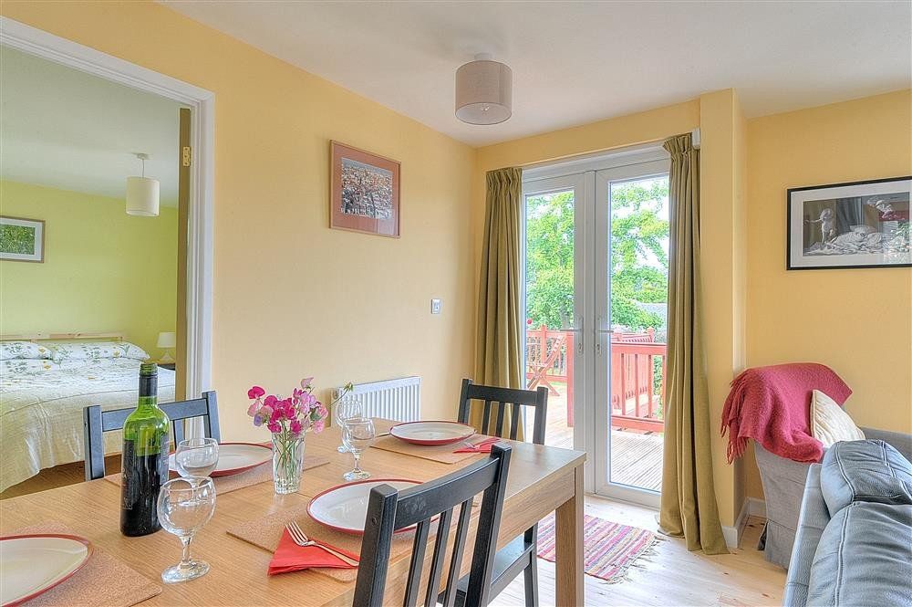 Single-storey. Two bedrooms: 1 x double, 1 x twin. Bathroom with bath, shower over, basin and WC. Open-plan living area with kitchen, dining area and sitting area