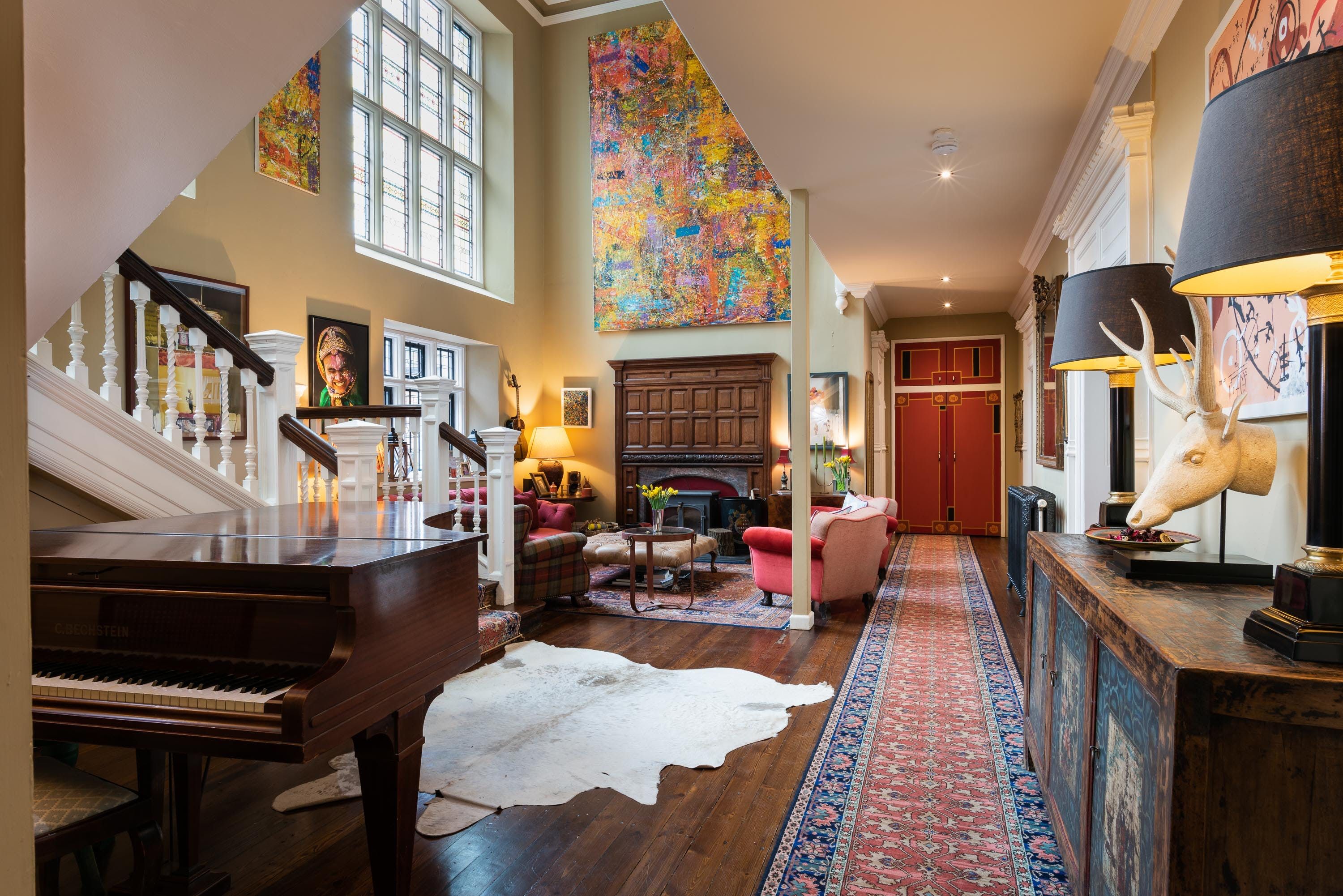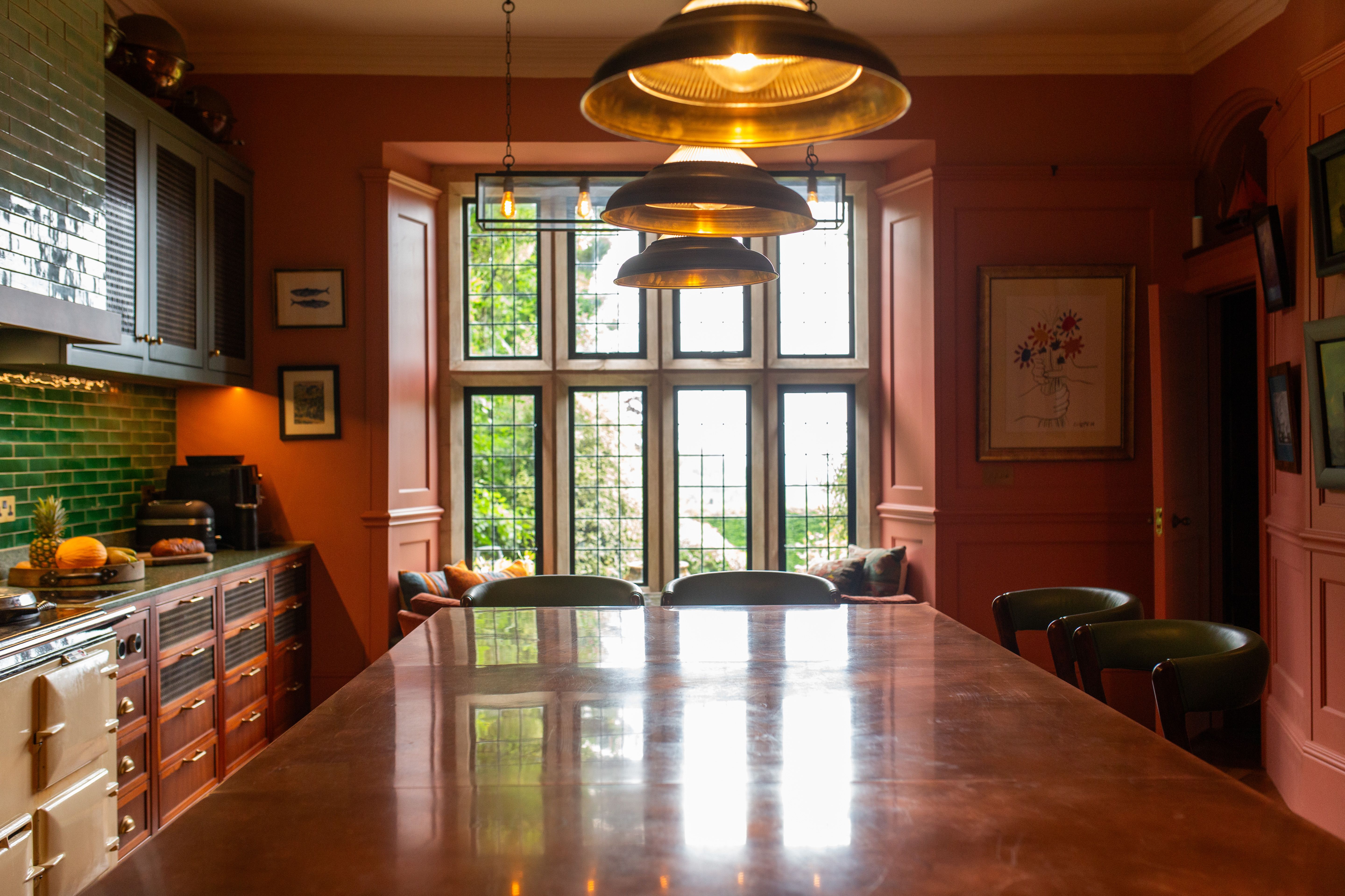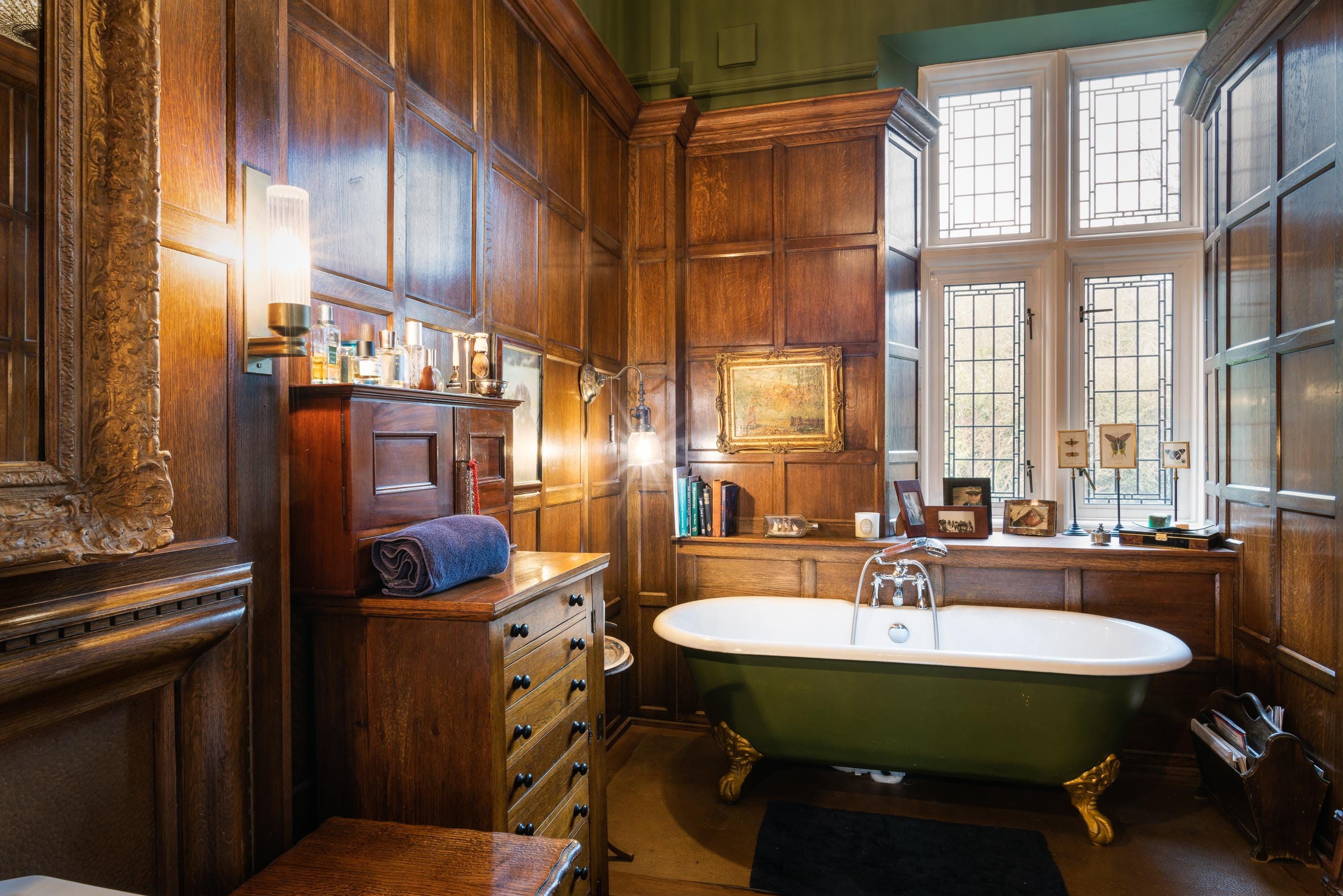 Stradling the border between Devon and Dorset on over five acres of woodland, this stately and delightfully quirky home can thank the secluded location for the beautiful countryside views. Between the untamed garden and on-site meadows, you'll find a tiered deck with a sauna, hot tub and ample seating. Even further along is a natural pool for warmer days. If you'd prefer a day at the beach, Lyme Regis lies only a few minutes away. And exploring the Jurassic Coast is a must, Durdle Door especially – it's a little over an hour but well worth the trip.