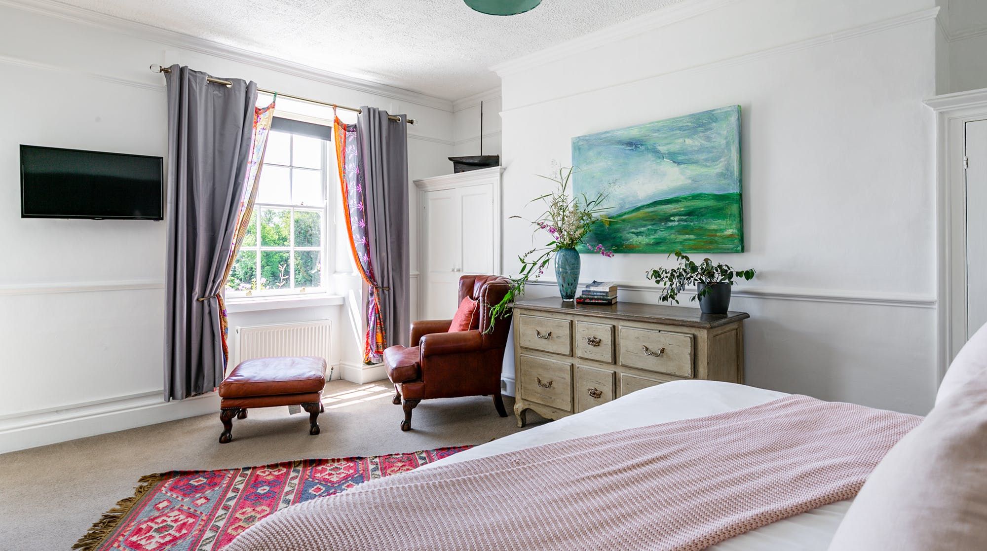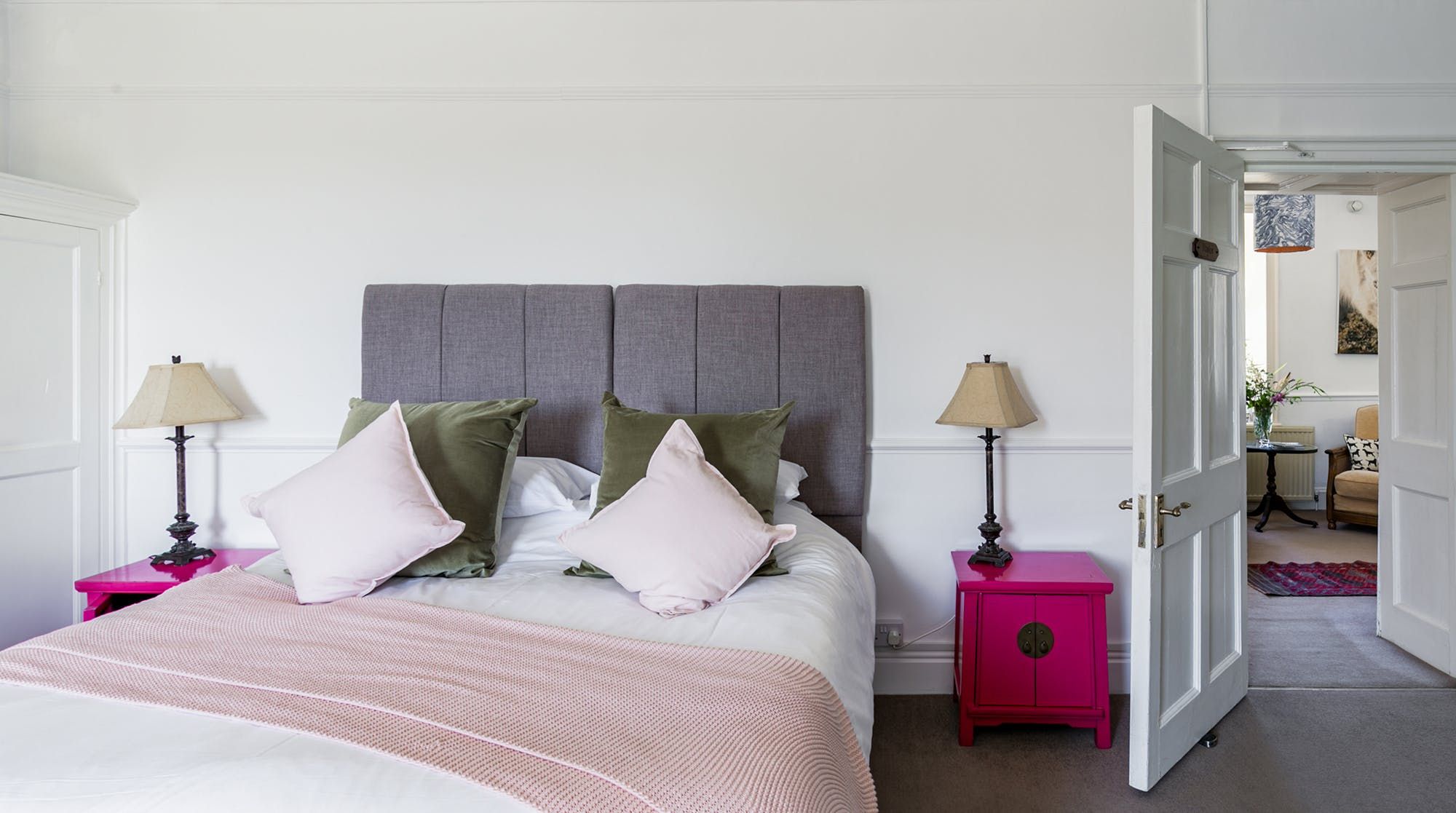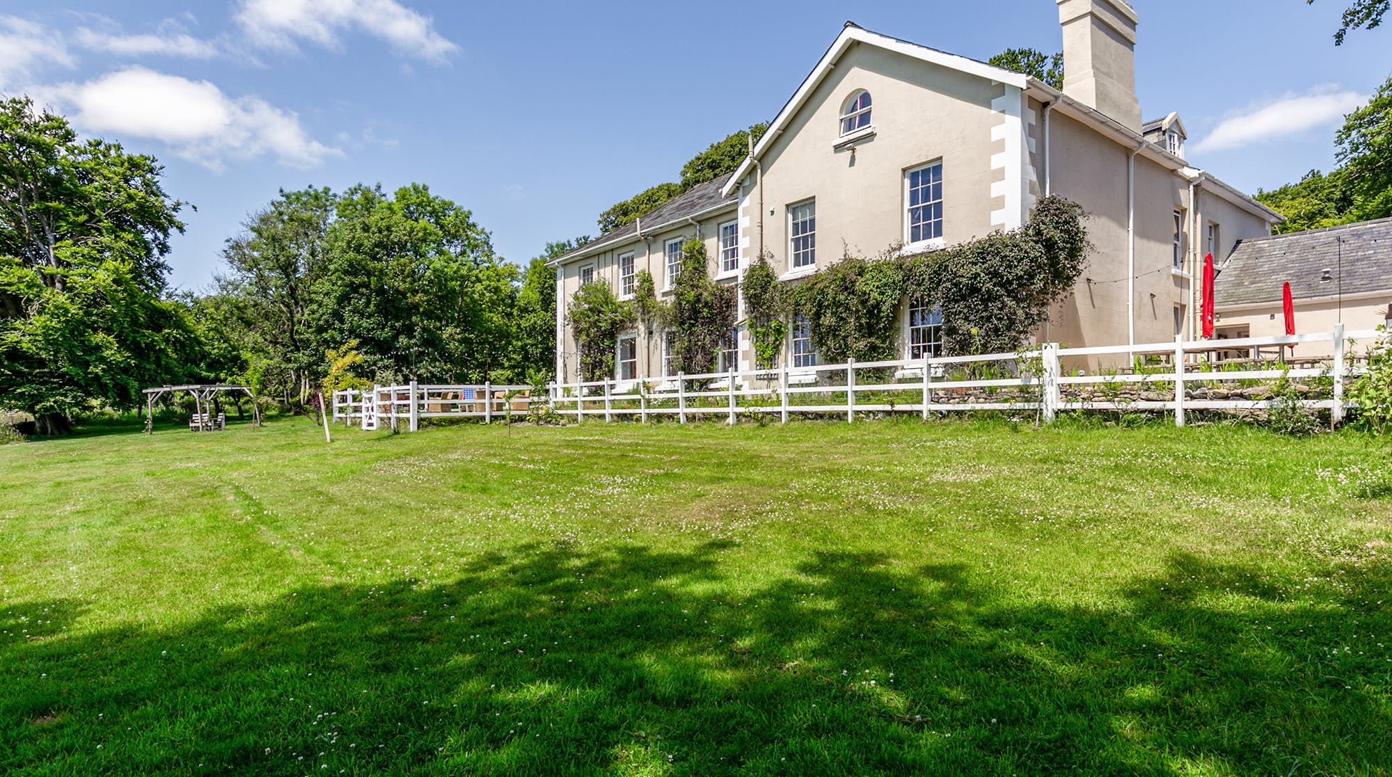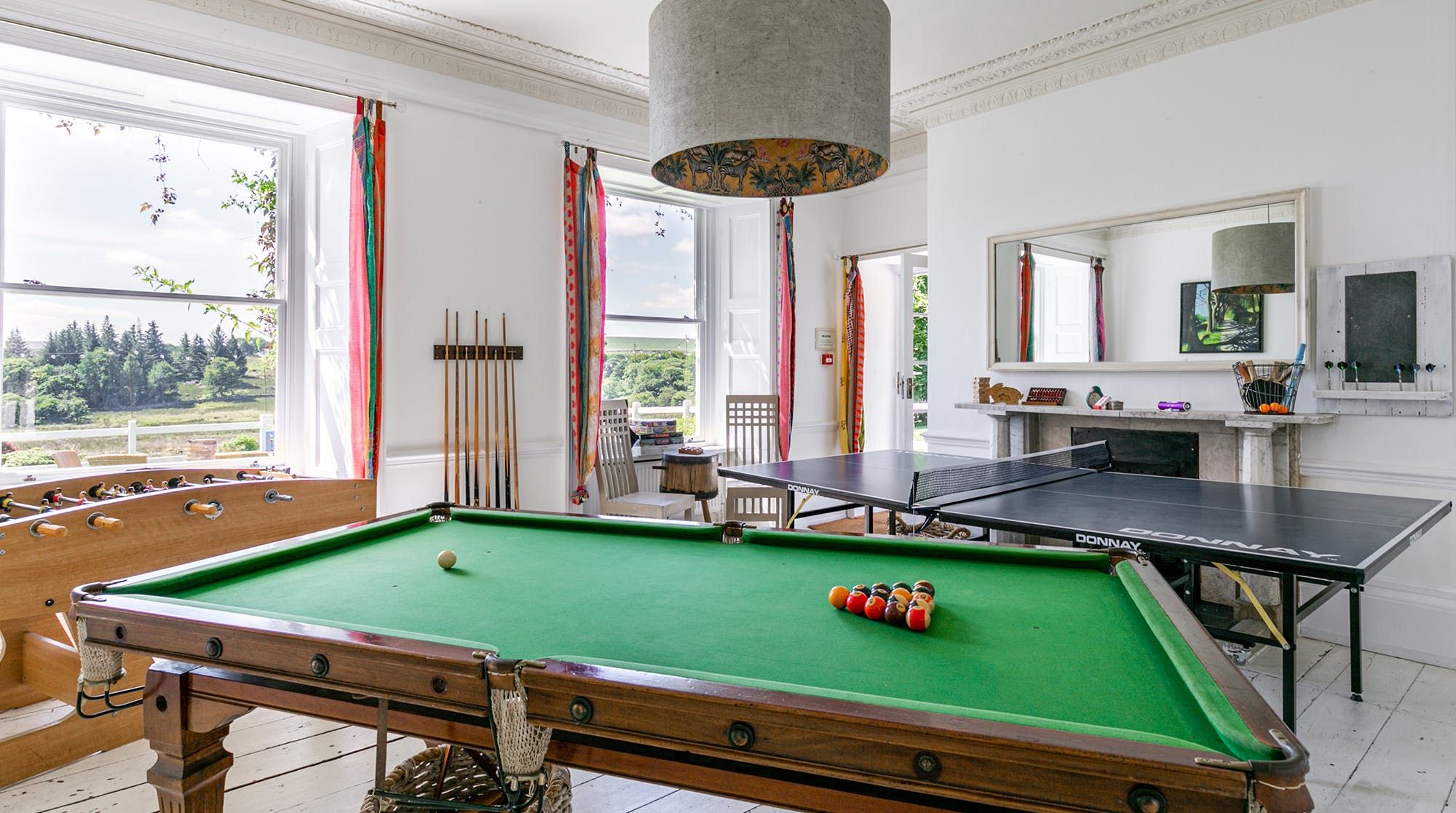 Inside, there’s a cosy lounge where you feel the history of aristocratic country escapes radiating from the marble fireplace. A collection of board games provides the analogue entertainment here, alongside a dedicated games room with ping pong and pool. The big dining room can hold banquet-sized feasts and the farmhouse-style kitchen with its massive range cooker is a delight for the chef of the group. When it comes to hitting the hay, bedrooms come with an array of four-posters, sleigh beds and comfy doubles.