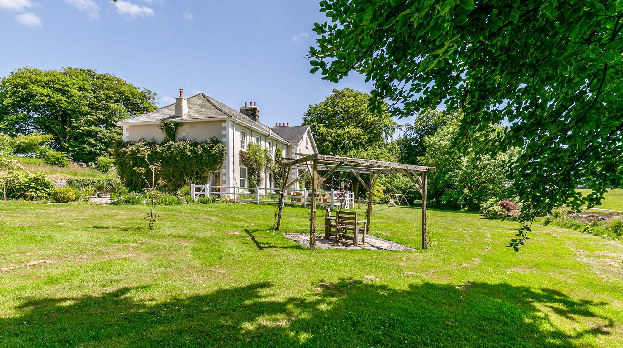 This Georgian period manor sits in the bucolic splendour of Dartmoor National Park. The foundations date back to the 15th century and the manor home you see here today was built in 1787. As with any aristocratic country retreat, you’re surrounded by sprawling gardens and grounds, where furnished patios overlook the rolling hill of the national park and even a private hot tub for an evening soak under the stars. Explore the woodlands to discover a wellness walk. There’s an outdoor kitchen with a built-in Argentinian grill and a wood-fired pizza oven for big family meals outside, and there’s a fire pit should you want to watch the sky for shooting stars long into the night. From the various viewpoints around the gardens, you can see why it is thought that Arthur Conan Doyle wrote Hound of the Baskervilles while he stayed here.