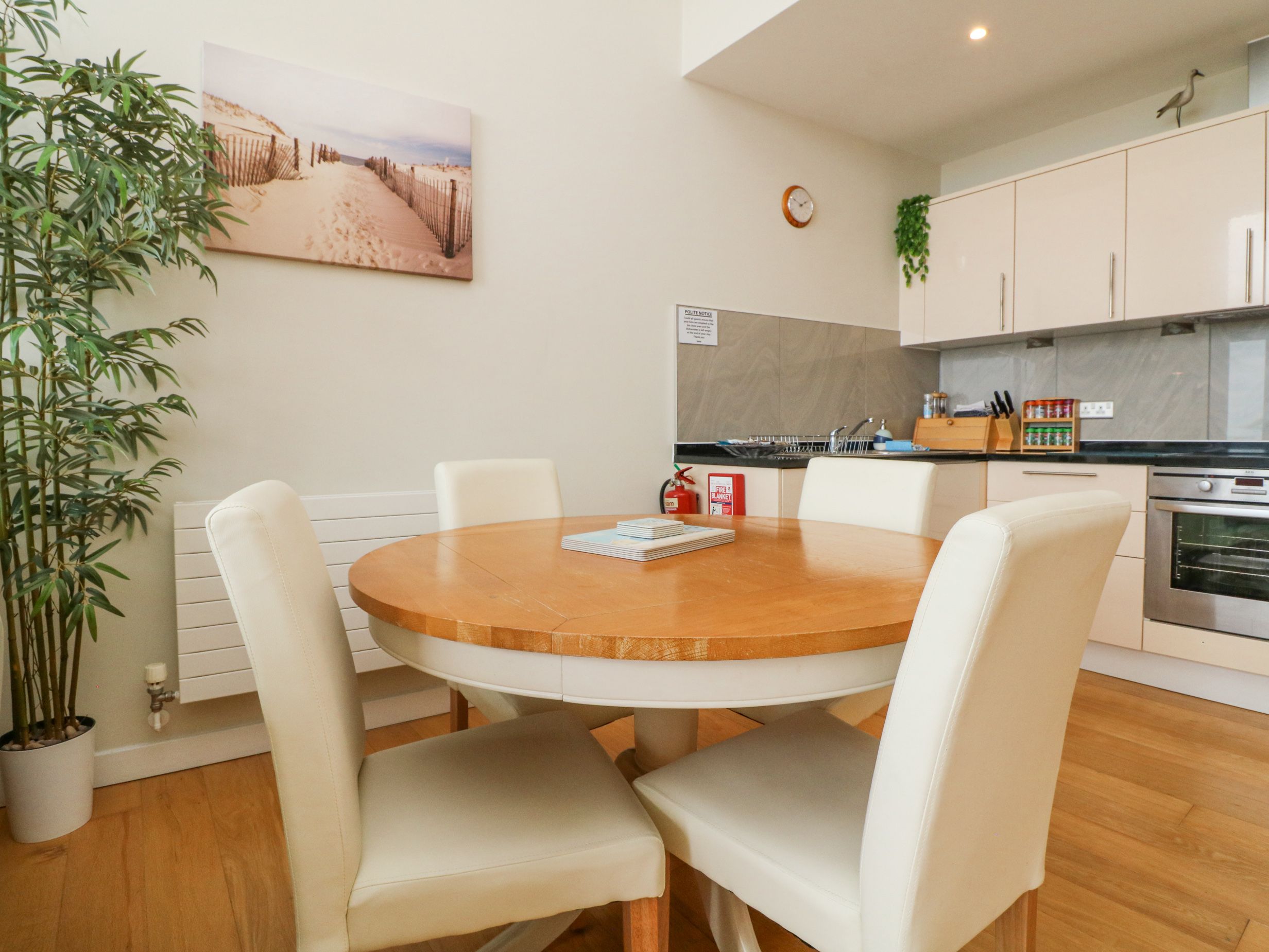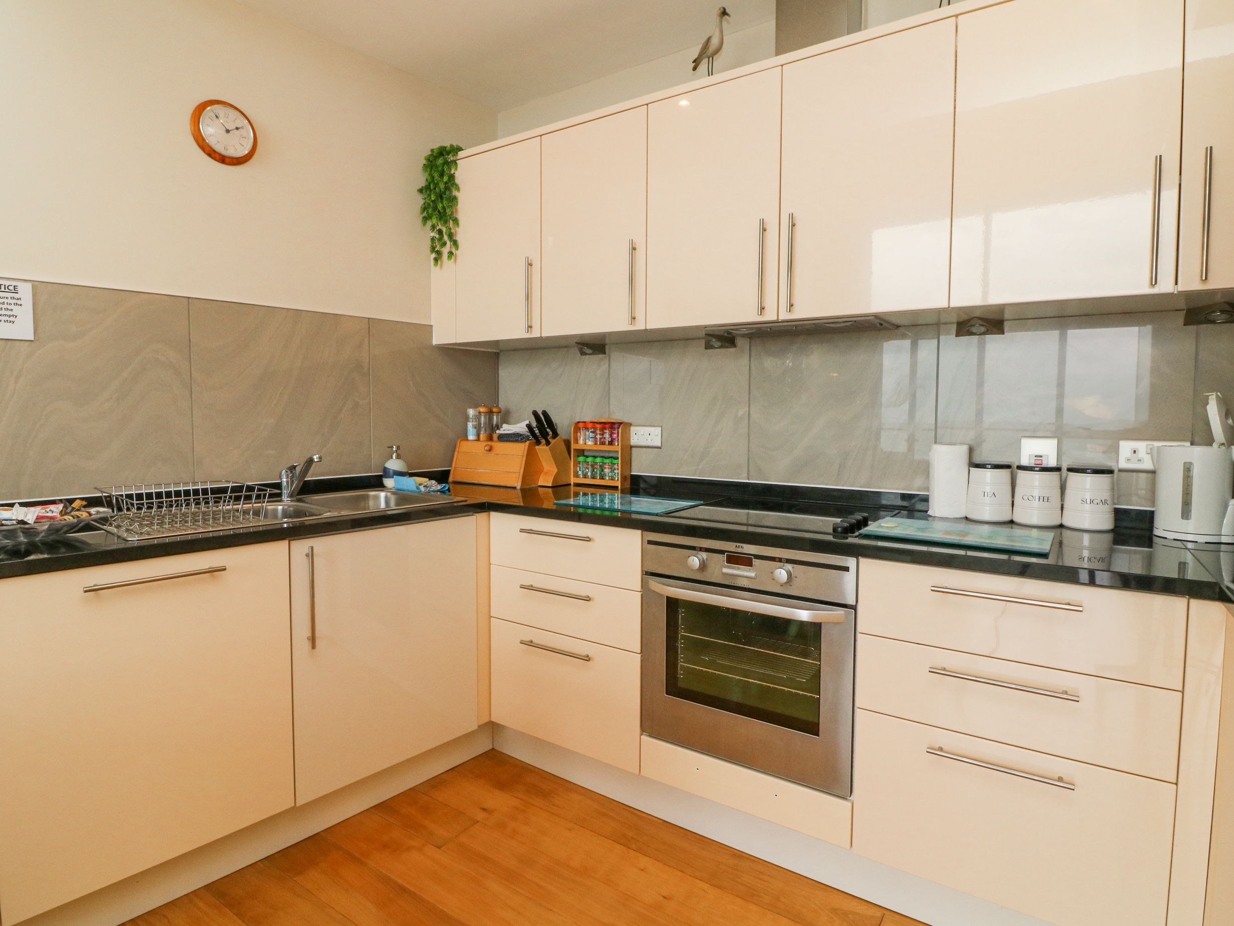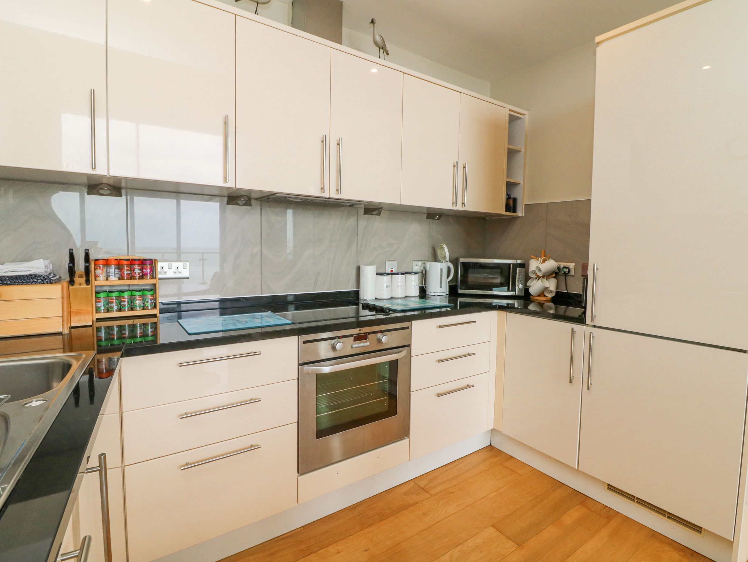 Holiday home The Penthouse, a fifth-floor apartment, consists of an open-plan living space with a kitchen with electric oven and hob, microwave, fridge/freezer, dishwasher, and kettle, a dining area with dining seating for 4, and a sitting area with TV. The bedrooms consist of a king-size and twin. There is a shower room with walk-in shower, basin, and heated towel rail and WC. Outside, there is a private balcony with furniture and allocated parking space for one car. Sorry, no pets and no smoking at this property. You can find a shop and a pub in 0.2 miles and there is a beach in 0.1 mile. WiFi, fuel, power, bed linen and towels are all included in the price. Return year after year to The Penthouse. Note: This property has a Good Housekeeping Bond of 200GBP. Note: No short breaks