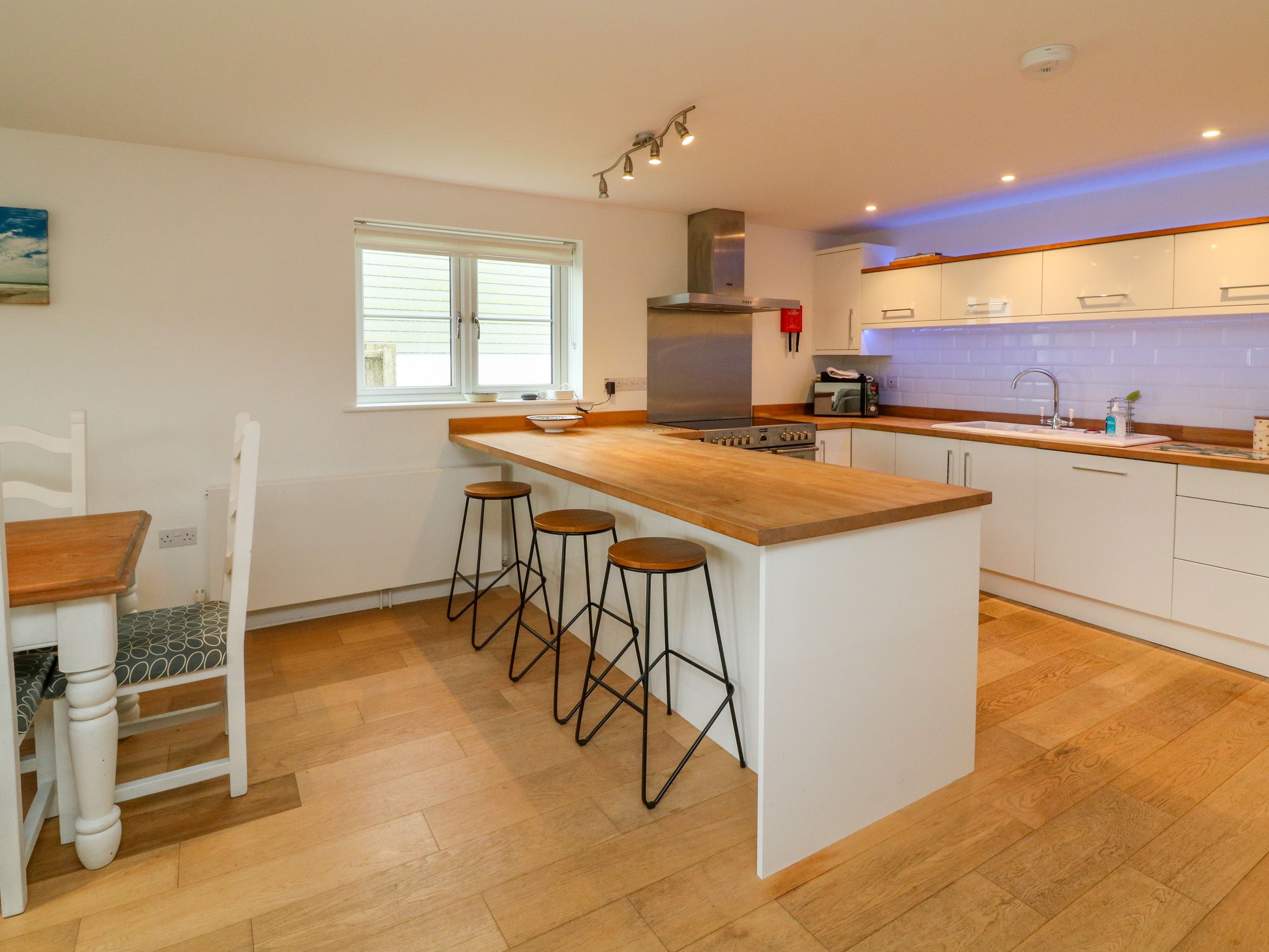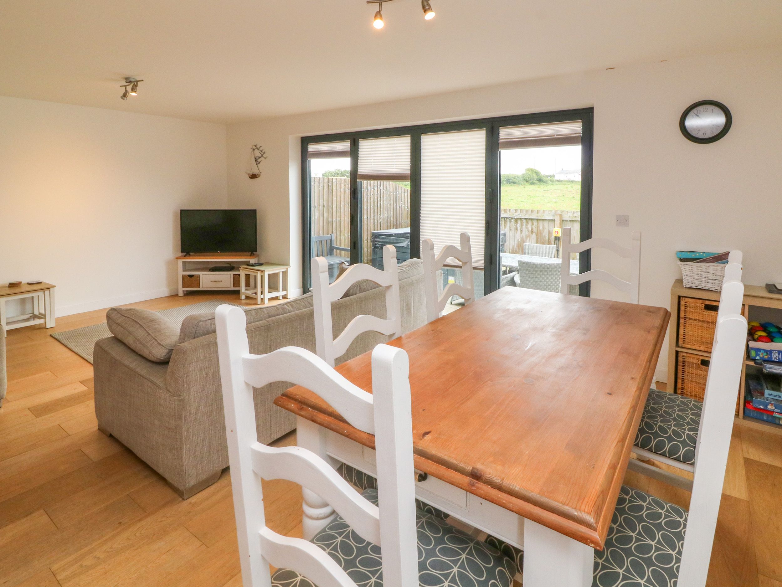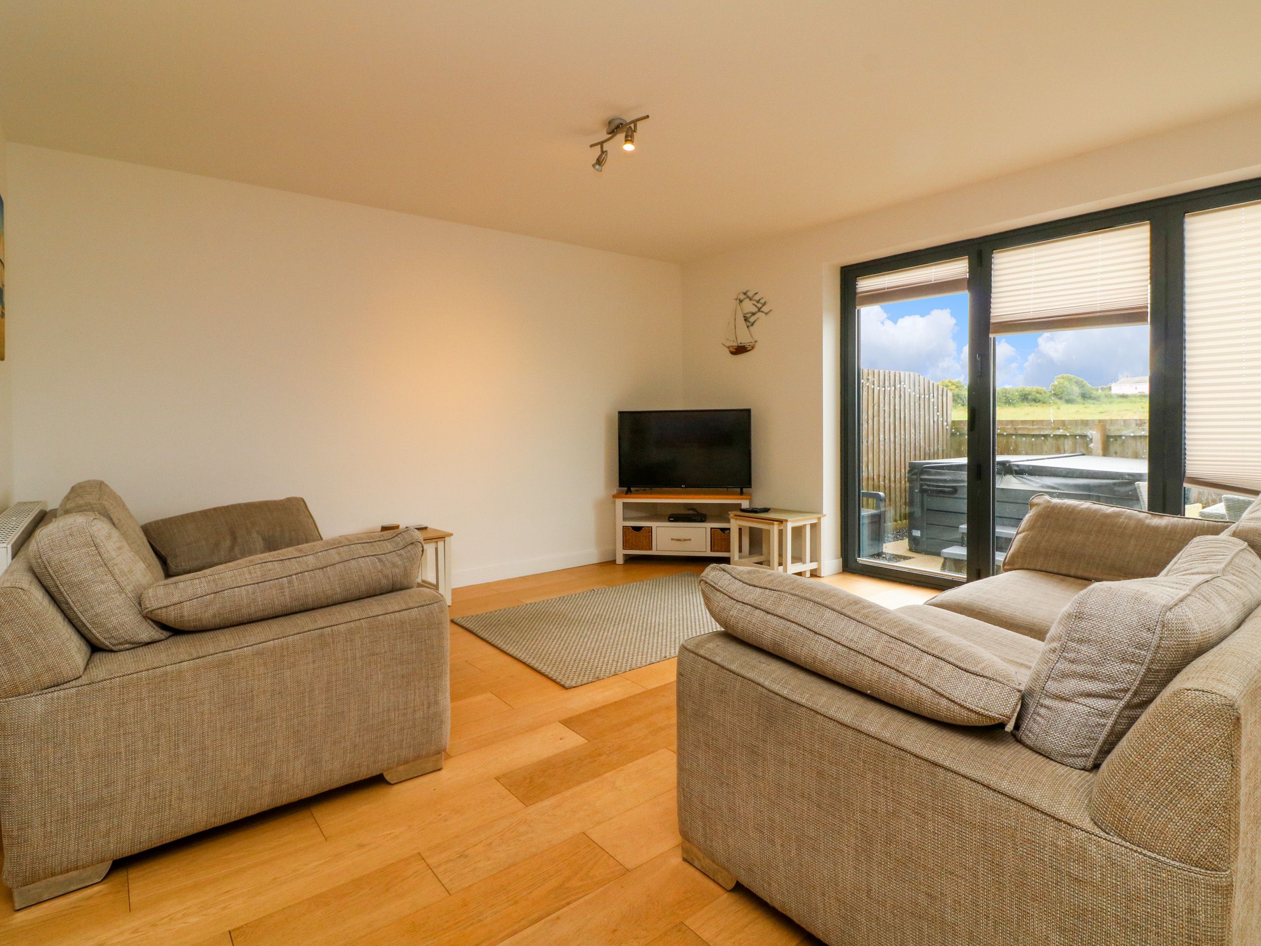 Amenities Central heating. Electric oven and hob, microwave, fridge, freezer, washing machine, tumble dryer, dishwasher, kettle and toaster. Smart TV, WiFi. Fuel and power inc. in rent. Bed linen and towels inc. in rent. Highchair and travel cot available on request. Allocated parking spaces for 2 cars. Enclosed wraparound garden with lawned area and patio with furniture and hot tub. Two well-behaved dogs welcome. Sorry, no smoking. Shop 0.3 miles, pub 0.6 miles, beach 2.8 miles. Note: Check-in is from 4pm, check-out by 10am. Note: There's a step up to the entrance