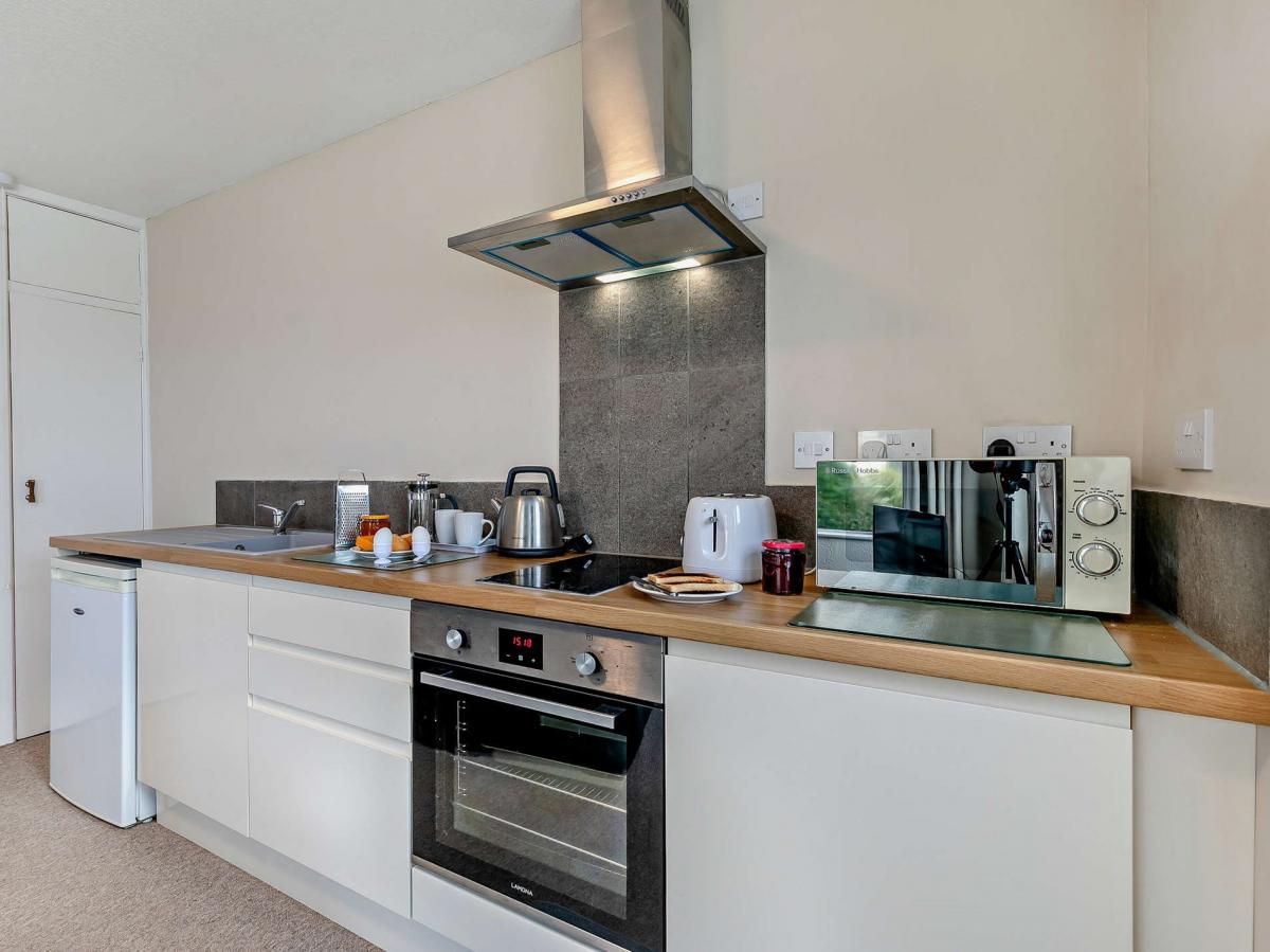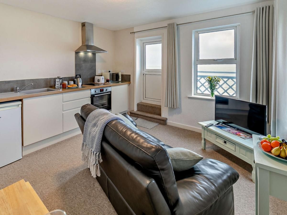 Hosting two guests in exceptional comfort, this first-floor apartment enjoys everything you might need for restful mornings and lazy evenings spent relaxing together, including a balcony with patio furniture and views of the sea. The sea is always in sight when you’re this close to Woolacombe Bay, with the beach’s sandy shores accessible in just a few metres, ideal for leaving your belongings behind and wandering over for easy sunbathing, surfing, or swimming.