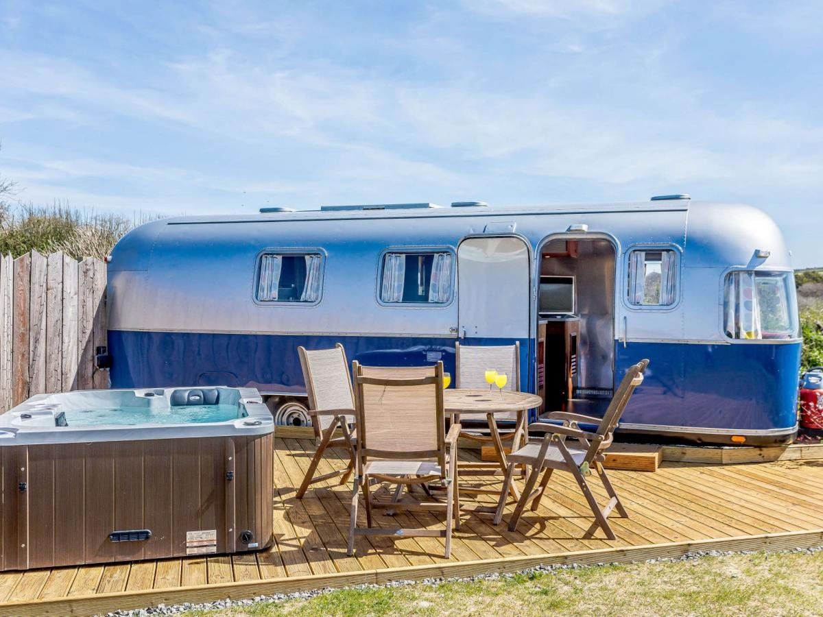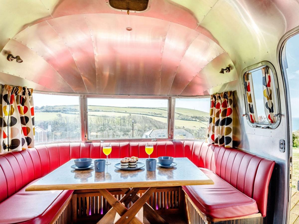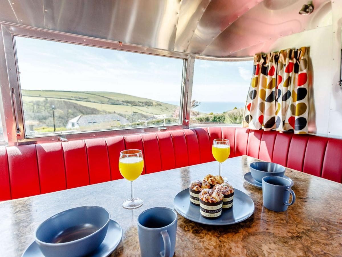 Set high above Woolacombe, this stylishly retrofitted Airstream Argosy offers a unique retreat blending iconic design with a tranquil coastal backdrop.