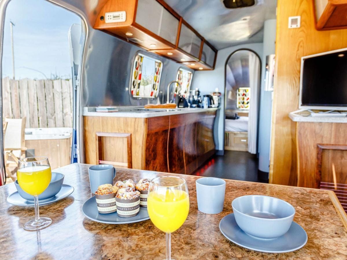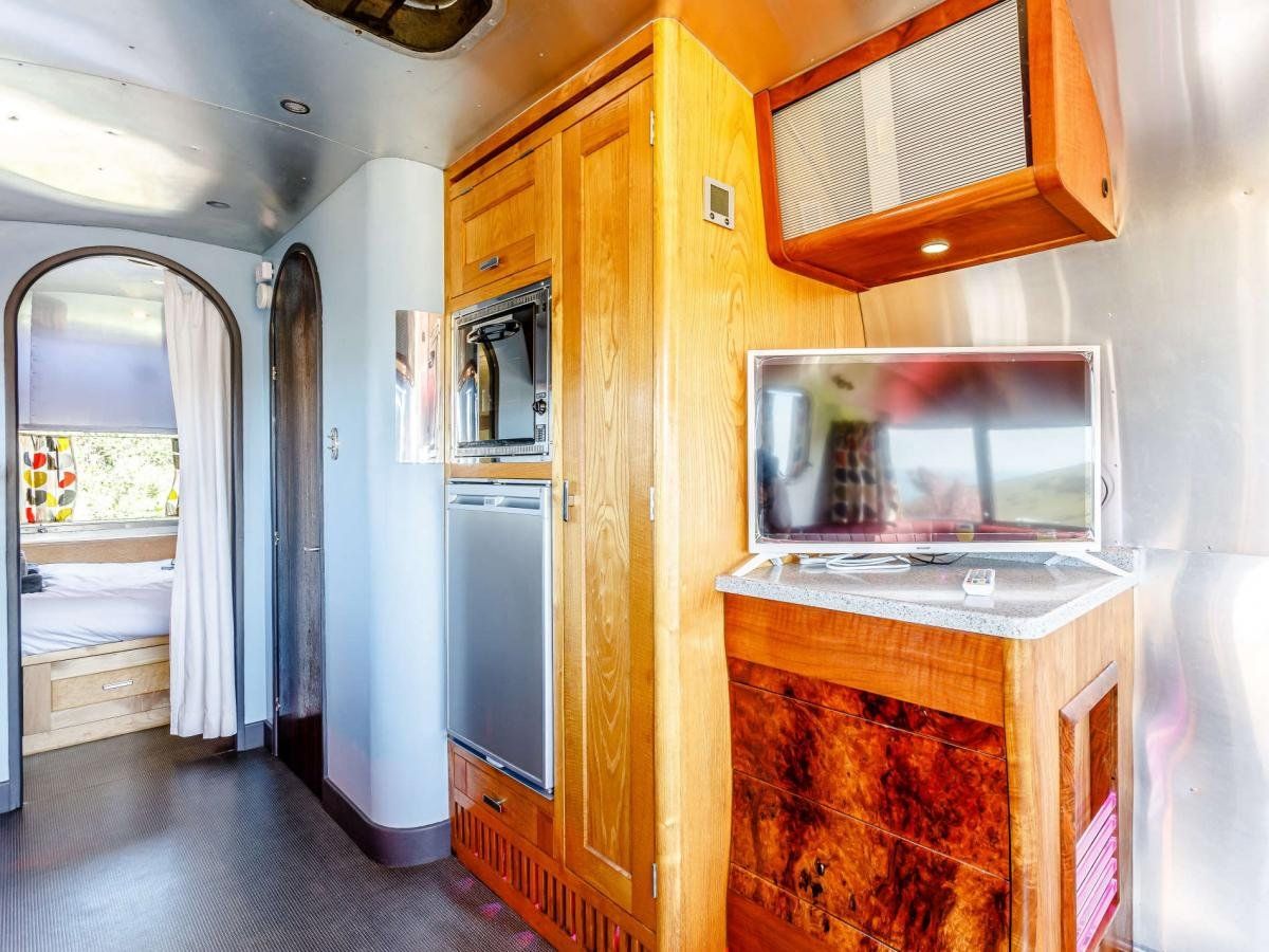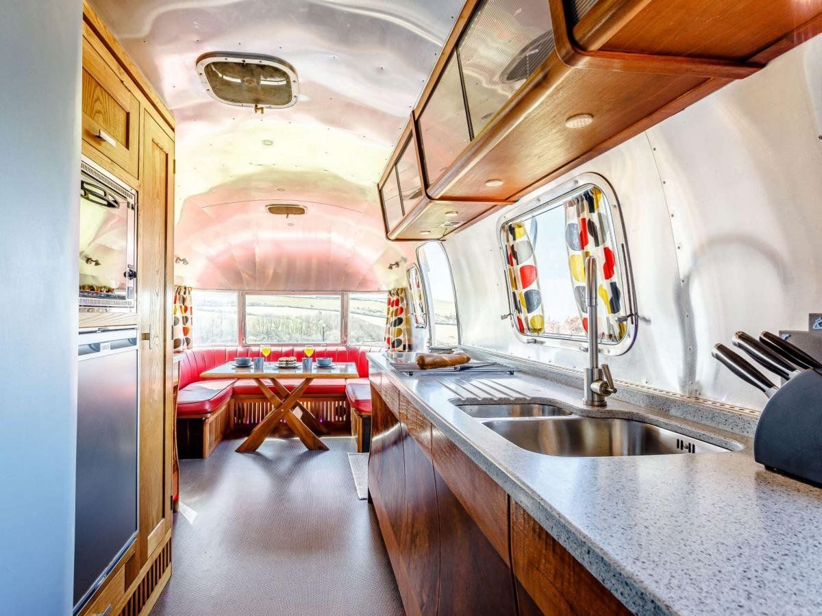 Set high above Woolacombe, this stylishly retrofitted Airstream Argosy offers a unique retreat blending iconic design with a tranquil coastal backdrop.