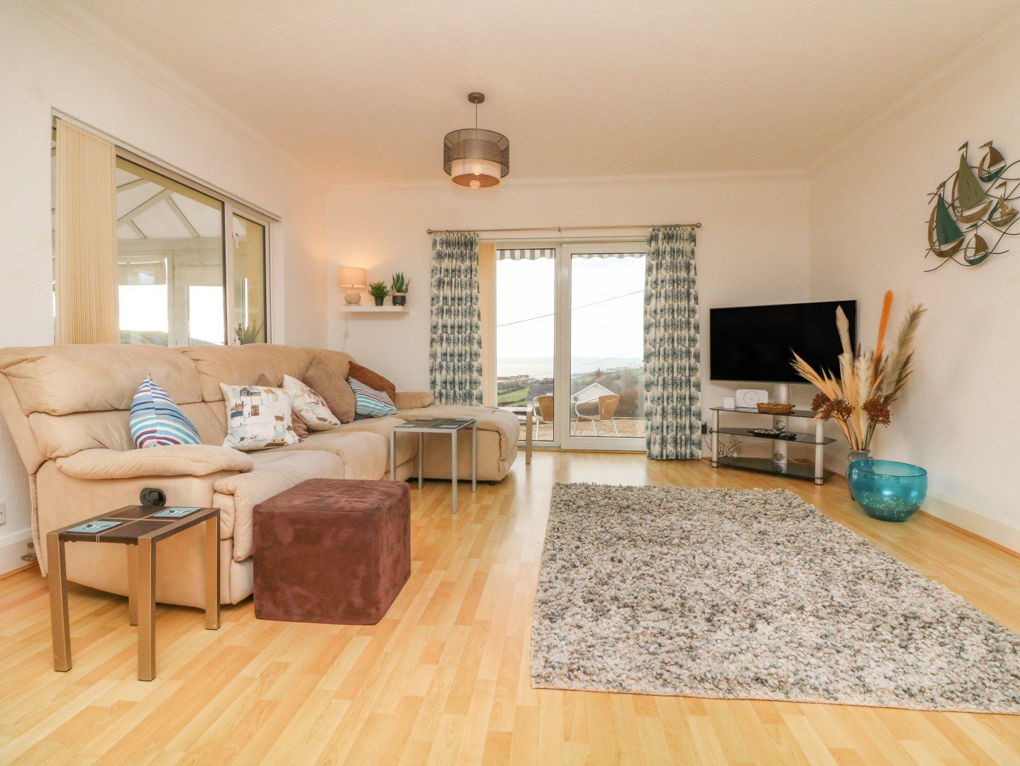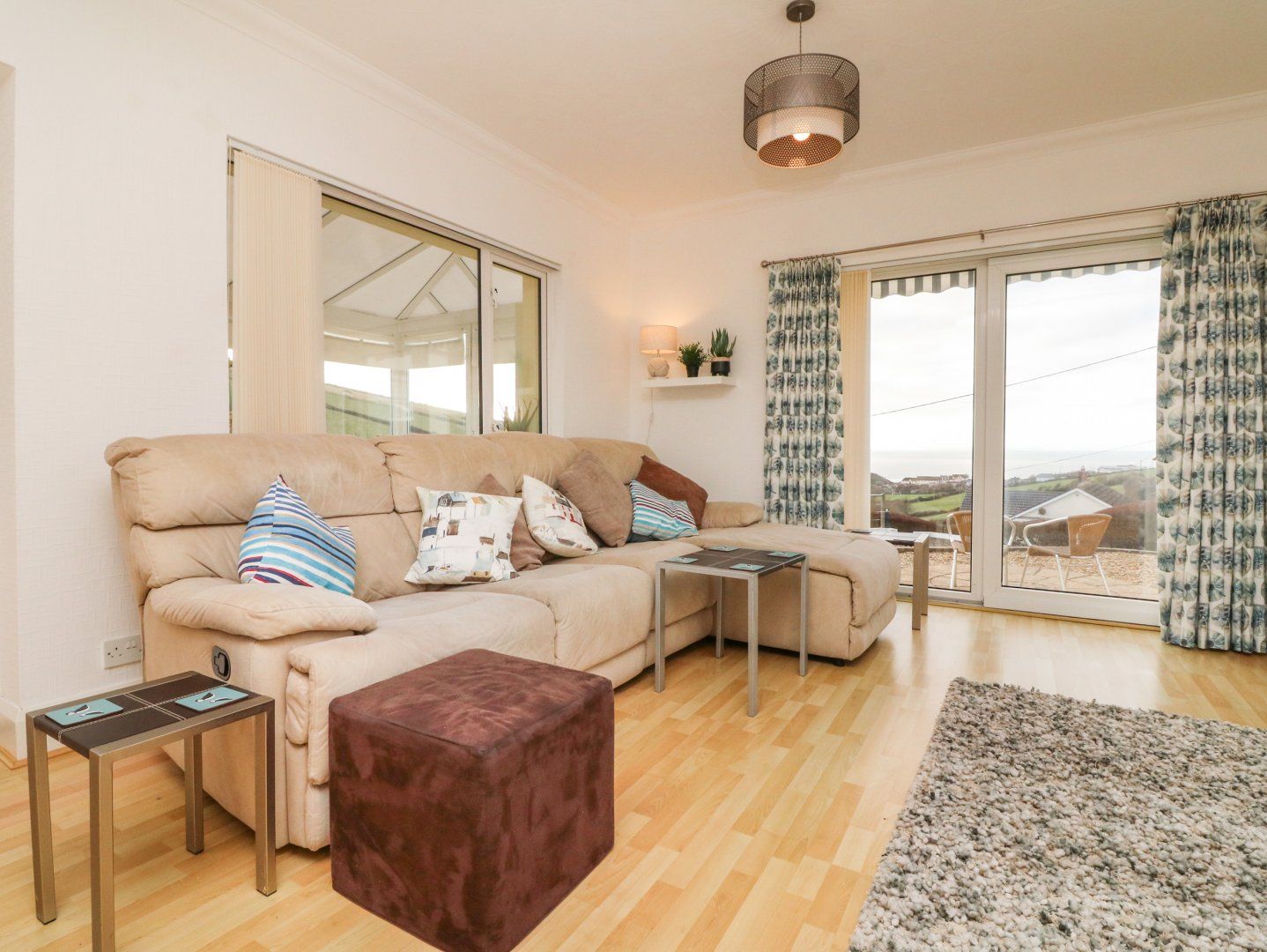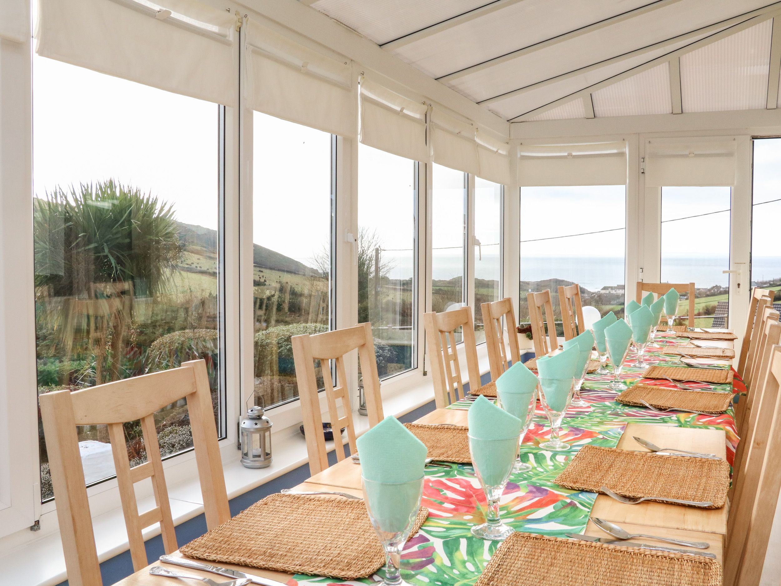 Holiday home The living areas in the property consist of a kitchen with an . electric oven and hob, grill, microwave, x2 fridge/freezer, washing machine and tumble dryer, a dining room with seating for 14 guests and a sitting room with TV. The bedrooms consist of a ground-floor king-size with TV and en-suite shower, a king-size, a ground-floor double with TV and en-suite shower, two ground-floor twins with Tv and en-suite showers, along with a games room. In the external building there is a super-king-size with TV and en-suite shower and a twin bedroom with en-suite shower and TV. Outside, there is a large garden with ample furniture and storage, along with off-road parking for 6 cars. WiFi, fuel, power, bed linen and towels are all included in the price. Two well-behaved pets are welcome and a highchair and travel cot are available. Sorry, no smoking allowed. Please do not climb the steps in the garden or allow pets in the bedrooms. Whisk your loved ones to Surf View for a seaside escape. Note: Guests can ask for a pass for the close-by holiday park to use on-site facilities. The walk from Surf View into Woolacombe is rugged in places and may be difficult for those with limited mobility. Please note: bookings must fall between a Sunday and Sunday in June, July and August