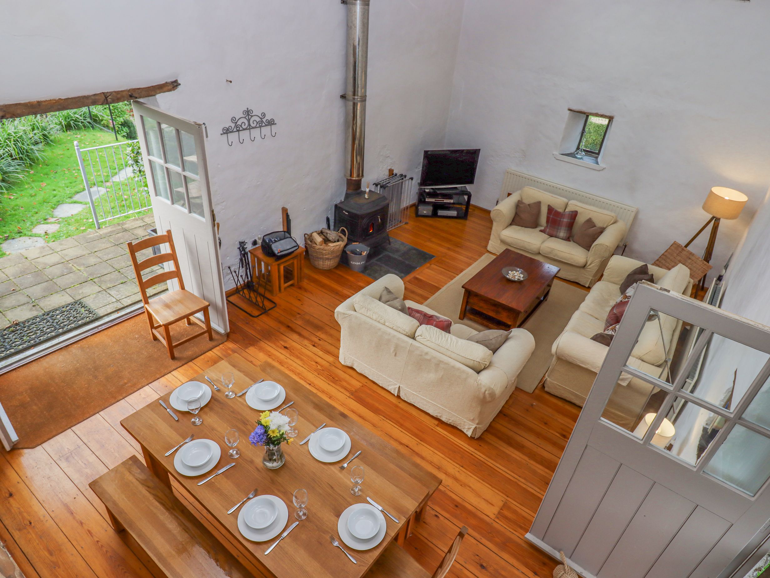 Holiday home The Barn at Yeoland House, a three-storey abode, consists of an open-plan living space including a kitchen with an electric oven, induction hob, microwave, firdge/freezer, dishwasher, coffee maker, a dining area, a sitting area with Smart TV and woodburning stove, and a lower-ground-floor utility with washing machine and tumble dryer. The bedrooms consist of a mezzanine single with games, a lower-ground-floor king-size (zip/link), and a lower-ground-floor king-size with TV, serviced by a lower-ground-floor bathroom and lower-ground-floor shower room. Outside, there is a non-enclosed patio with furniture and off-road parking for two cars. One well-behaved dog welcome, but sorry, no smoking. WiFi, fuel, power, starter pack for woodburning stove, bed linen and towels inc. in rent. Shop 1.7 miles, pub 1.5 miles, river 1 mile. The Barn at Yeoland House is a perfect base for a countryside escape. Note: Steps up to property. Note: No carpet on stairs. Note: 30 GBP dog charge. Unsuitable for children