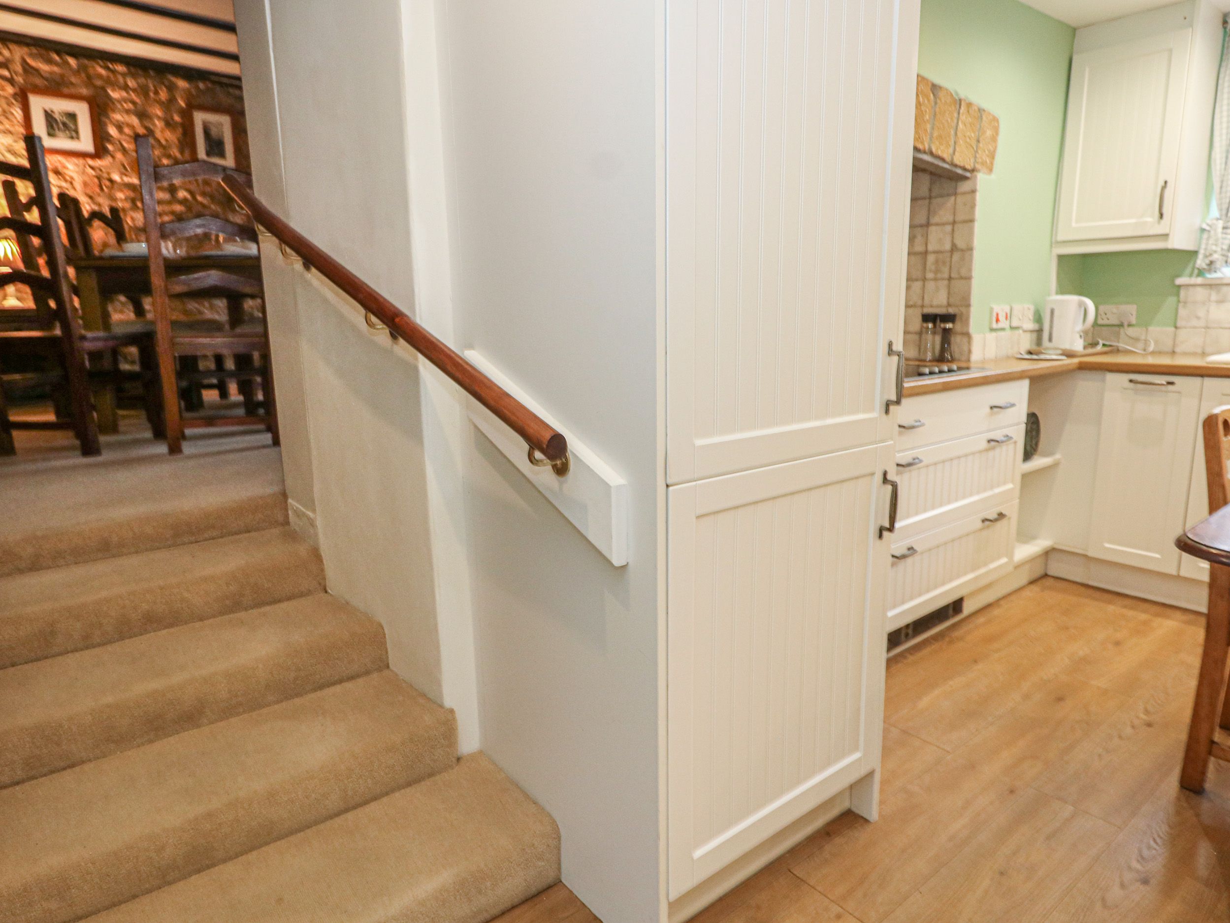 Amenities Central heating. Electric oven and hob, microwave, washing machine and tumble dryer, kettle and toaster. TV, Wi-Fi. Hi Fi including CD player DAB radio Bluetooth Fuel and power inc. in rent. Bed linen and towels inc. in rent. Off-road parking for 1 car only. Enclosed garden with gravelled area. One well-behaved dog welcome. Sorry, no smoking. Shop 0.1 miles, pub 0.1 miles. Note: There are steps down to the kitchen/diner, please take care. Note: There's a step up to the garden. Note: Washing machine and tumble dryer are located in the cloakroom