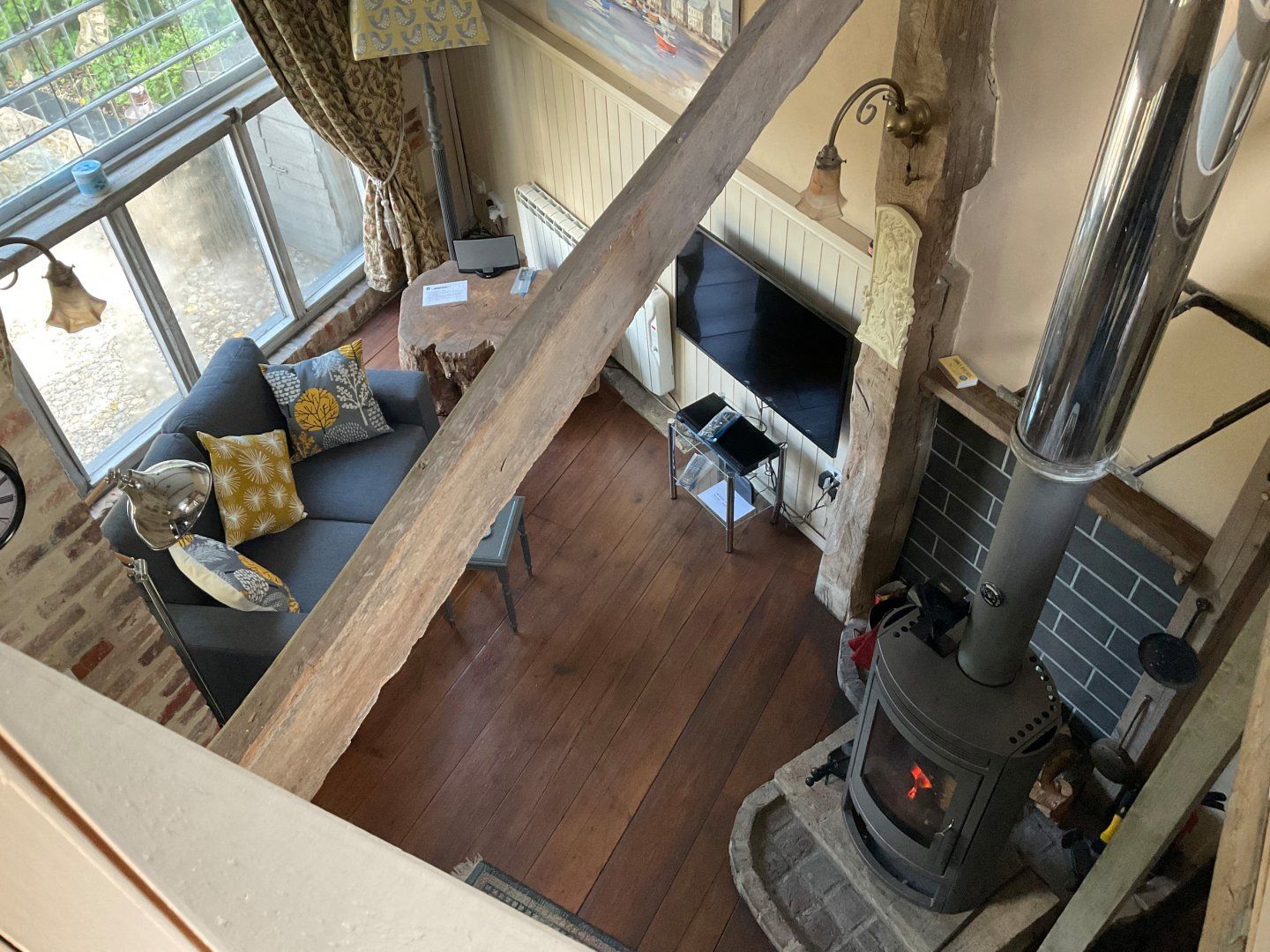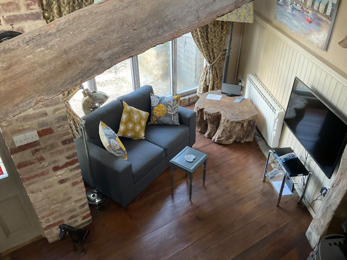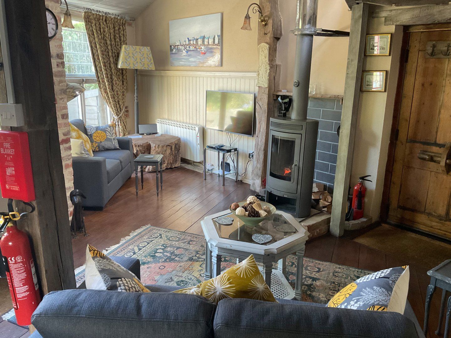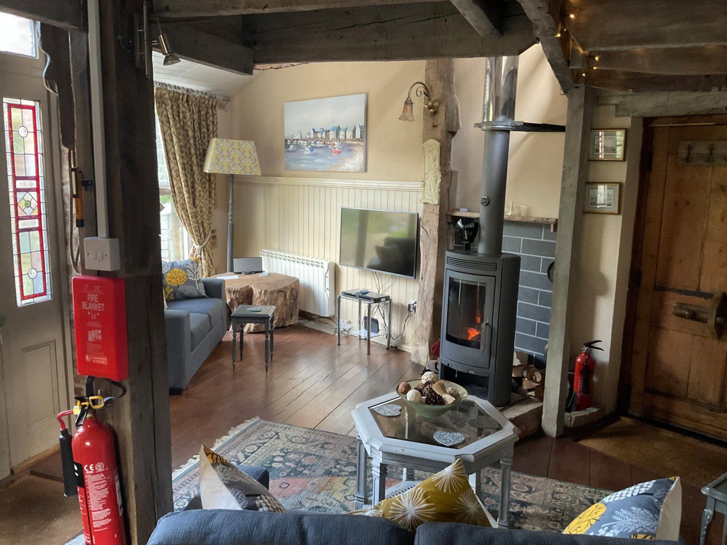 Amenities Electric heating. Electric oven and grill, gas hob, microwave, fridge/freezer, washing machine, dishwasher. Smart TV, Blu-Ray/DVD player, Cd player, WiFi. Fuel and power inc. in rent. Bed linen and towels inc. in rent. Off-road parking for 1 car. Courtyard garden with garden area, barbecue and patio furniture. Two well-behaved dogs welcome. Sorry, no smoking. Shop 0.3 miles, pub 0.2 miles. Note: Logs are not supplied but can be purchased from the owner for a small charge. Note: There is a very steep staircase leading up to the mezzanine bedroom which has restricted headroom, so please bear this in mind when booking. Note: This property is not suitable for children and there is no cot space