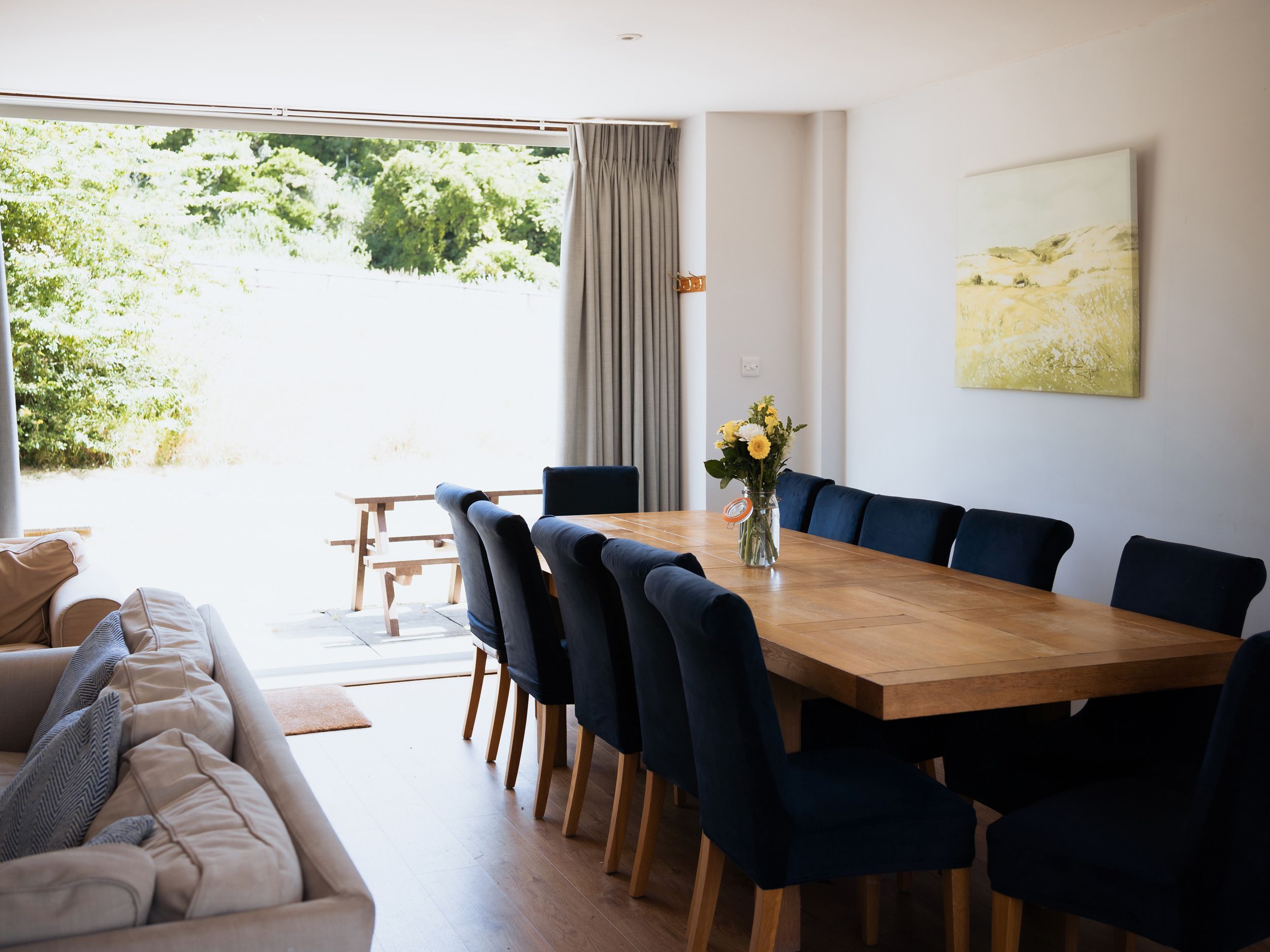 Newfield Farm Cottages can be found resting on the outskirts of Blandford Forum in Dorset. The three combined cottages host ten bedrooms including a ground-floor super king-size double (zip/link can be twin on request) with en-suite shower room, a ground-floor king-size double with en-suite shower room, three ground-floor twin (zip/link, can be king-size double on request), a ground-floor adult bunks room, two super king-size double (zip/link, can be twin on request) with single day bed, a single, an adult bunks room and a children's room with cot, suitable to sleep up to twenty-two people. The cottage is also served by two bathrooms, a ground-floor WC. and two ground-floor family bathrooms. Within the dwelling there is also a kitchen/diner, a living/dining area, a sitting room with woodburning stove, a games room and two open-plan living spaces with kitchen, dining area and sitting area. Outside is a large, shared lawned area and patio with seating and barbecues. The property also benefits from ample off-road parking. Newfield Farm Cottages is a marvellous retreat for a large gathering with loved ones in the heart of Dorset. Note: This property only offers a Friday or Monday check-in.