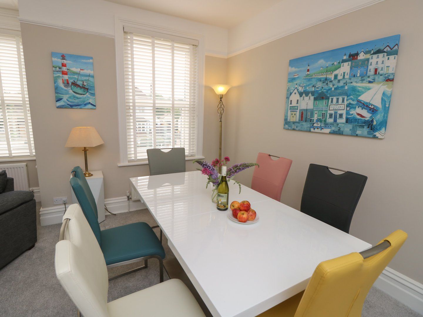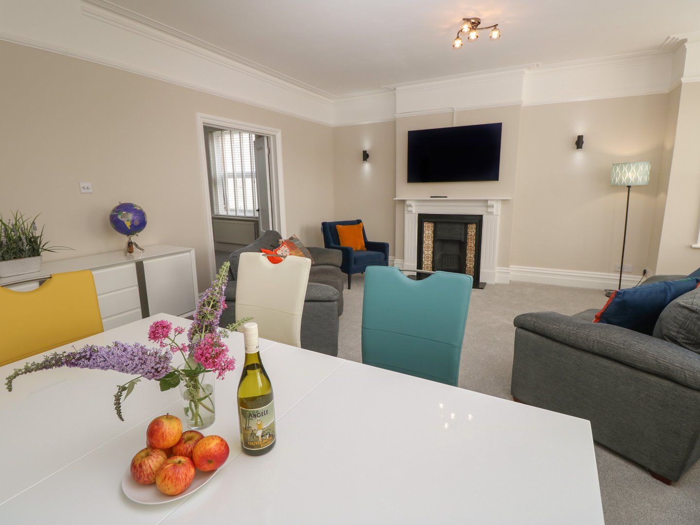 Accomodation Details Duplex apartment set over the first and second floor. Three bedrooms: 1 x first-floor king-size with TV, 1 x second-floor double with TV, 1 x second-floor twin with TV. First-floor shower room with walk-in shower, basin, and heated. Second-floor bathroom with bath, hand-held shower, basin and WC. First-floor cloakroom with basin and WC. First-floor kitchen/diner with TV. First-floor living/dining room