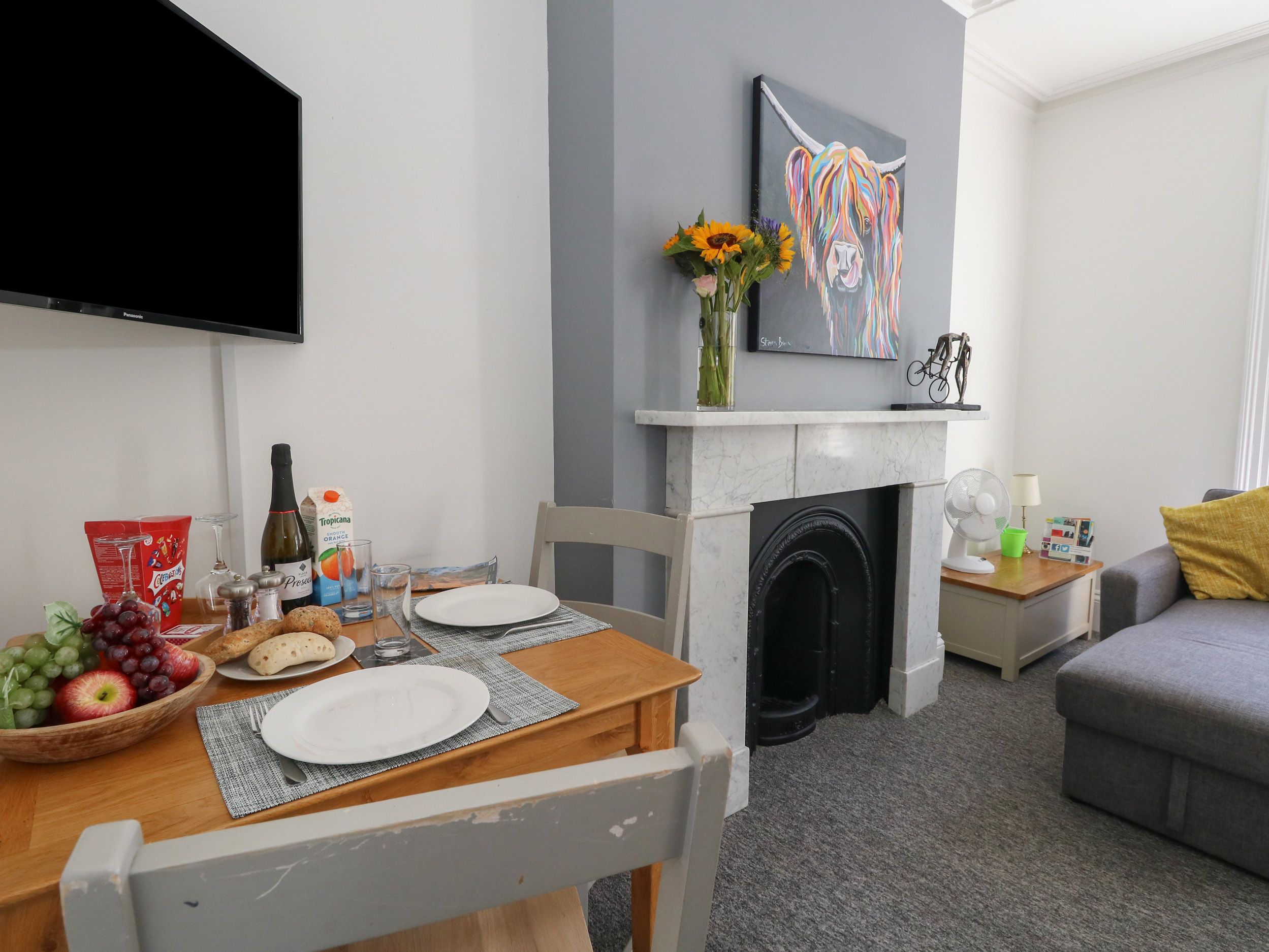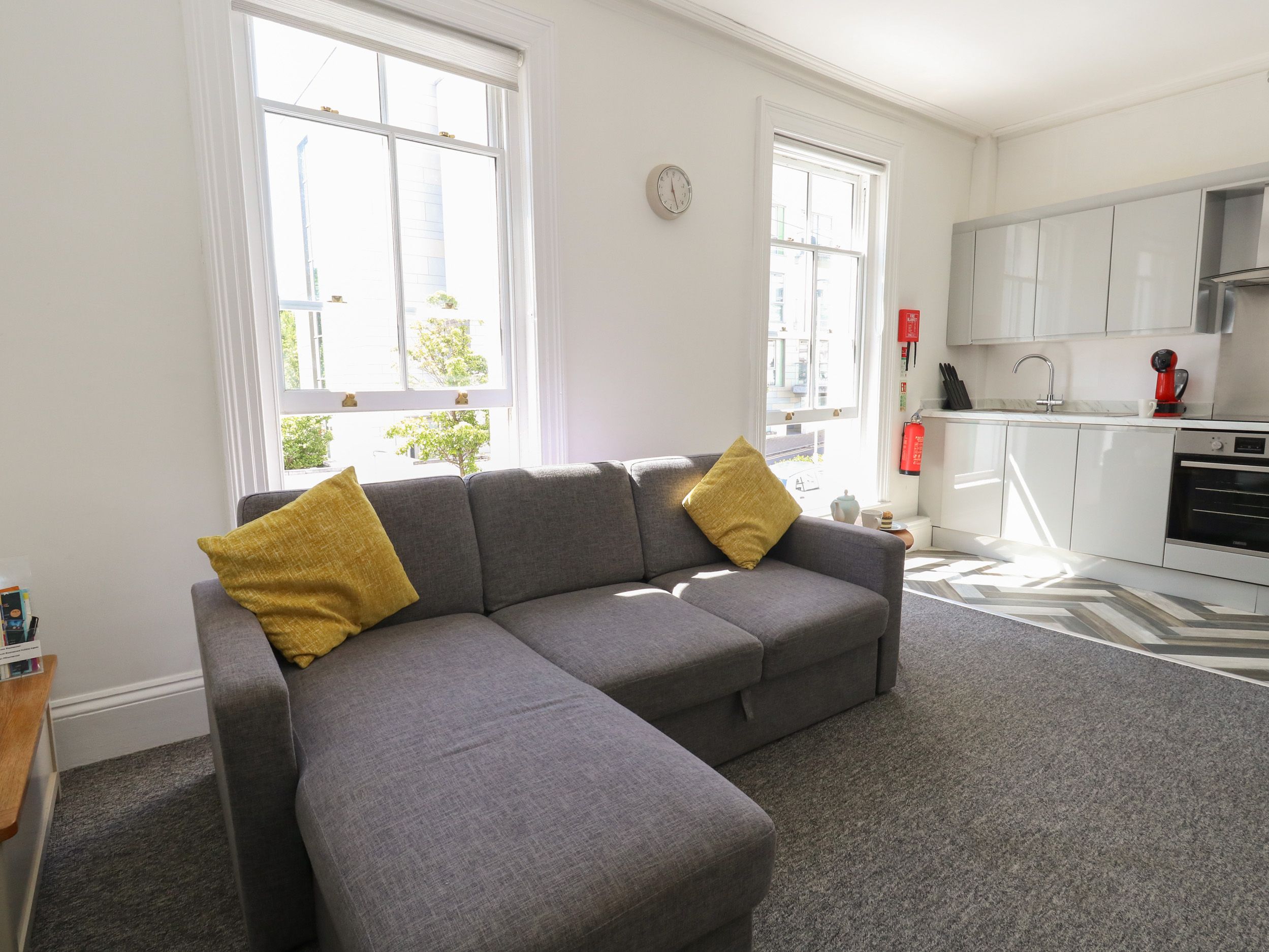 Accomodation Details Ground-floor apartment. One double with TV and en-suite walk-in shower, basin, heated towel rail, and and WC. Open-plan living space with kitchen, dining area and sitting area