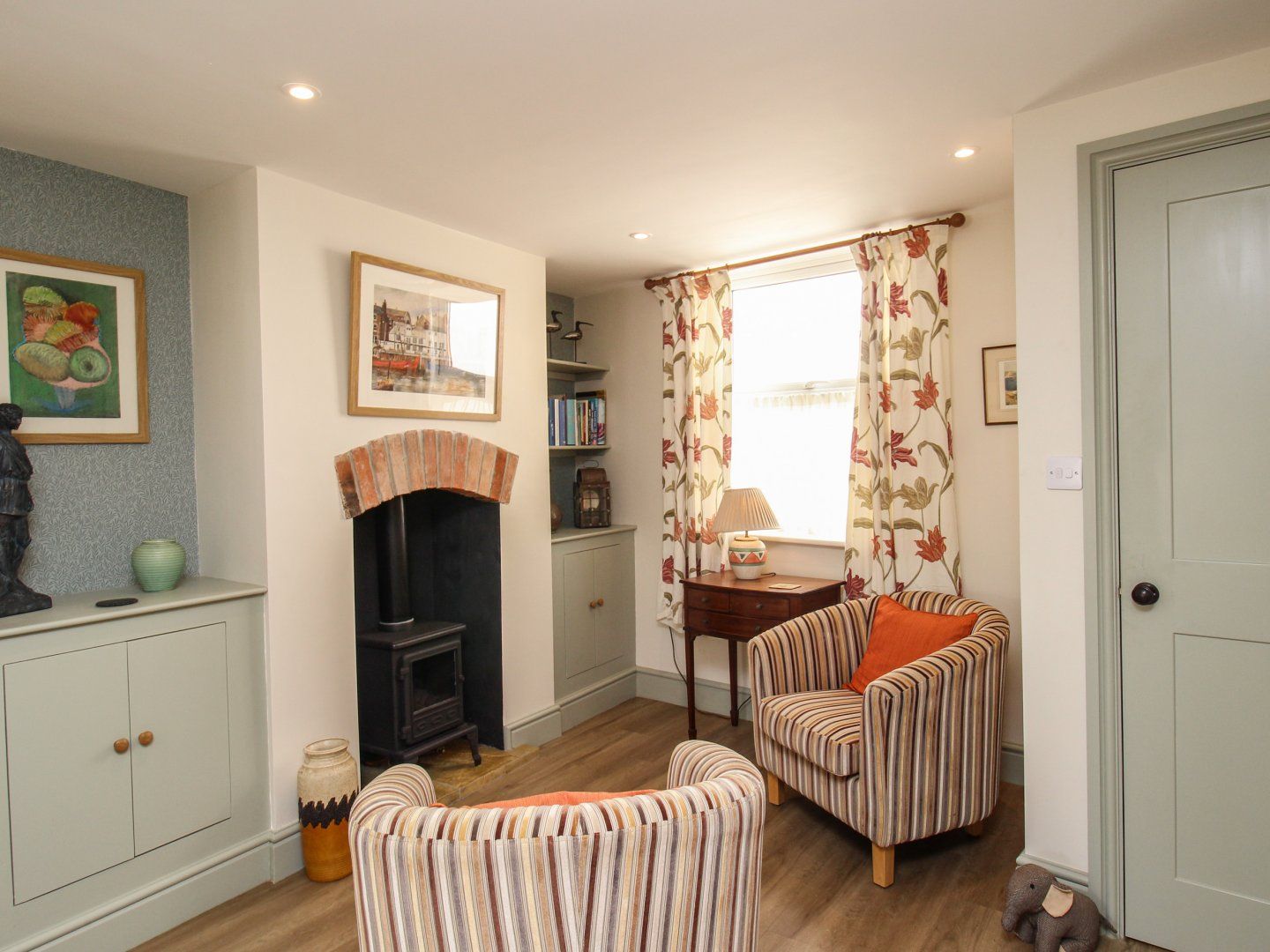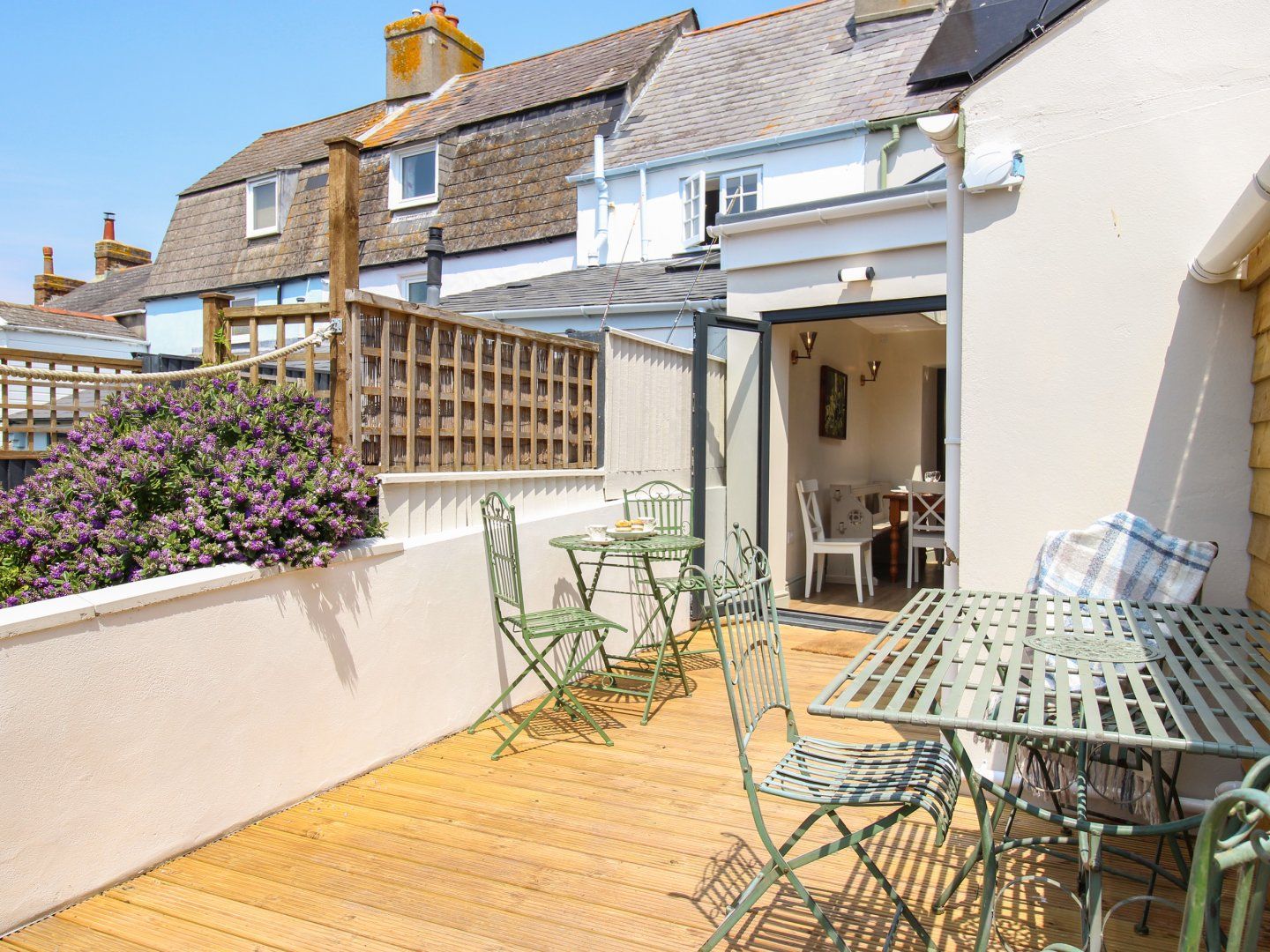 Amenities Underfloor heating. Oven, hob, microwave, fridge, freezer, washing machine. Smart TV, TV, WiFi. Fuel and power inc. in rent. Bed linen and towels inc. in rent. Parking available at local pay and display car park - 5 min walk. Rear patio with furniture. Sorry, no pets. Sorry, no smoking. Shop 0.2 miles, pub 0.1 miles, beach 0.4 miles. Note: The stairs are steep; please take care. Note: The twin bedroom is accessed via the single bedroom. Note: Limited headroom on the second floor. Note: Check-in from 4pm, check-out by 10am