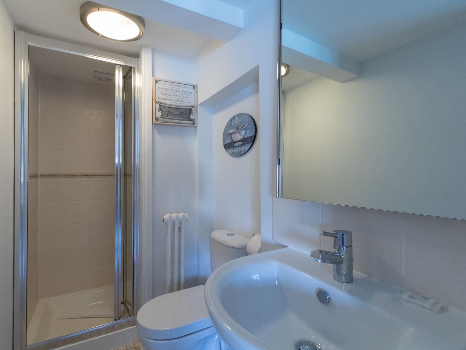 Over three floors. Three bedrooms: 1 x double with en-suite walk-in shower, basin and WC, 1 x second-floor double with en-suite walk-in shower, basin and WC, 1 x second-floor twin. Ground-floor bathroom with free standing bath, walk-in shower, hand basin and WC. Kitchen. Living/dining room. First-floor sitting room