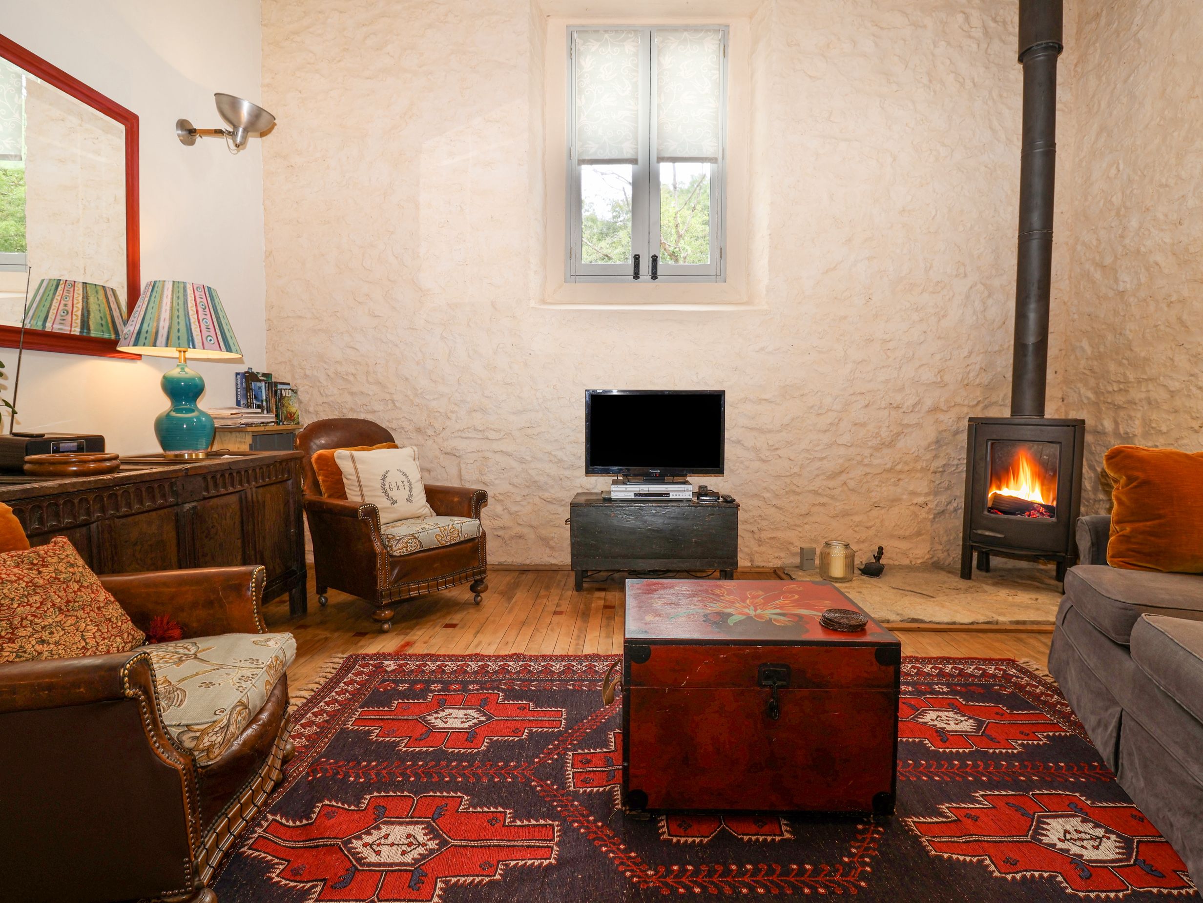 Accomodation Details One double bedroom with en-suite with freestanding bath, basin and WC. Wet room with shower, basin and WC. Open-plan living space with kitchen, dining area and sitting area with woodburning stove