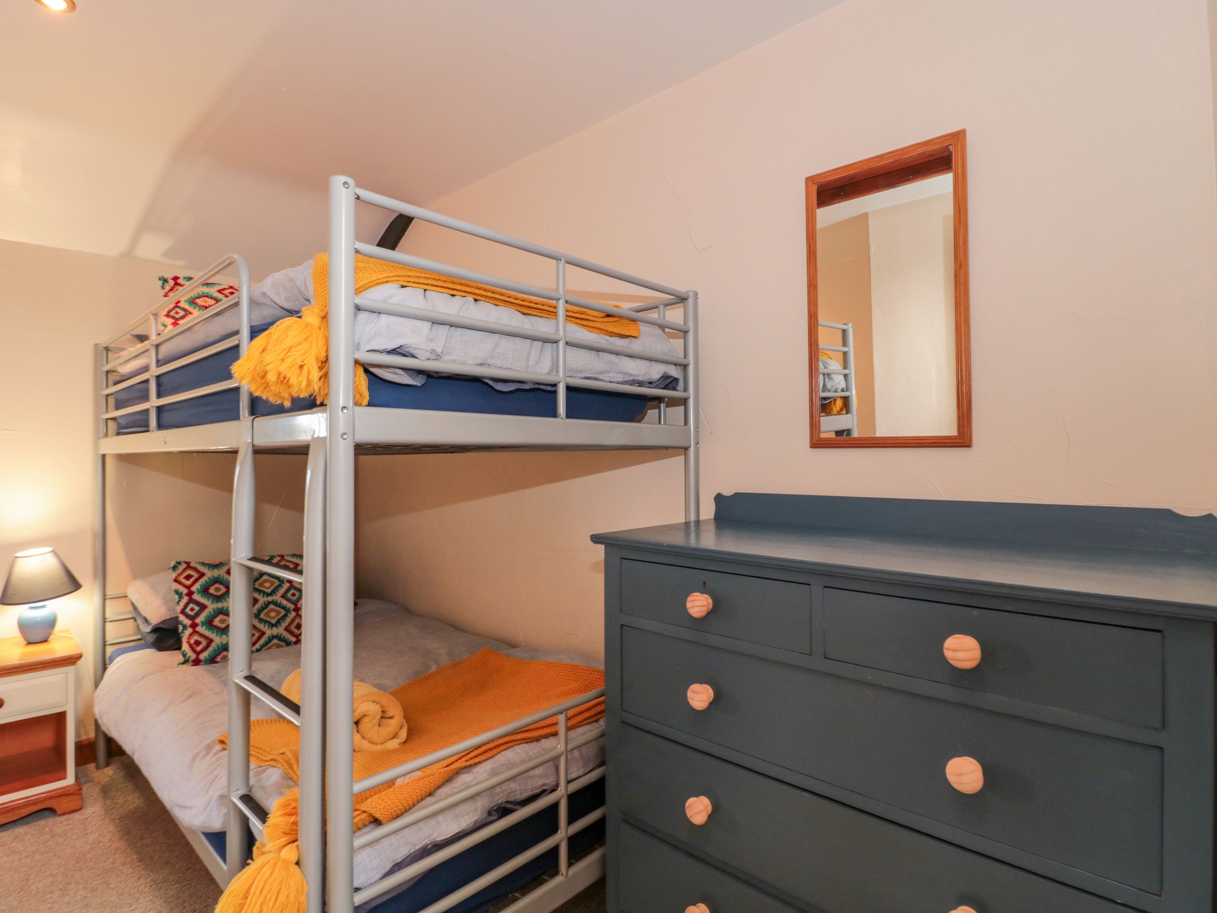 Accomodation Details Three bedrooms: 2 x double, 1 x bunk. Shower room with walk-in shower, basin and WC. Kitchen/diner. Sitting room