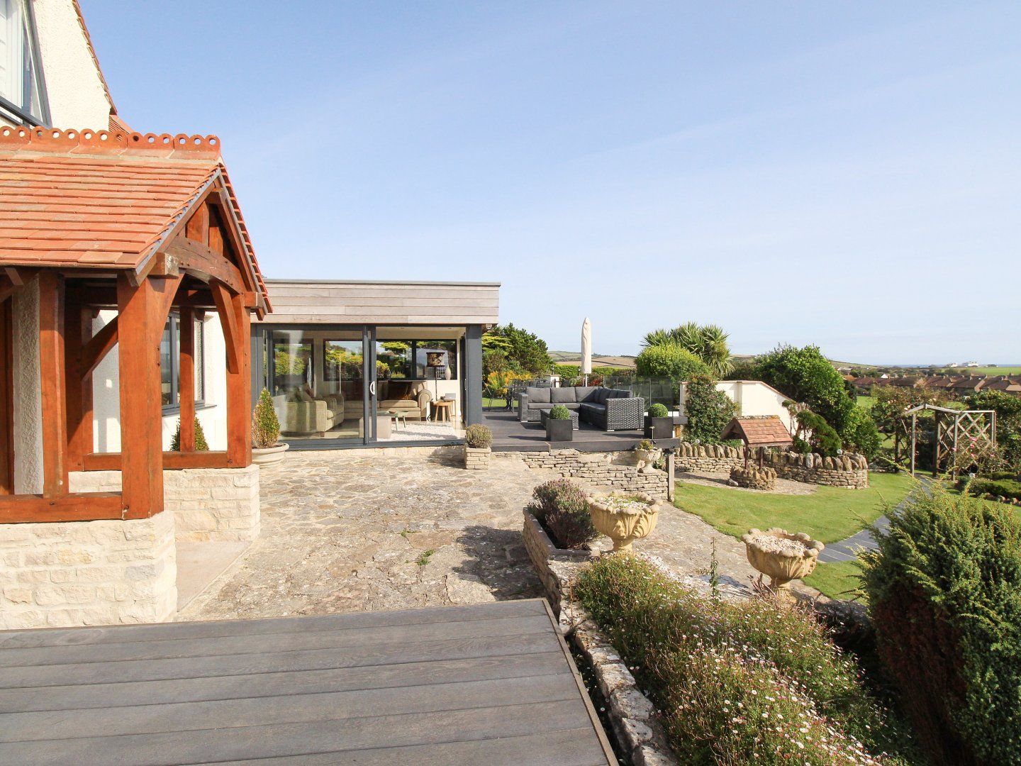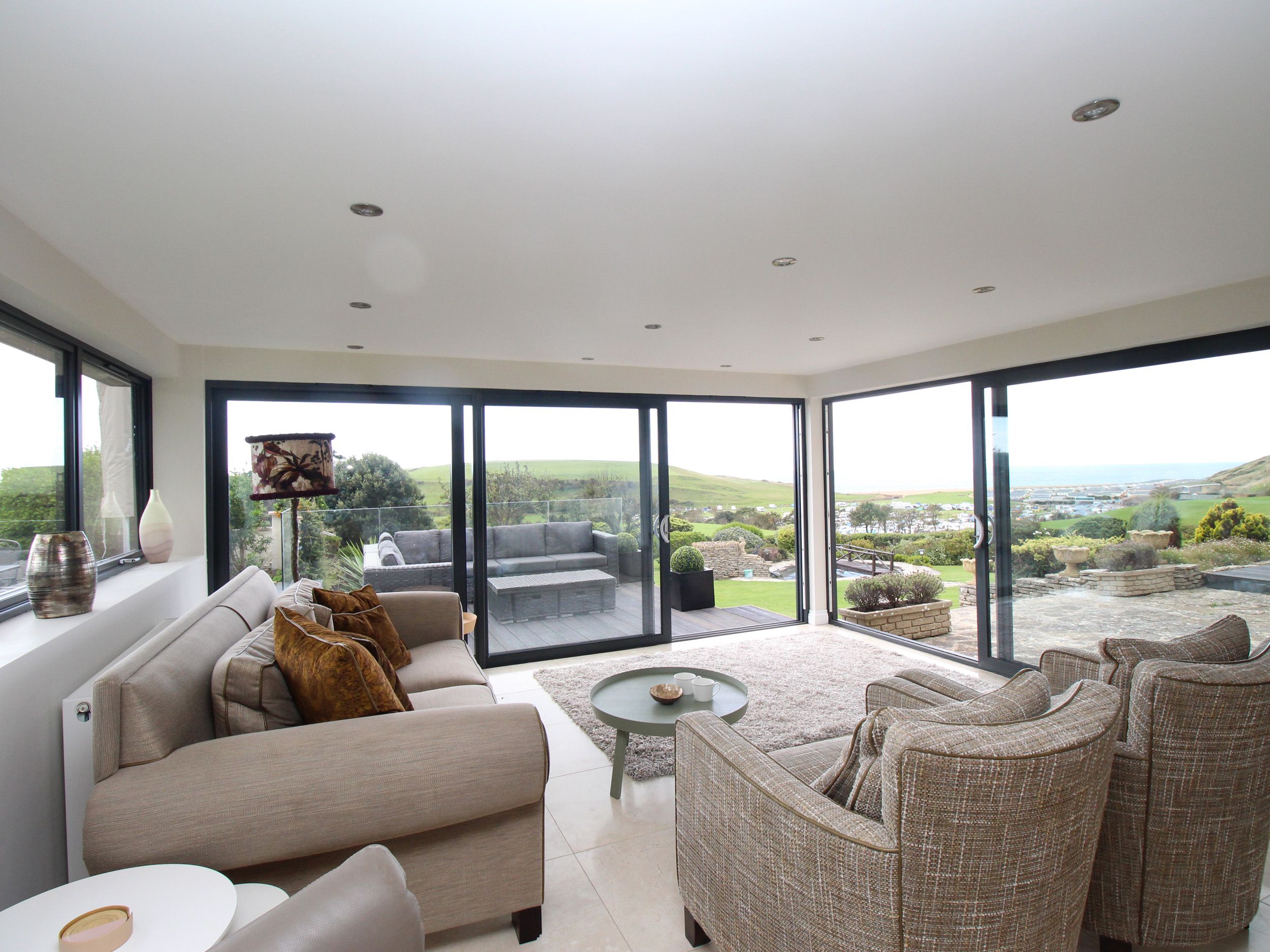 Holiday home Burton View near the coastal village of Burton Bradstock in Dorset benefits from a handmade kitchen and open plan living with panoramic patio doors and views of Dorset coastline from every window. With 1 x king-size, 1 x double and 1 x single, plus a shower room and a bathroom. Benefitting from off road parking for three cars. Outside is a decked area and extensive garden with views over countryside and out to sea. Burton View in Burton Bradstock, is the most beautiful location to spend quality time with your family in a stunning location.