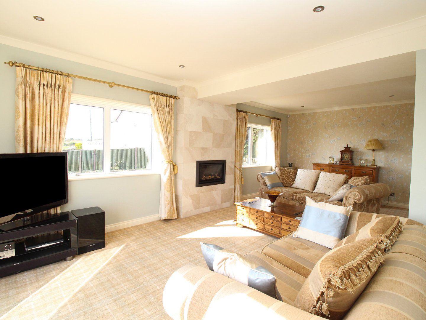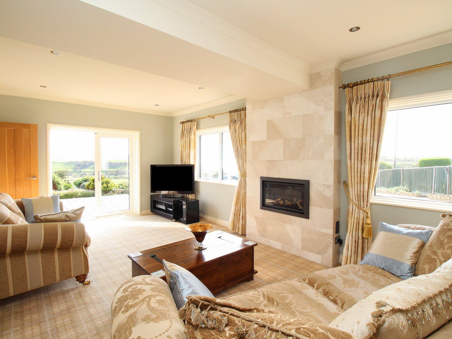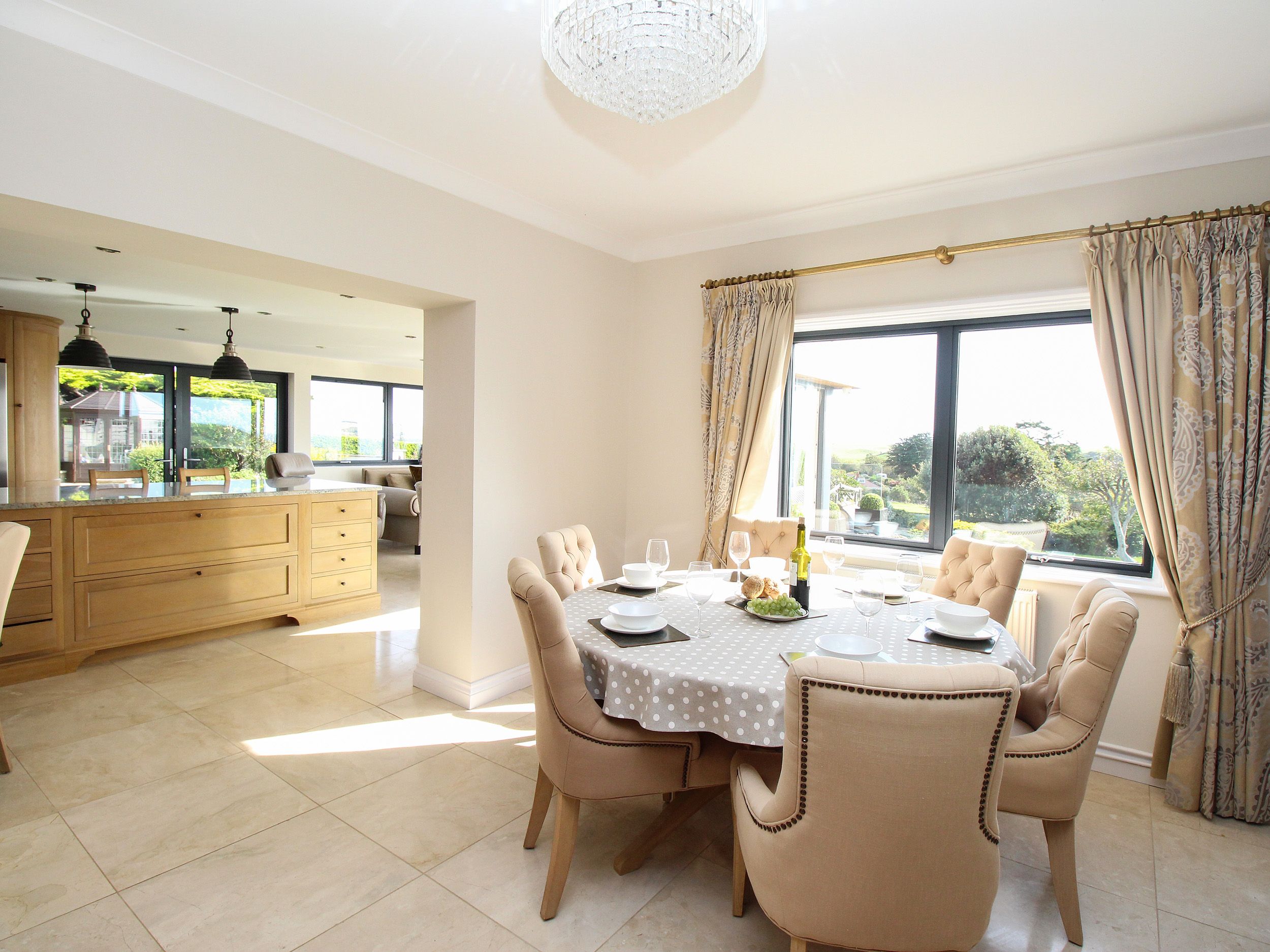 Accomodation Details Open plan kitchen with lounge area and large sliding patio doors to decked area and garden, dining area. Second lounge. Shower room with shower, hand basin and WC. Stairs to first floor: 1x kingsize double bed. 1 x double bed. 1 x double bed. TV's in all bedrooms. Bathroom with bath, shower cubicle, hand basin and WC.
