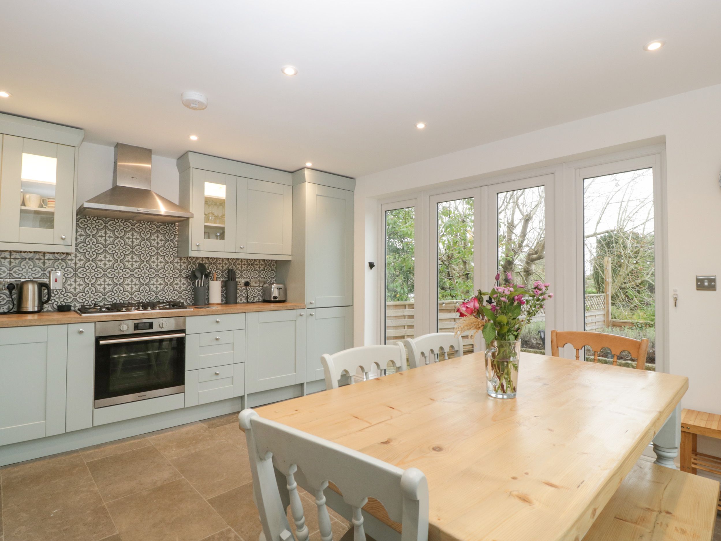 Amenities central heating. Electric oven, gas hob, microwave, fridge, freezer, washing machine and dishwasher. Smart TV and WiFi. Fuel, power and starter for woodburing stove inc. in rent. Bed linen and towels inc. in rent. Highchair and travel cot available on request. There is off-road parking for one small car in front of the garage and there is additional nearby roadside parking. Rear terraced garden with garden furniture, BBQ and chiminea. One dog welcome. Sorry, no smoking. Shop 1.7 miles, pub 0.1 miles and beach 2.1 miles. Note: The bunk beds are suitable for children under the age of 12; they are not suitable for adults. Note: There is a steep staircase in this property, please take care