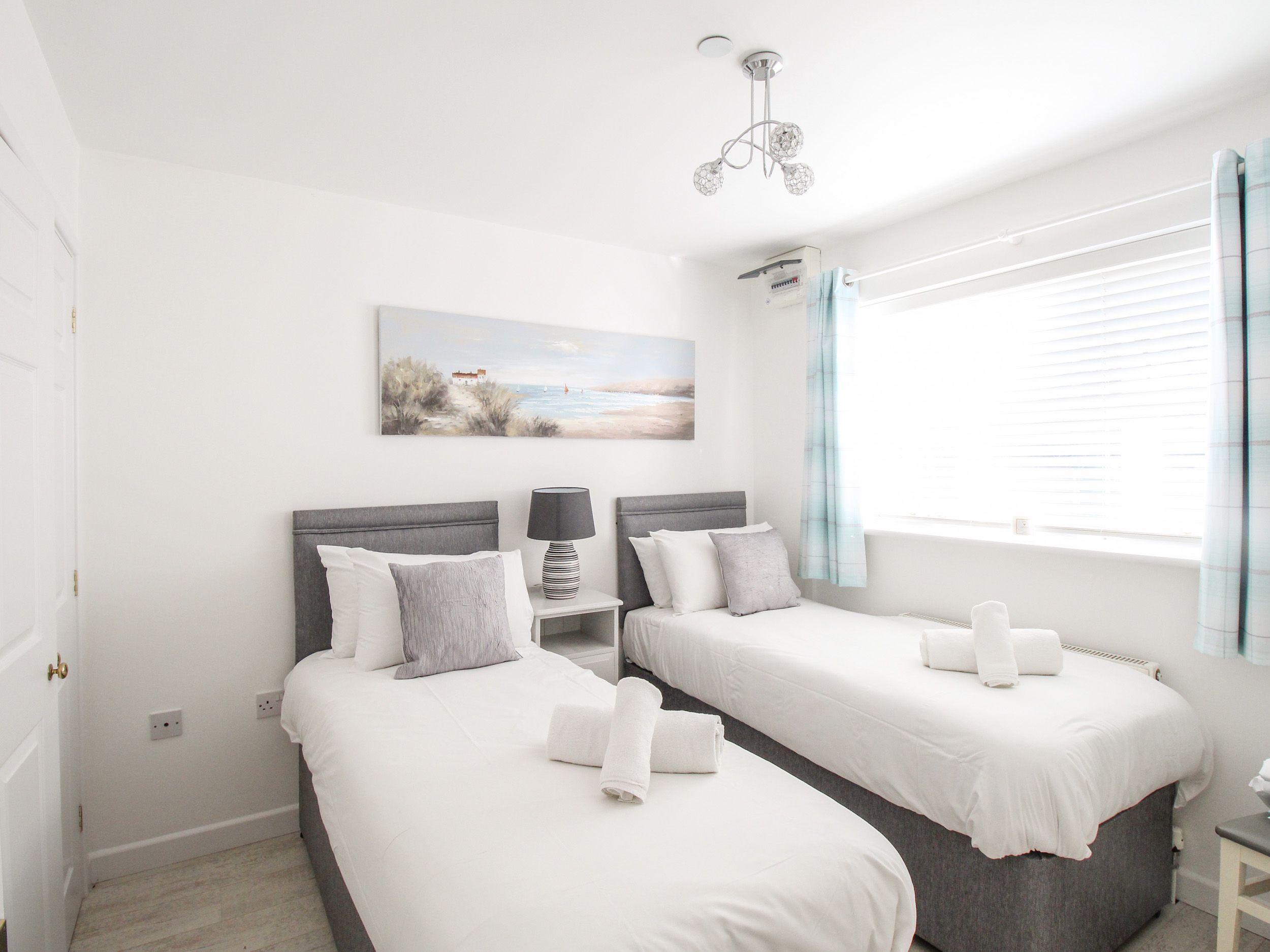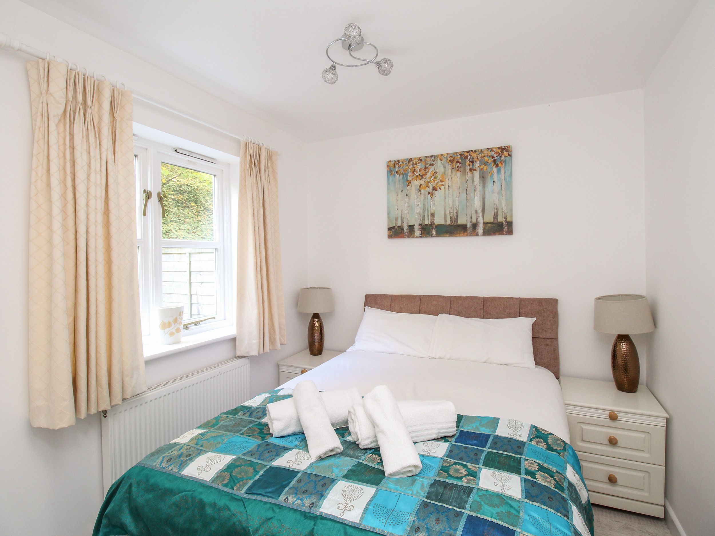Accomodation Details Set over three floors; 1 x double and 1 x twin on ground floor. Ground floor bathroom with walk in shower, basin and WC. Stairs to first floor; living/kitchen/dining area. Stairs to second floor; 1 x king size bed with ensuite with bath, shower over, basin and WC. Juliet balconies on 1st and 2nd floors. Enclosed courtyard garden.