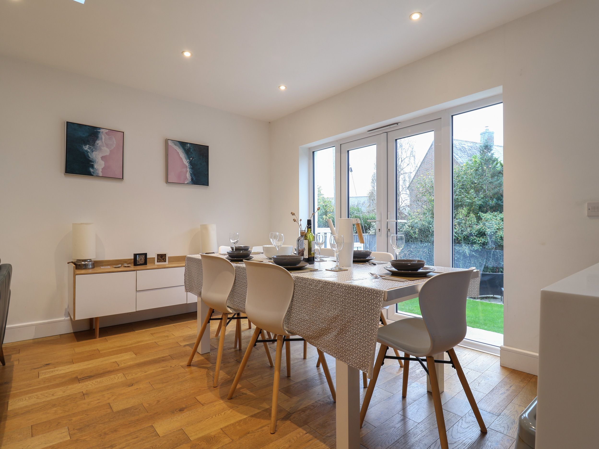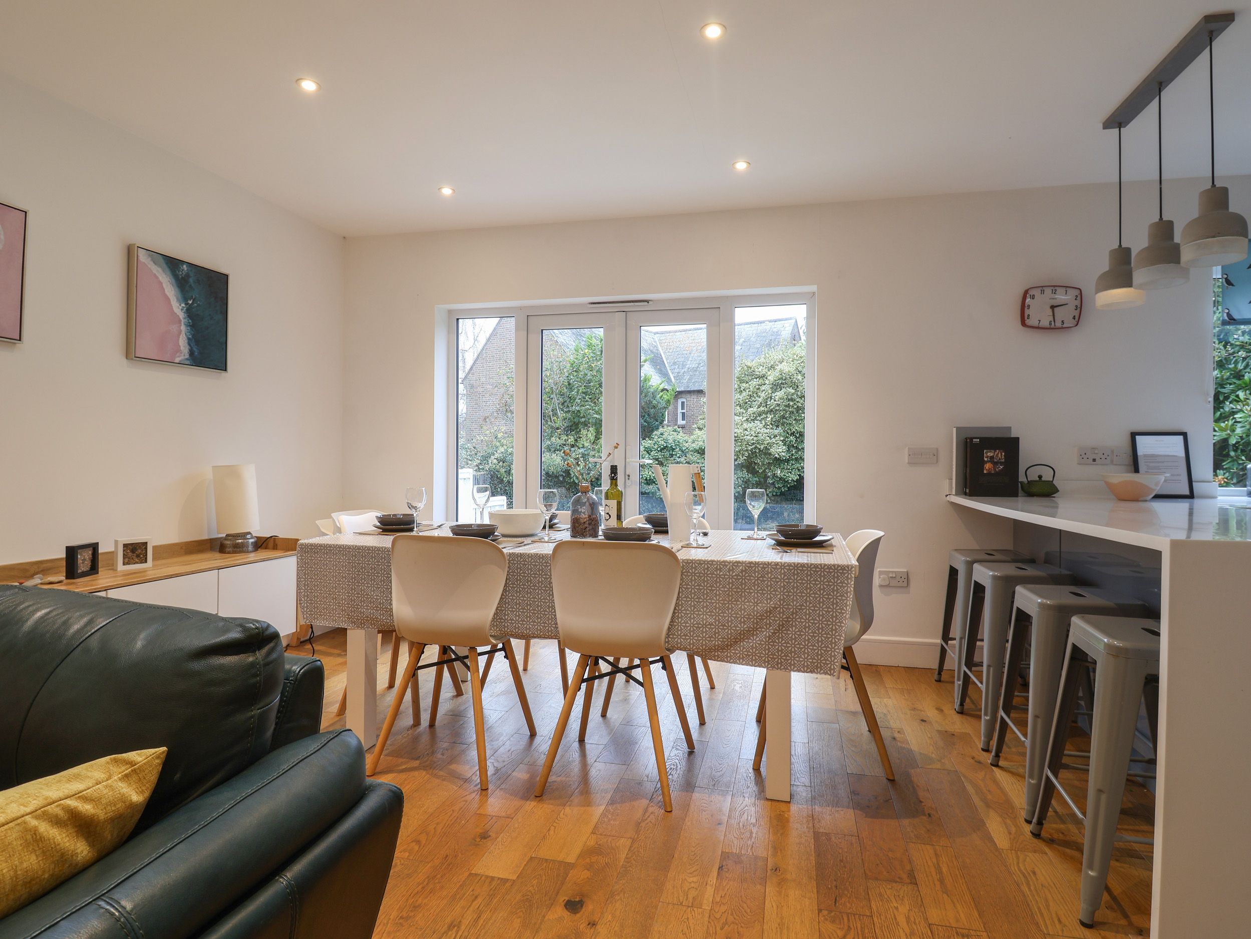 Amenities Gas central heating. Electric oven, induction hob, microwave, fridge/freezer, washing machine, dishwasher, Nescafe Dolce Gusto coffee maker (pods not supplied). 2 x Smart TV, DVD player, selection of books and games, WiFi. Fuel and power inc. in rent. Bed linen and towels inc. in rent. Highchair and travel cot available on request. Off-road parking for 3 cars. Enclosed rear garden with lawn, patio, trampoline and furniture. Sorry, no pets and no smoking. Shop 0.1 miles, pub 0.1 miles, beach 0.3 miles. Note: Check-in from 4pm, check-out by 10am. Note: please be careful on the steps leading down into the garden