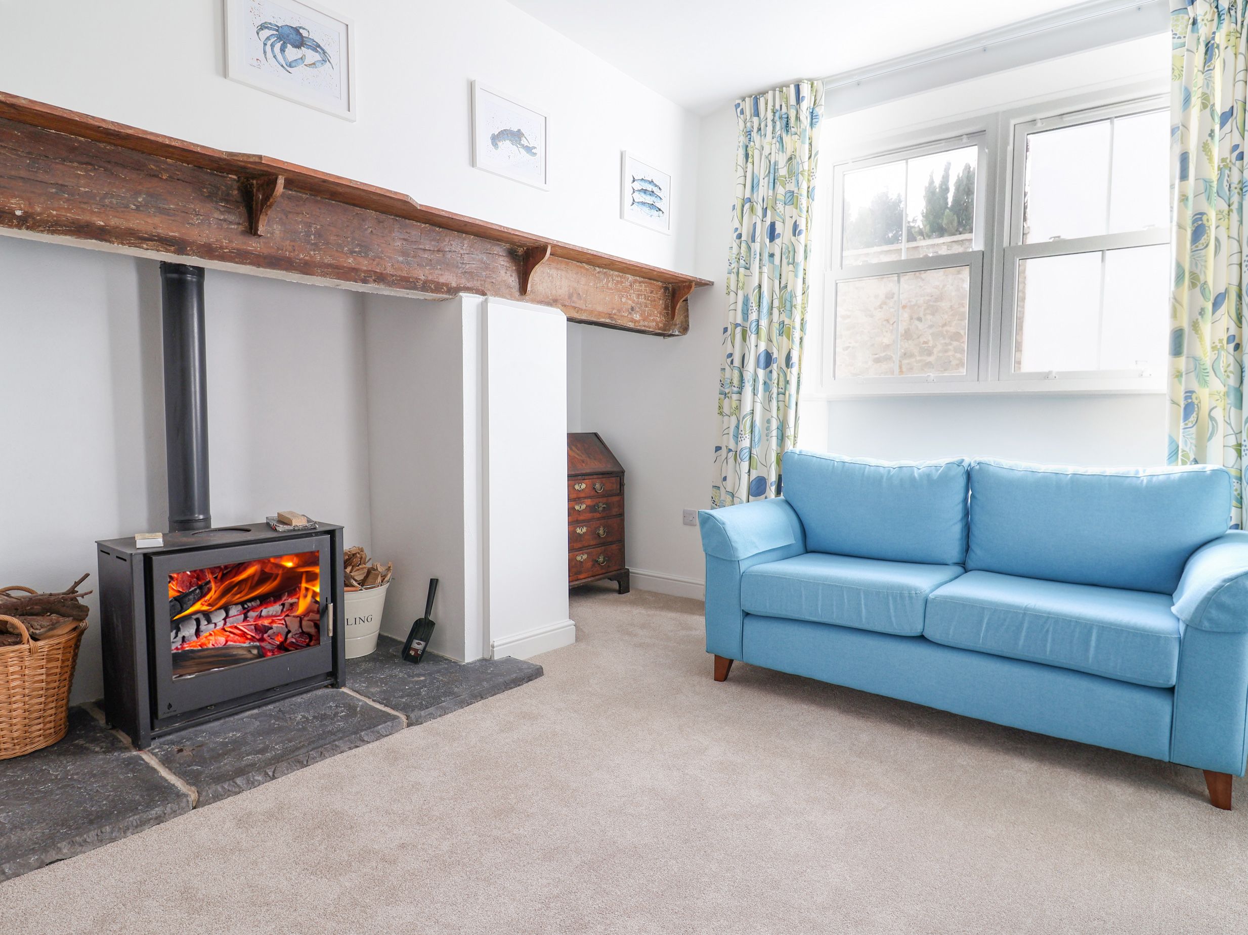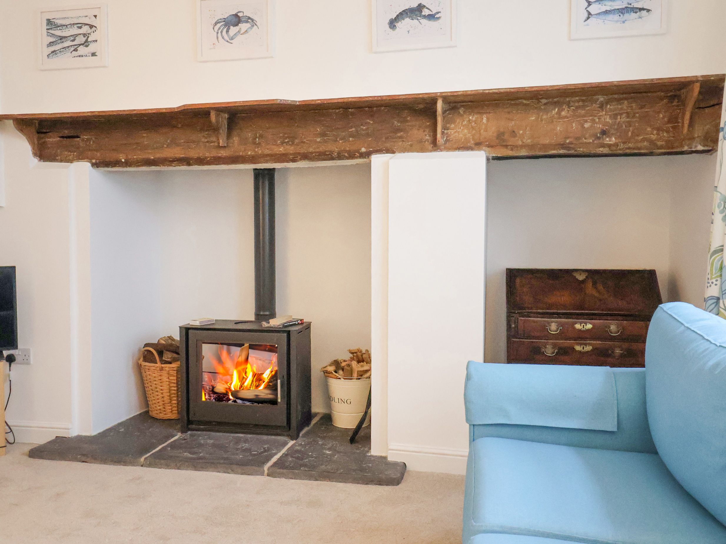 Gas central heating. Electric oven and induction hob, microwave, fridge/freezer, washing machine, dishwasher, Nespresso coffee machine, hairdryer. TV and WiFi. Fuel, power and starter pack for woodburning stove inc. in rent. Bed linen and towels inc. in rent. Off-road parking for 2 cars. Enclosed rear garden with patio and furniture. Sorry, no pets and no smoking. Shop 0.1 miles, pub 0.1 miles and beach 0.5 miles. Note: Pods not supplied for coffee machine. Note: This property does not accept children under 5 years of age. Note: Check-in from 4pm, check-out by 10am