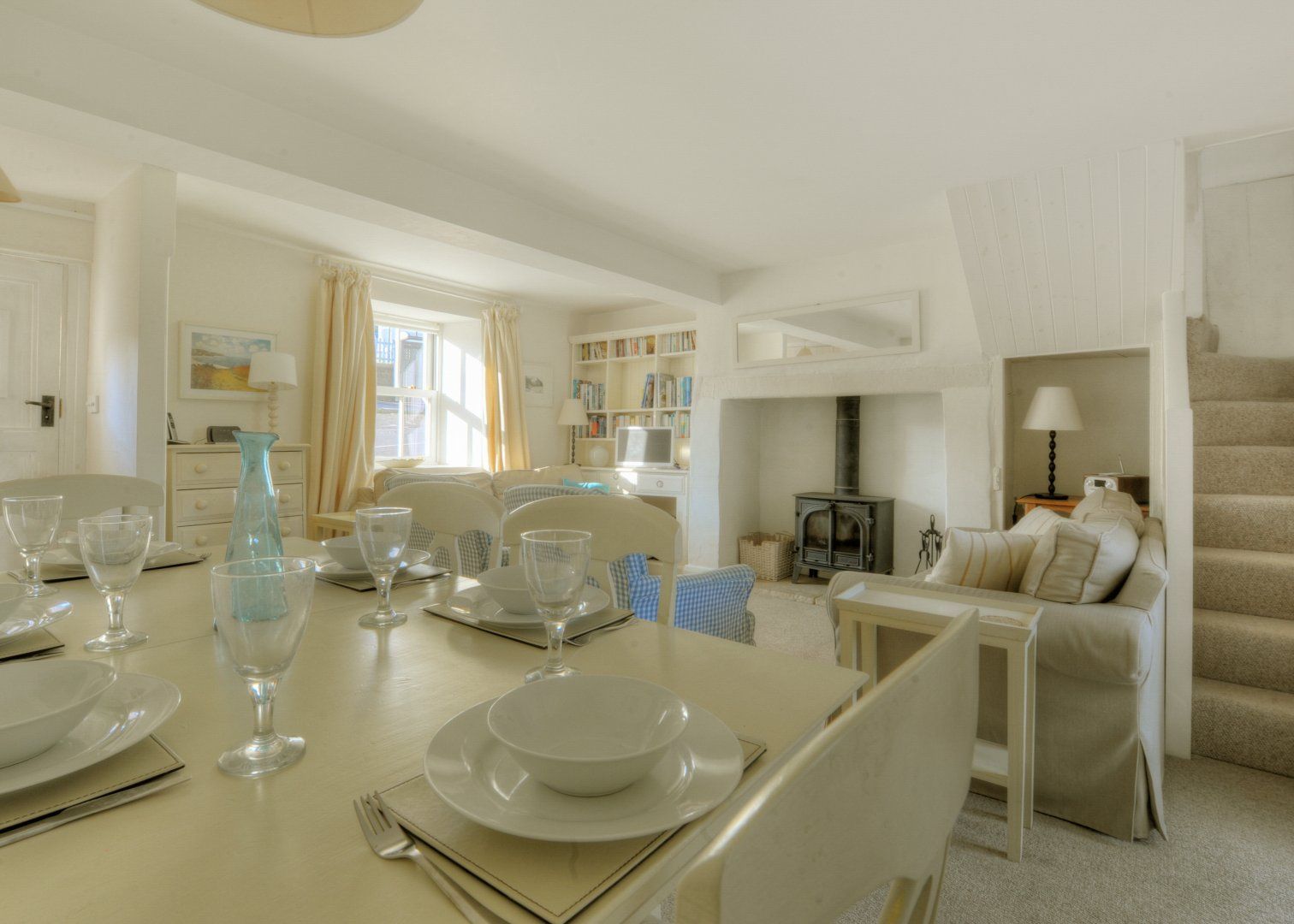 Accomodation Details Set over three storeys. Three bedrooms: 1 x king-size with en-suite WC and basin, 1 x double, 1 x second-floor twin. Note: The top bedroom enjoys superb views over the surrounding countryside although the steep, narrow staircase to this room may prove difficult for the elderly or infirm. Shower-room with shower, basin and WC. Ground-floor bathroom with bath, shower over, basin and WC. Open-plan living area with kitchen, dining area and sitting area.