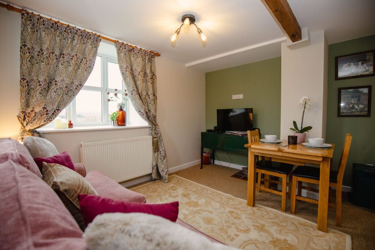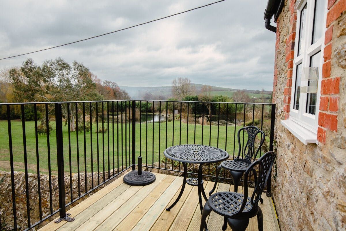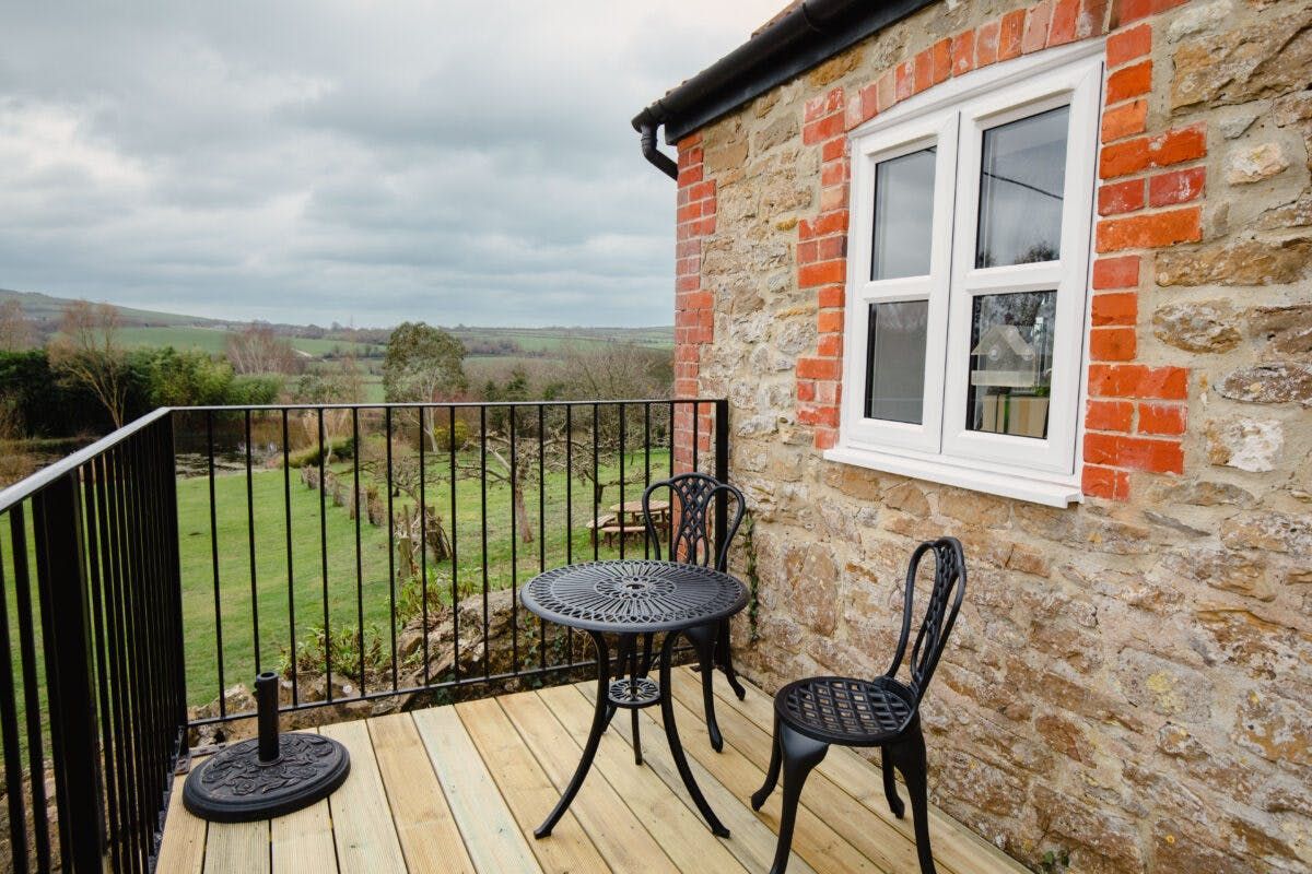 Here, you’ll find a characterful flint exterior with a traditional beamed interior alongside a host of comforting furnishings. The home has a dynamic open-plan living space that’s perfect for socialising and relaxing together. After preparing a delicious dinner with the produce you picked up from the local farm shop, settle in at the wooden dining table, where you can savour your culinary achievements. If the weather is on your side, pop a bottle of sparkling and sip it from your balcony overlooking the landscape, or cosy up in the living room to enjoy a film – perfect for colder nights.