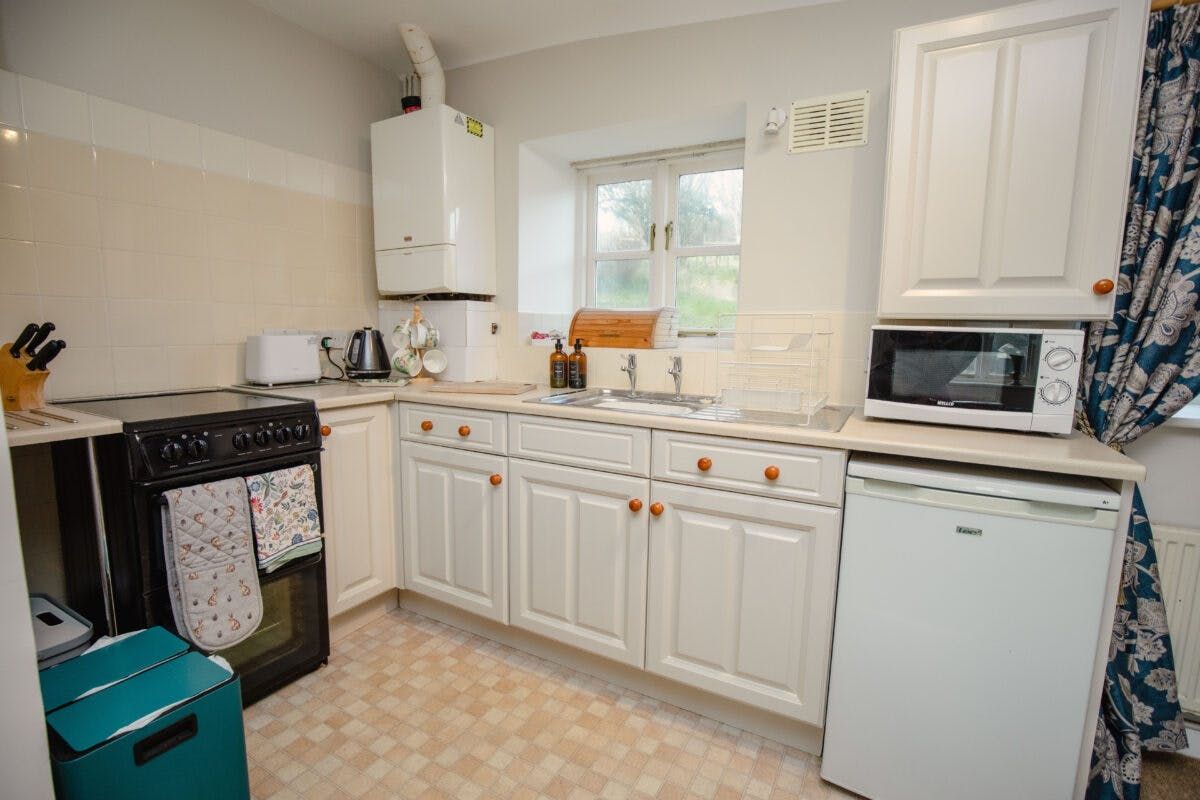 Step inside this former farm building, and you'll be greeted by an elegantly simple interior, with a cosy seating area set around a coal-effect electric fireplace, a dining area behind, and the kitchen disappearing around the corner. Climb a single step up to the bedroom and gaze across Bride Valley to the coast.