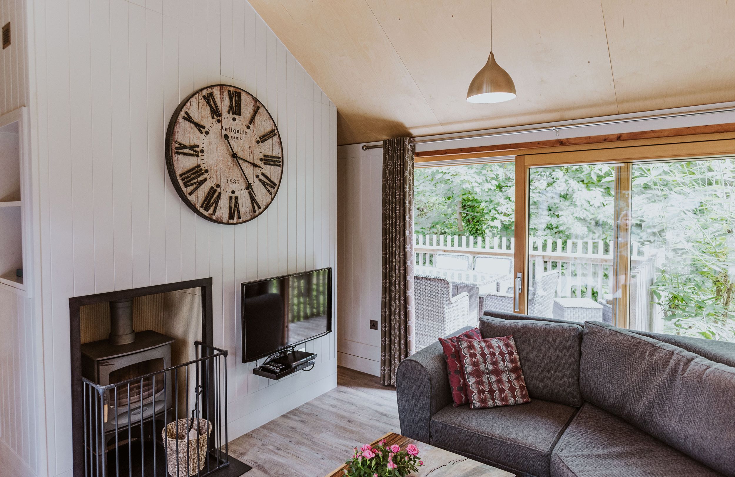 Holiday home The living areas in the property consist of a first-floor open-plan living area with a kitchen with electric oven, hob, fridge, dishwasher, dining seating for six, and a sitting room with TV and woodburning stove. The bedrooms consist of a king-size with en-suite shower room, and two ground-floor twins, one with zip/link, and both with access to a Jack-and-Jill bathroom. Outside, there is a decked balcony with furniture and hot tub, as well as off-road parking. Within 2.8 miles, you will find a shop and a pub, and please note that this is a non-smoking property. WiFi, fuel, power, bed linen and towels are all included in the price. This is a pet-free property. Adventure awaits at Lodge 7. Note: Infants are included in total party number and cots and highchairs will be ten pounds each per stay. Note: Please call to arrange key collection if you will be arriving after 6pm.