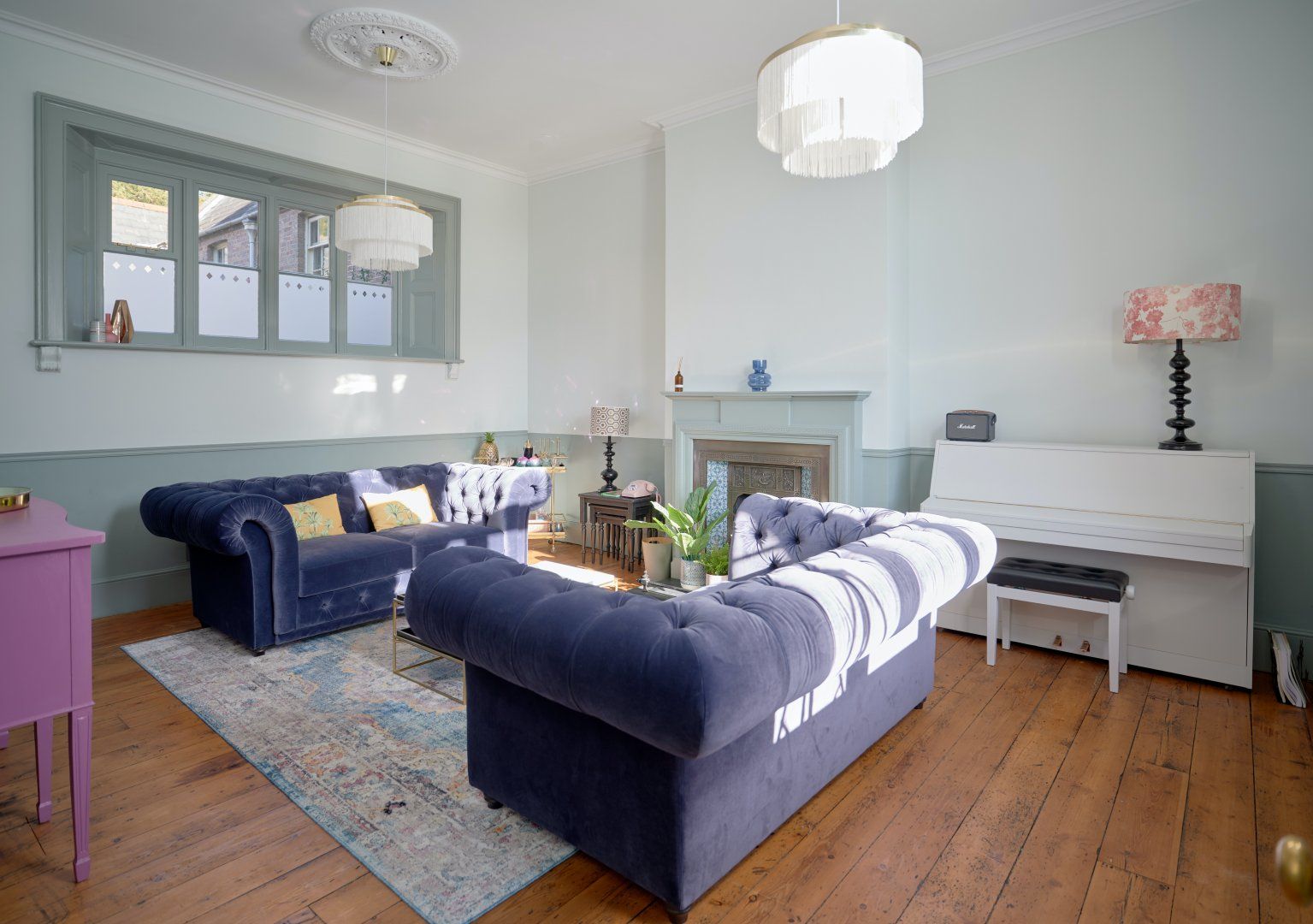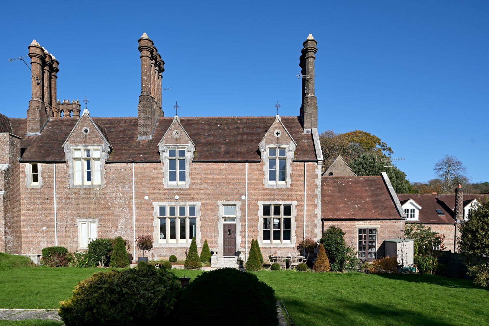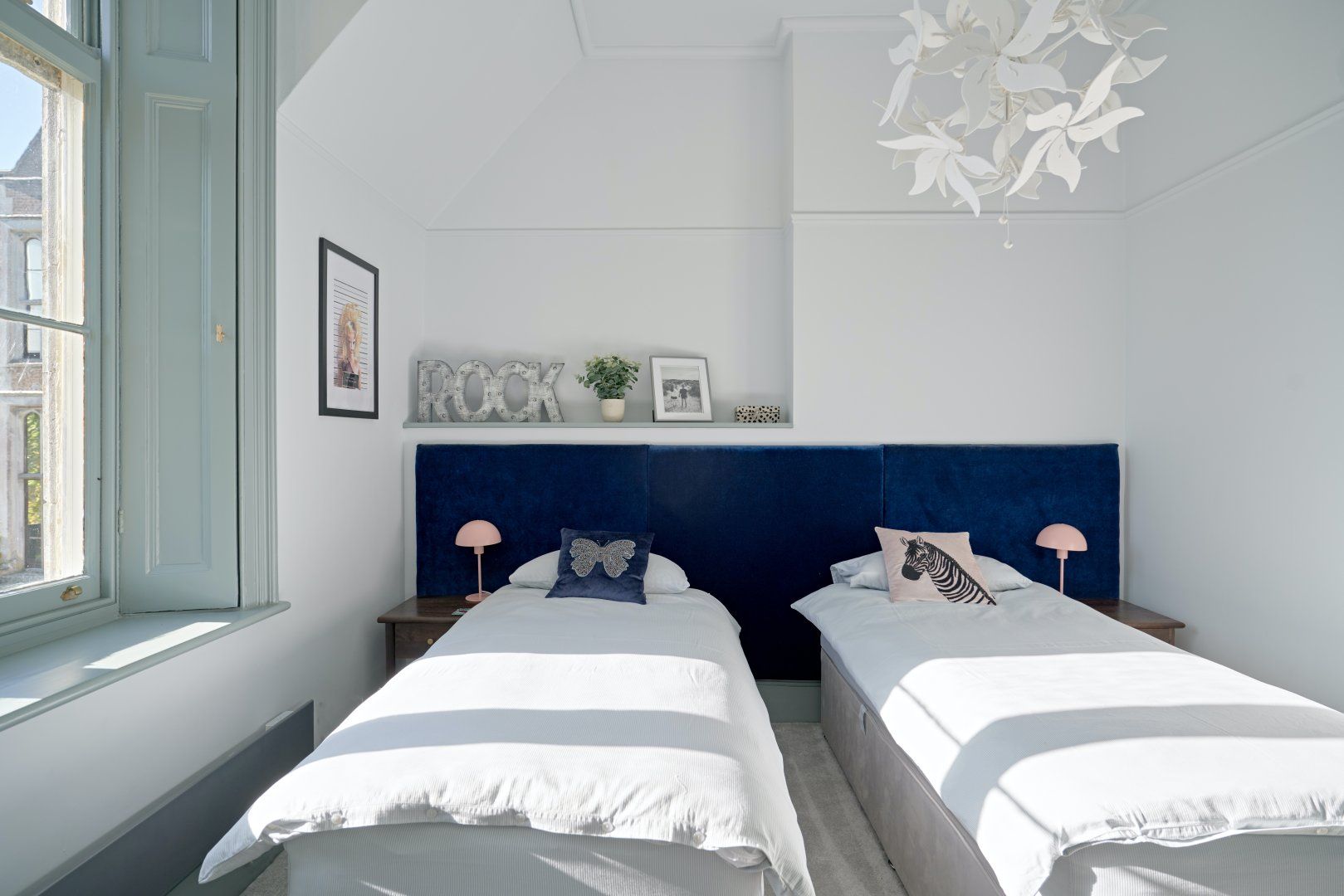This picturesque, Grade II-listed cottage set within the grounds of a 19th-century mansion is full of surprises. Designed by eminent architect Benjamin Ferrey, it features characterfully towering chimney stacks and a charming redbrick facade. So far, so traditional. But step inside and we think you'll do a double-take. The interior is a contemporary design haven, with bold colour choices (we love the lavender dresser in the living room and the playful candy-coloured chairs in the kitchen) and stunning modern artwork (say hello to Michael Caine as you sashay through the kitchen). Large windows let light flood right in, and make every colour pop in a joyful way. There are thoughtful, almost-kitsch touches everywhere you look - the neon disco ball cocktail glasses on the gilded drinks trolly, the flamingo leg table lamp in the kitchen, the silver graffiti slogan on the royal-blue dresser in the master bedroom and the cute zebra-print cushions in the twin room. And it's not often we say the downstairs loo is a real highlight in a home, but check out this one with the retro cassette wallpaper and you'll see what we mean. The home's private terrace is the perfect place to give those disco glasses a whirl (might we suggest a Mai-Tai?), and the enormous, immaculate shared gardens are waiting to be explored. Set in the heart of the Dorset countryside, the dramatic Jurassic Coast is about 30 minutes away, and the magnificent cathedral city of Dorchester about a 20-minute drive.