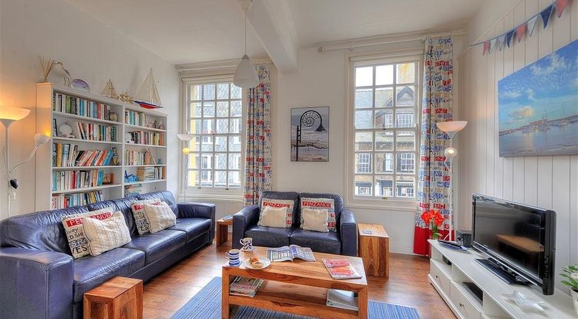 Accomodation Details First-floor apartment. Three bedrooms: 1 x double with en-suite WC and basin, 1 x double, 1 x twin. Bathroom with bath, walk-in shower, basin and WC. Open-plan living area with kitchen, dining area and sitting area
