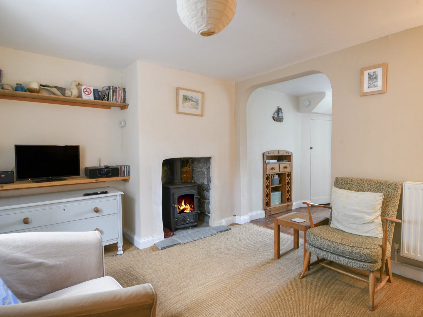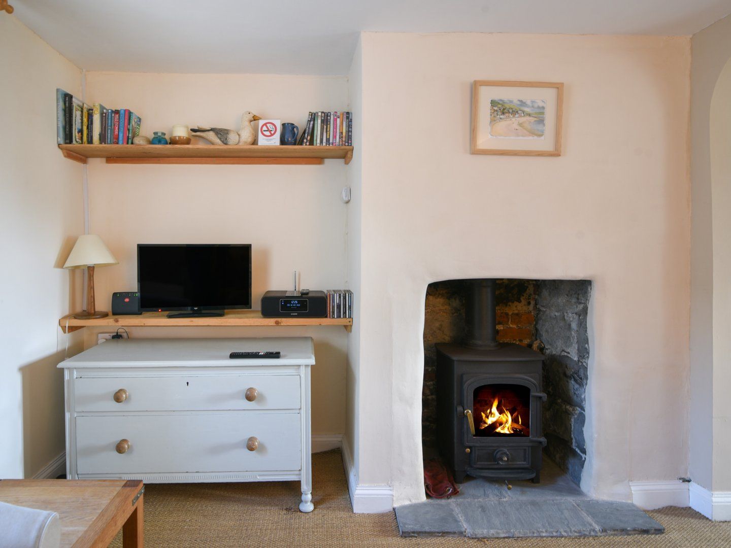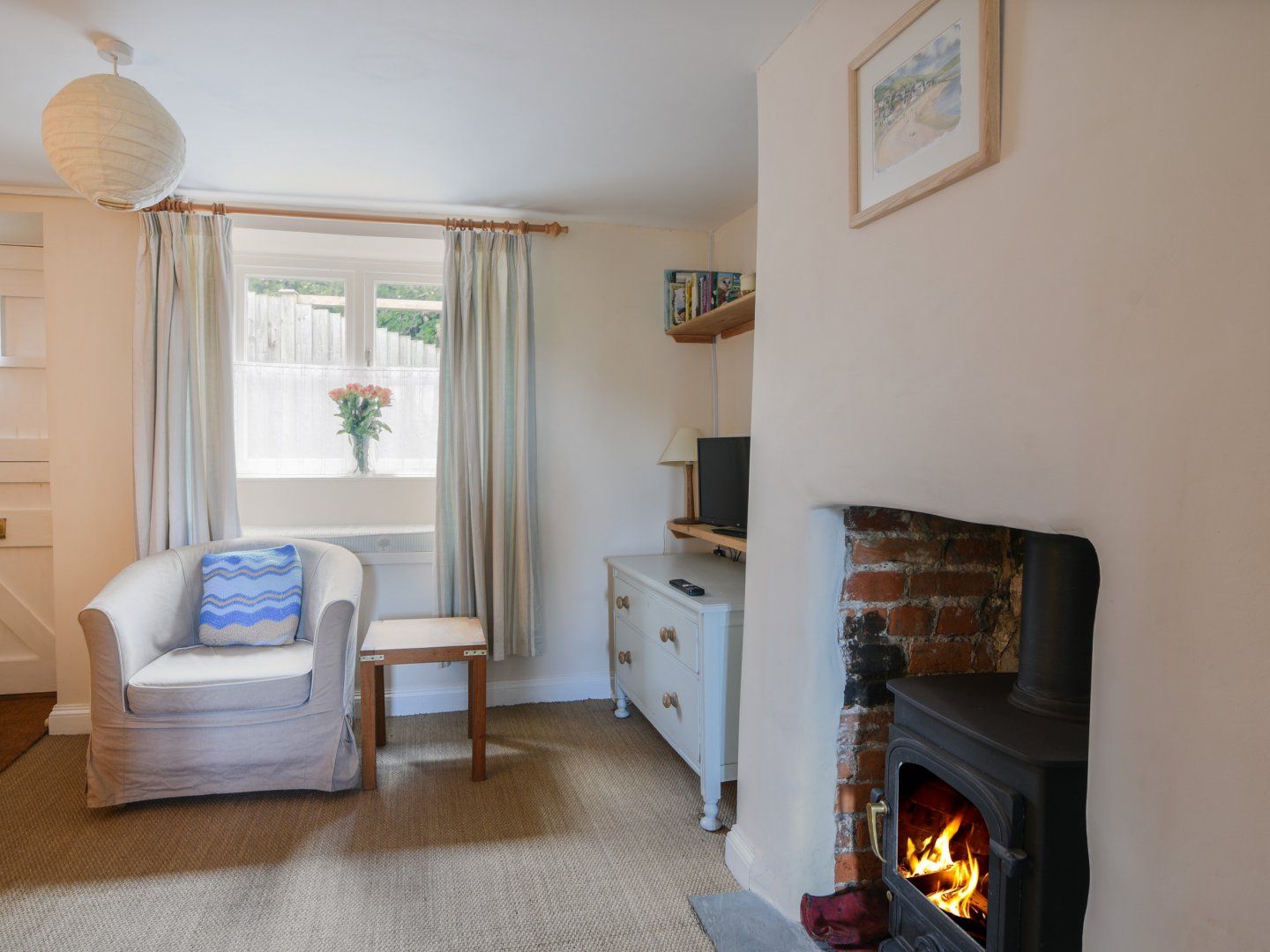 Amenities Gas central heating. Electric oven, gas hob, microwave, fridge with ice box, hairdryer. TV, DVD player, CD player, radio, WiFi, selection of books. Fuel and power inc. in rent. Logs for woodburner not supplied. Bed linen and towels inc. in rent. One parking permit supplied for Woodmead car park on Hill Road (no allocated space). Rear garden with patio, furniture and shrubs. Sorry, no pets and no smoking. Shop 0.2 miles, pub 0.2 miles, beach 0.7 miles Note: The staircase in the property is narrow and twisting and may not be suitable for those with mobility issues. Some low ceilings. Note: Stairgates will not fit the staircase but there is a door at the bottom of the stairs. Note: There isn't a washing machine available. Note: This is a small 200 year old cottage on a steep narrow lane with no vehicular access. The staircase is steep and winding.